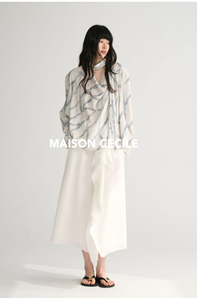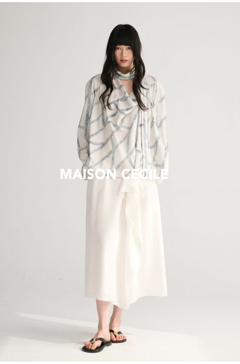MAISON CECILE 设计师印花优雅通勤一片式围裹A字半身裙