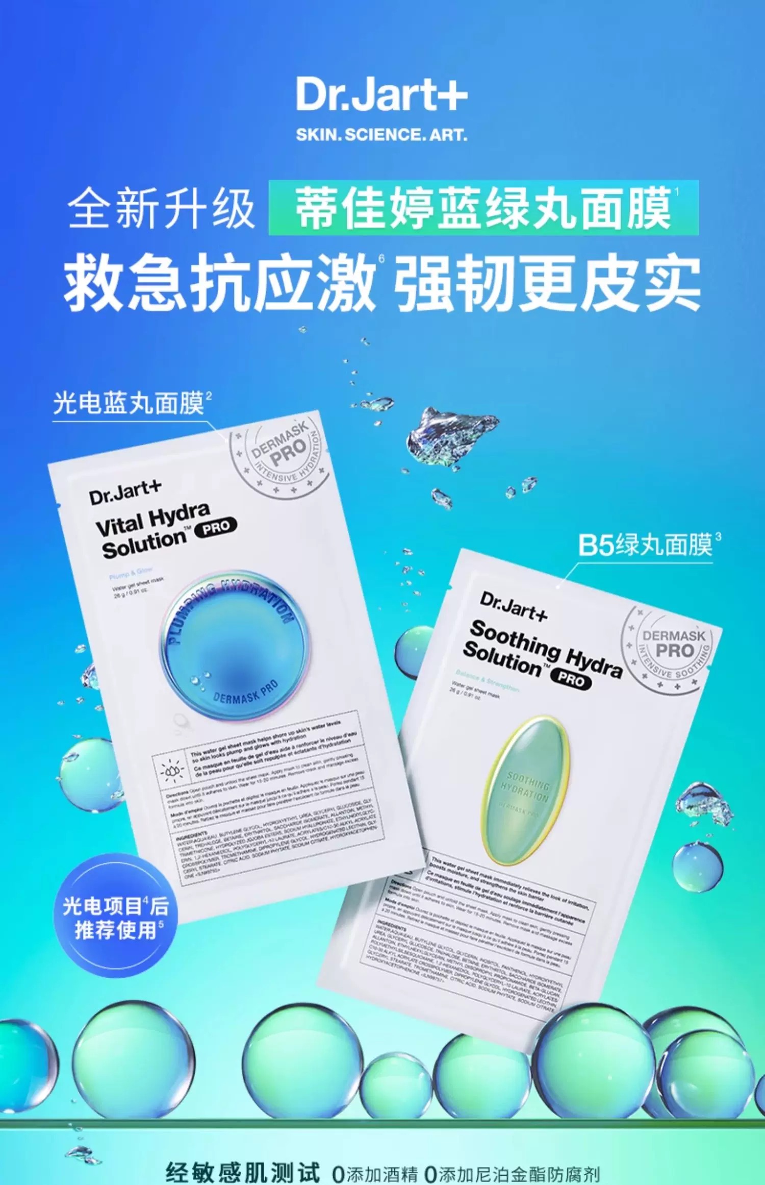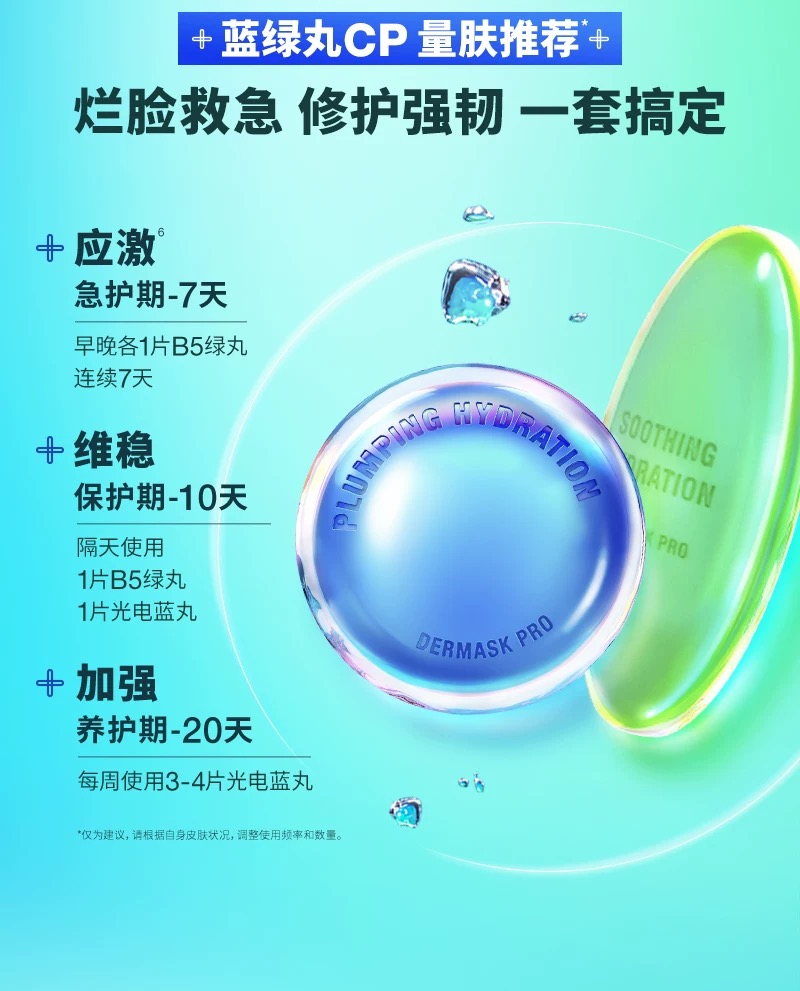 韩国新款Dr.Jart+/蒂佳婷药丸新版PRO面膜 蓝药丸 绿药丸 5片装 补水保湿舒缓修护敏感肌