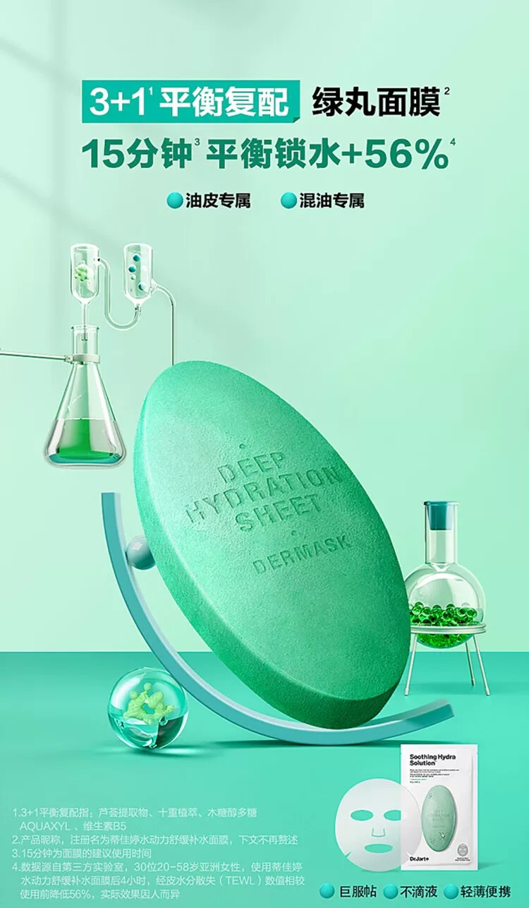 韩国新款Dr.Jart+/蒂佳婷药丸面膜 蓝药丸 绿药丸 5片装 补水保湿舒缓修护敏感肌