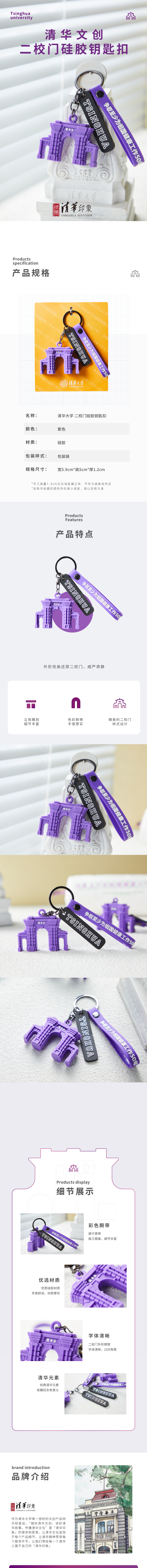 清华文创二校门硅胶钥匙扣