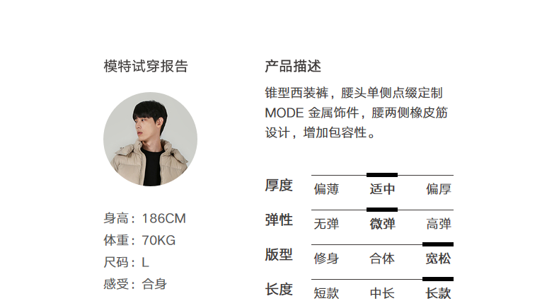 MC |MODE COMMUTER冬季松紧腰带腰头logo西装裤男裤MCD102054J
