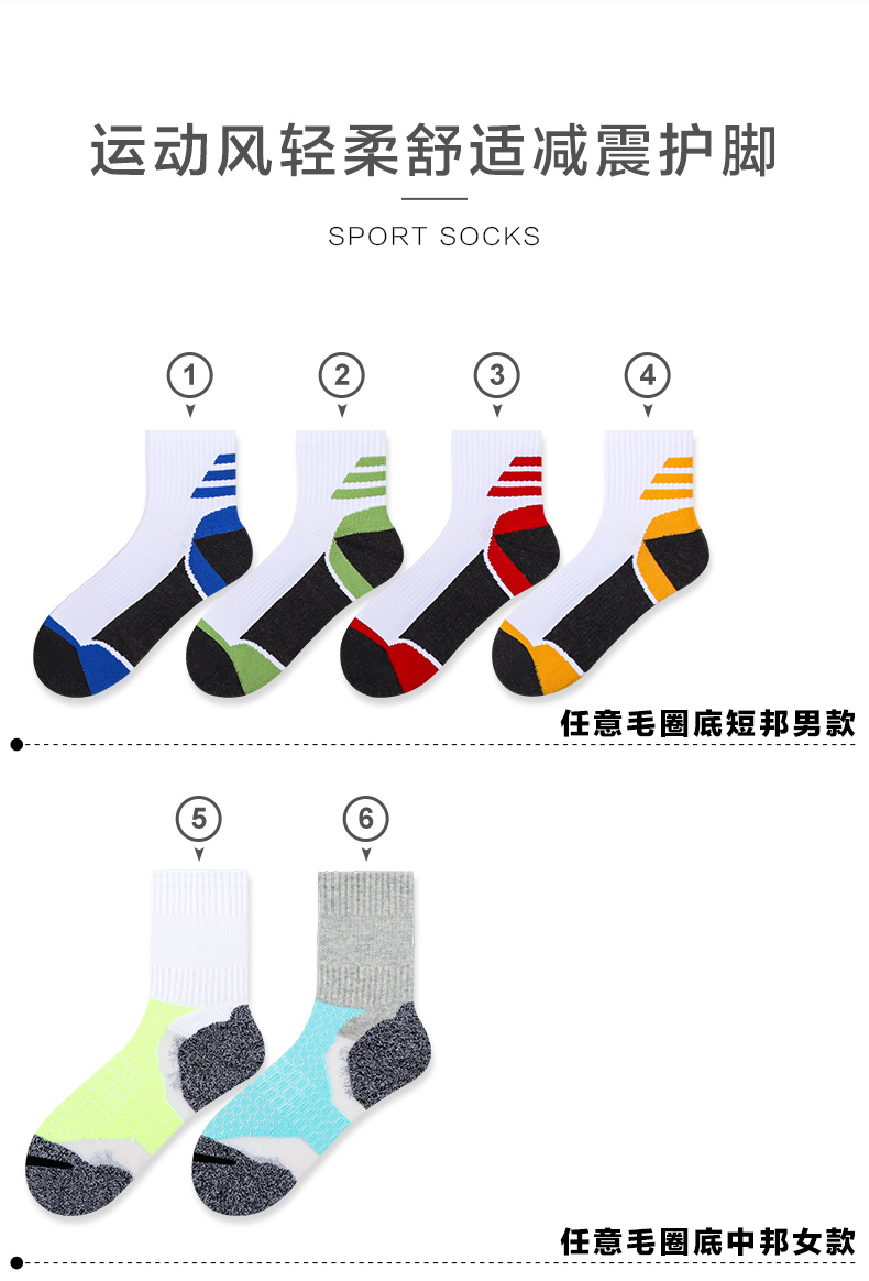 任选3双36.8元 春夏短筒袜跑步运动吸汗防滑减震毛圈篮球男女长袜
