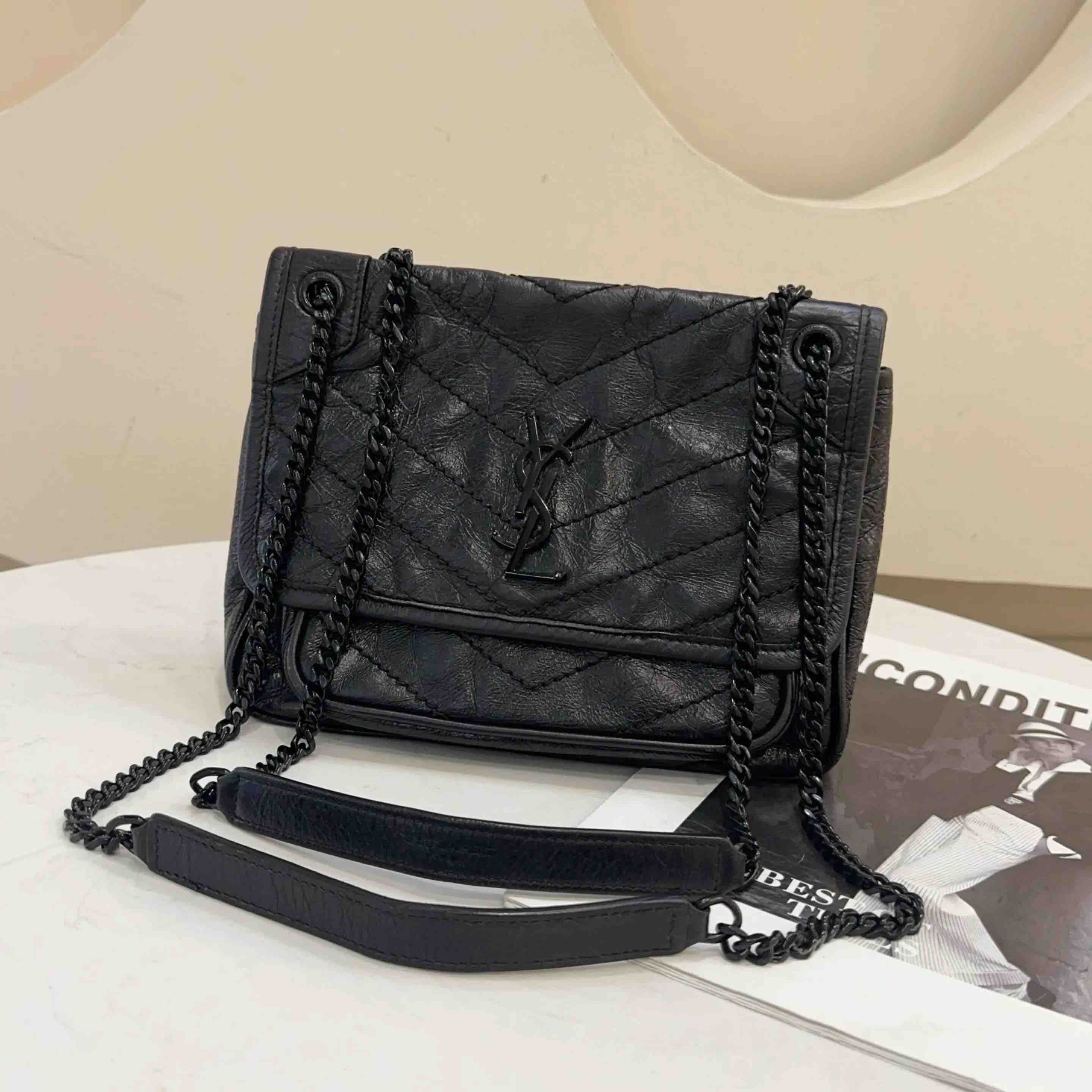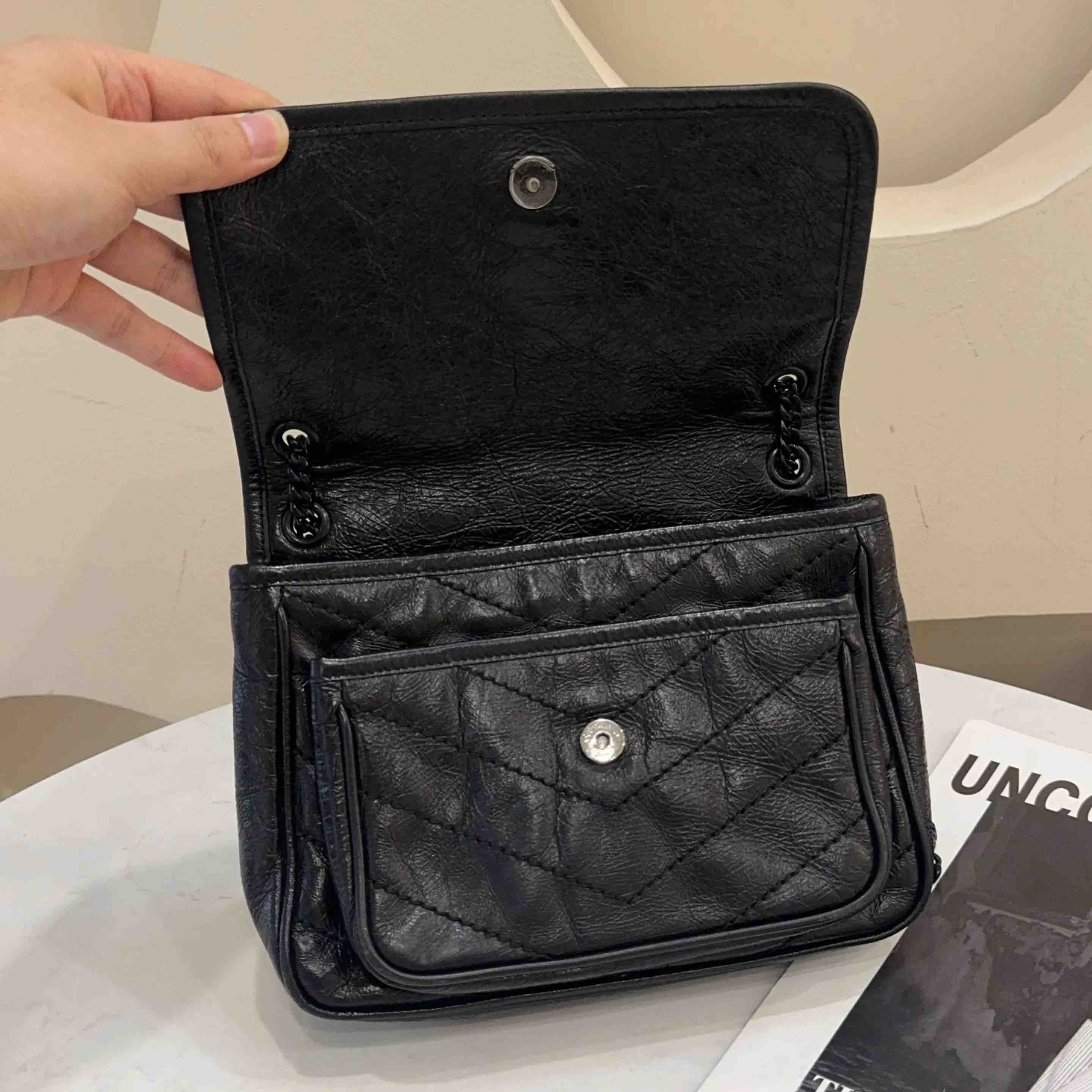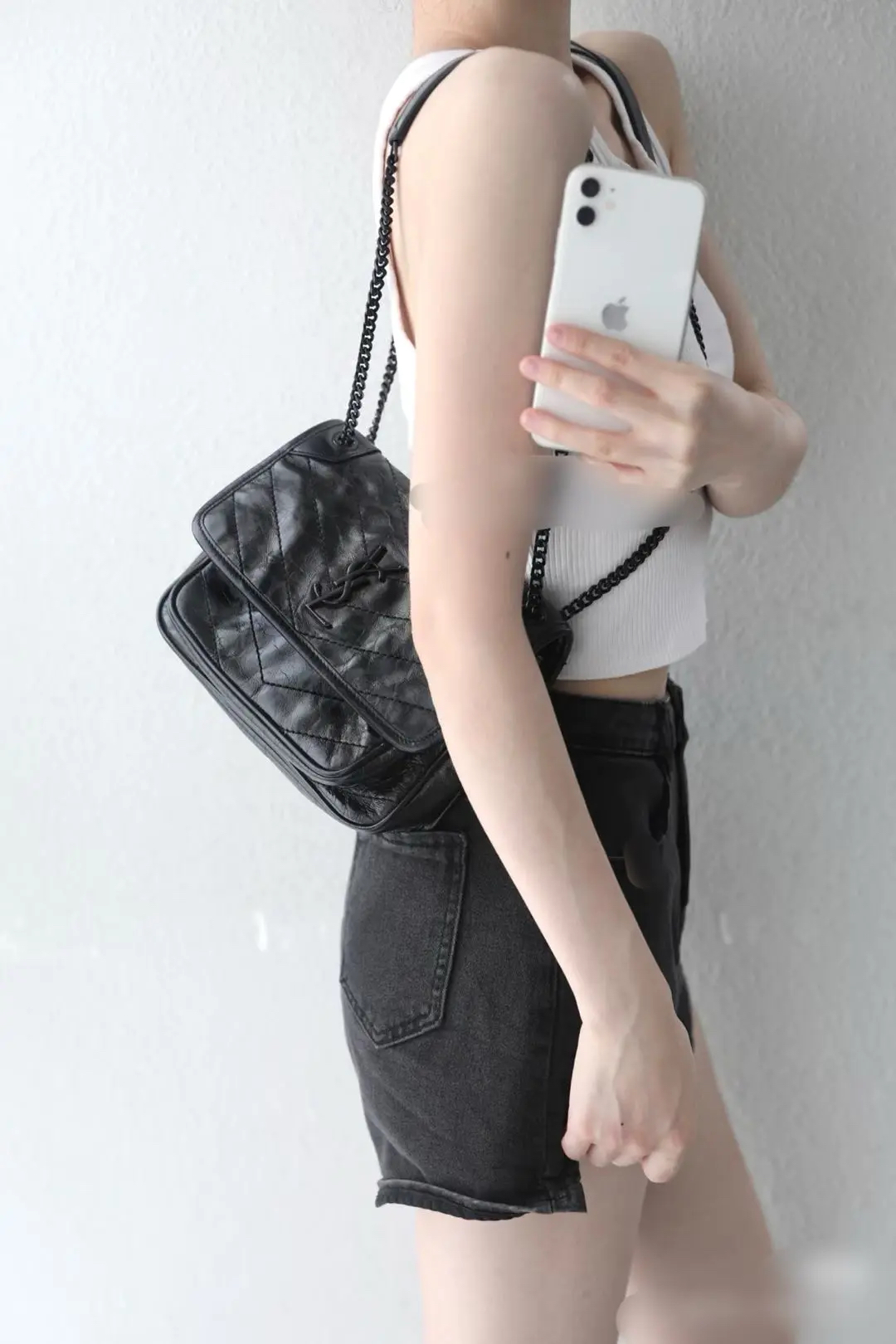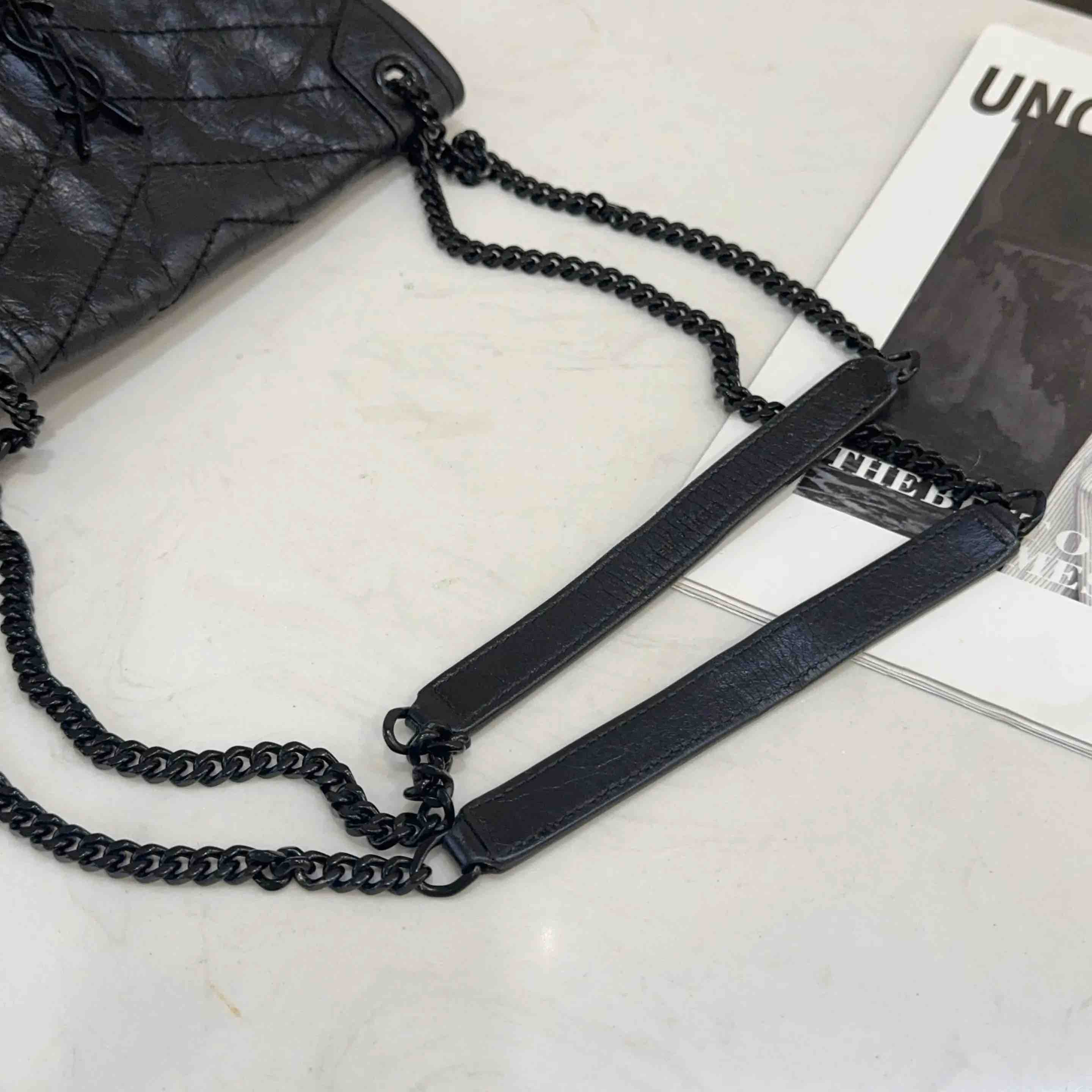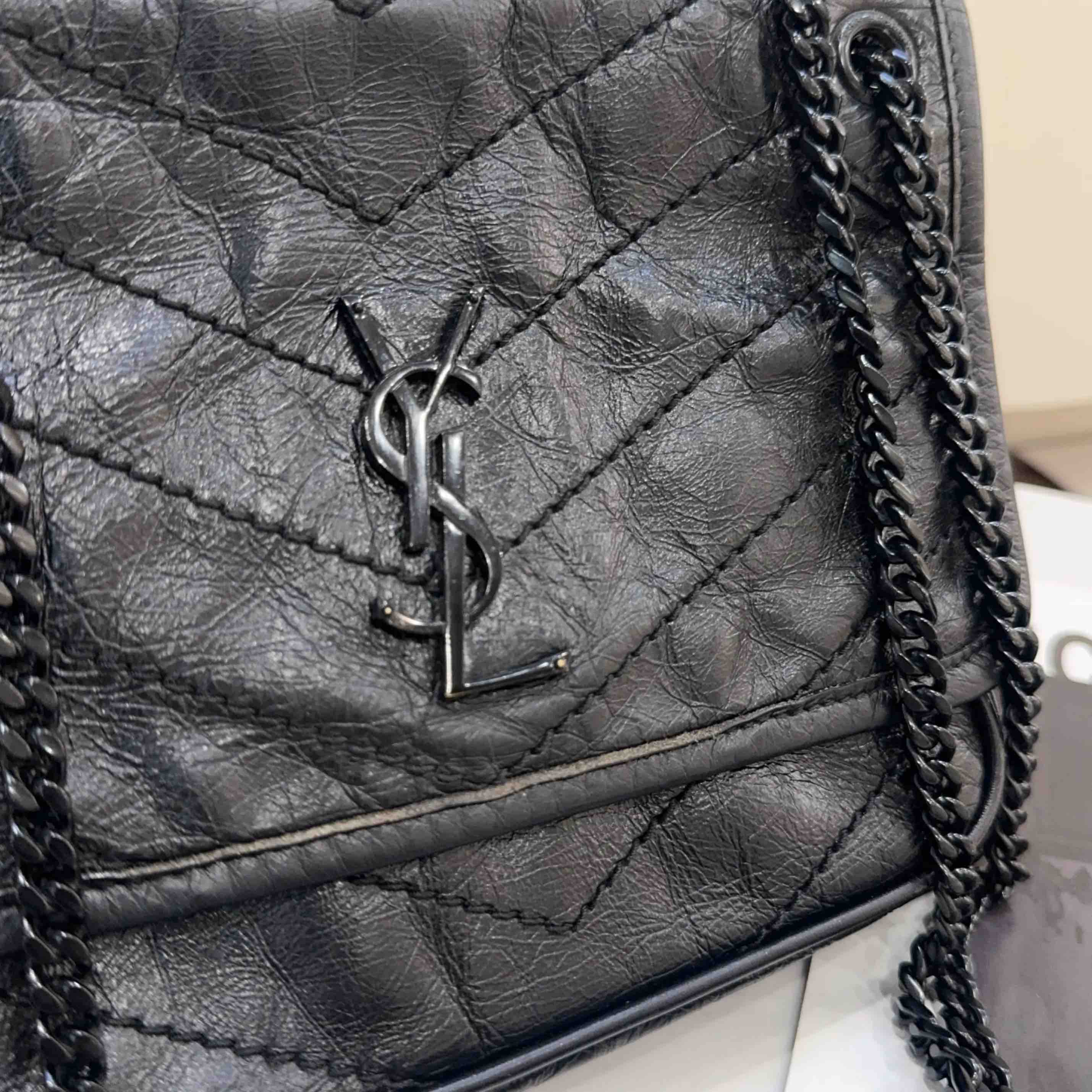 【商品详情】正品二手 YSL Niki baby 黑色 so black 油蜡牛皮 小号 翻盖包👻 95新 22x16。边角和金属正常使用感。油蜡牛皮超绝质感!