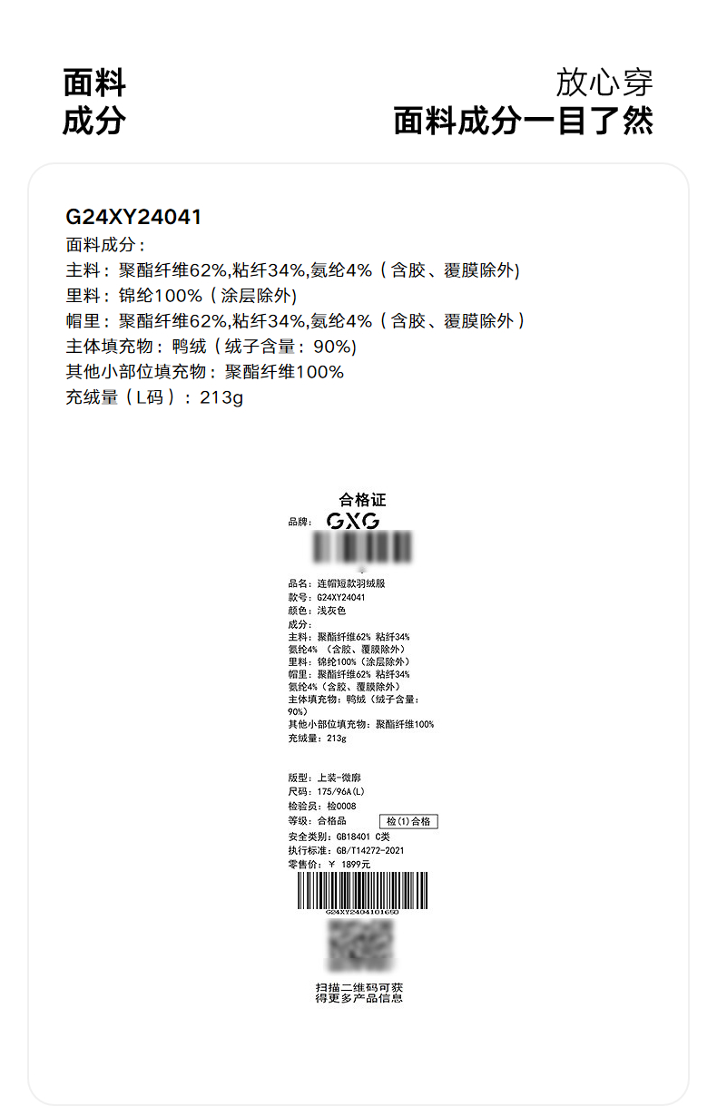GXG男装 简约连帽羽绒服通勤外套24冬季热卖G24XY24041