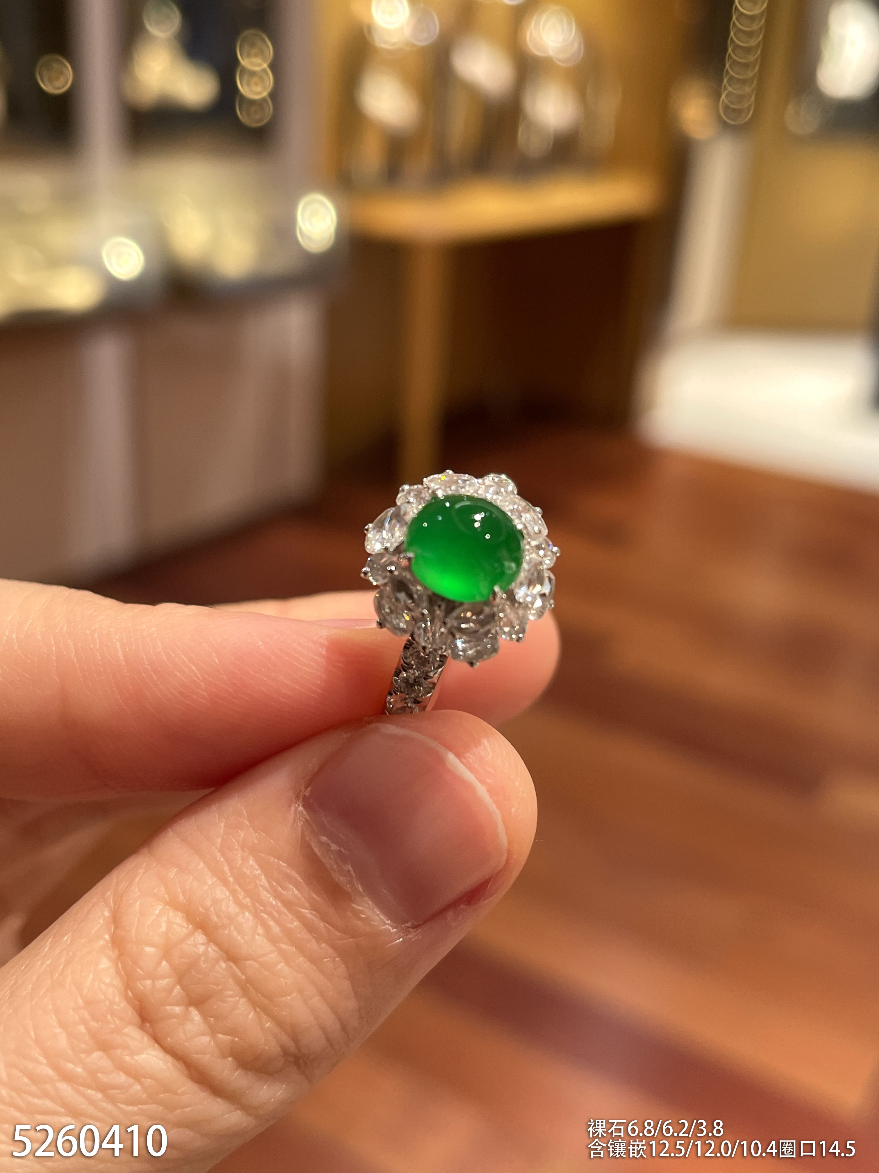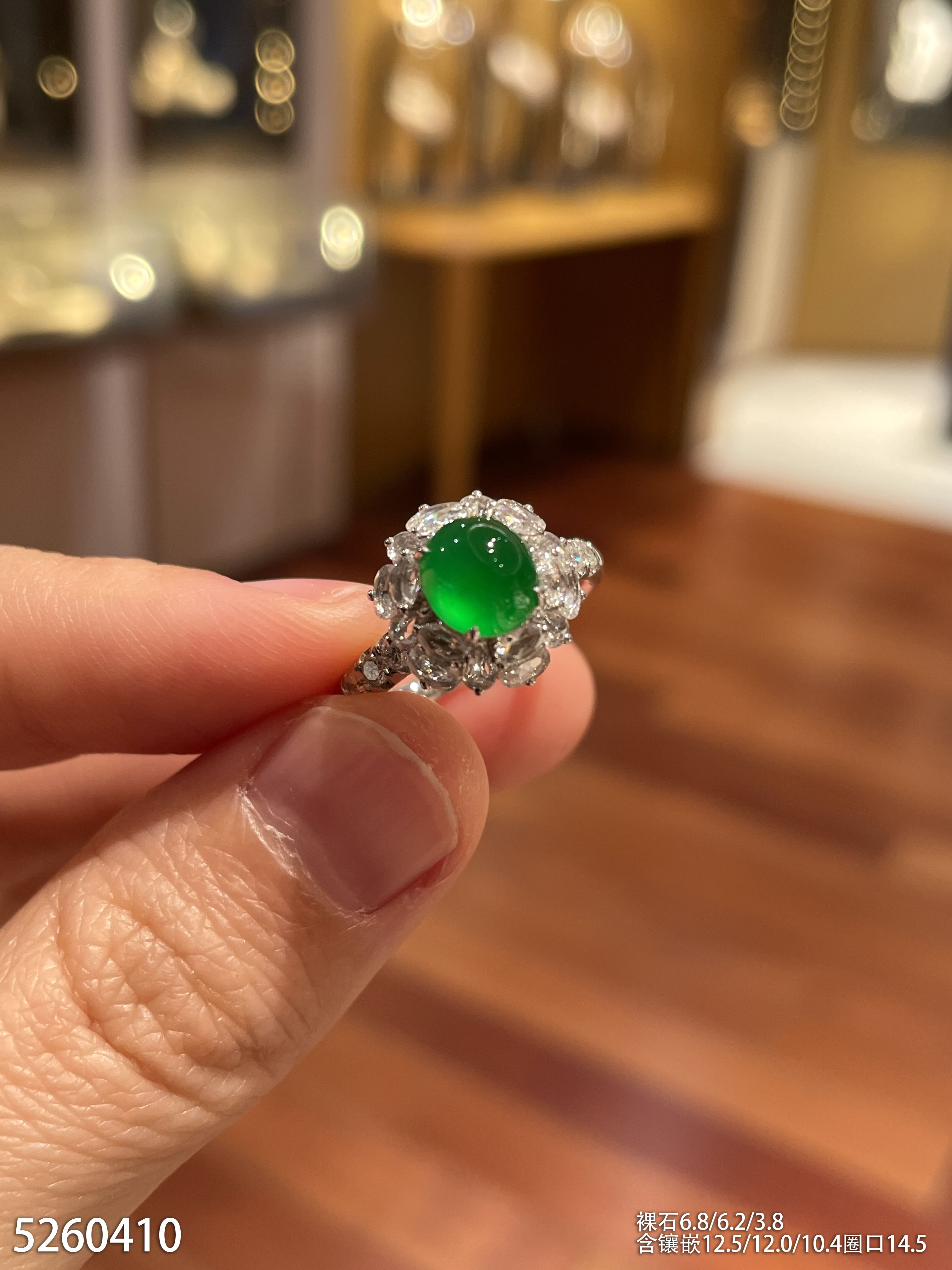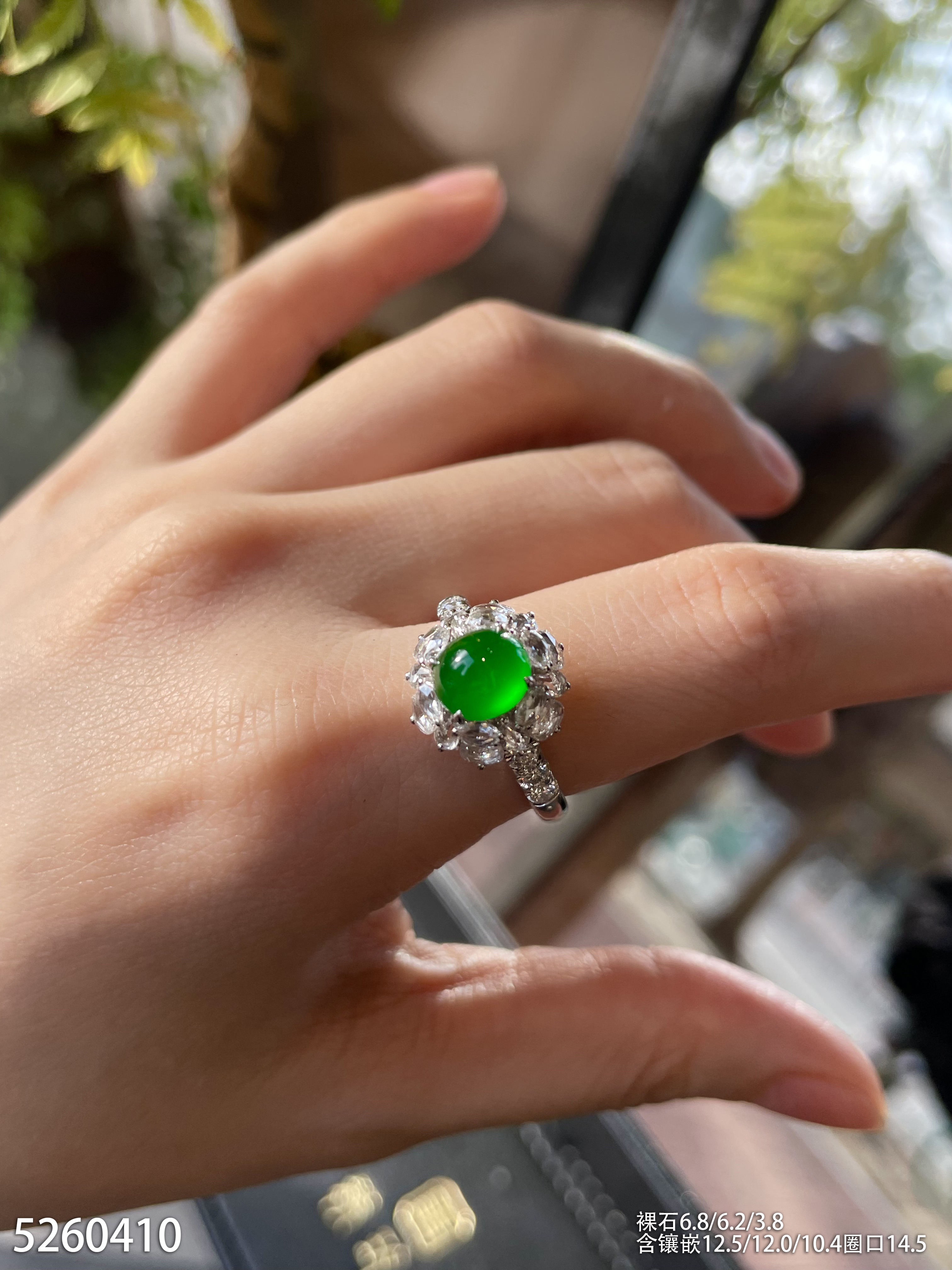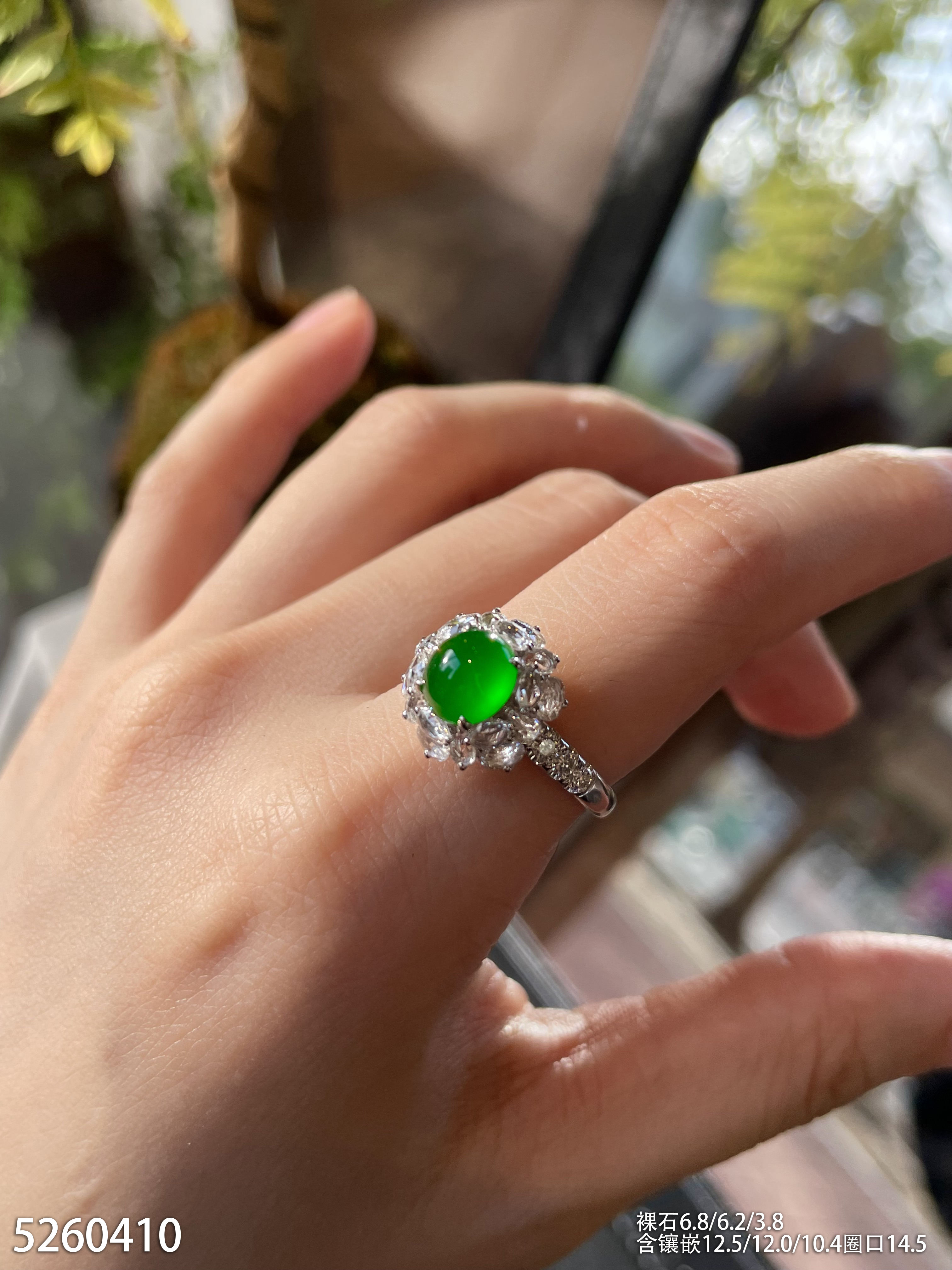 玻璃种艳绿蛋面戒指。45999【5260410】