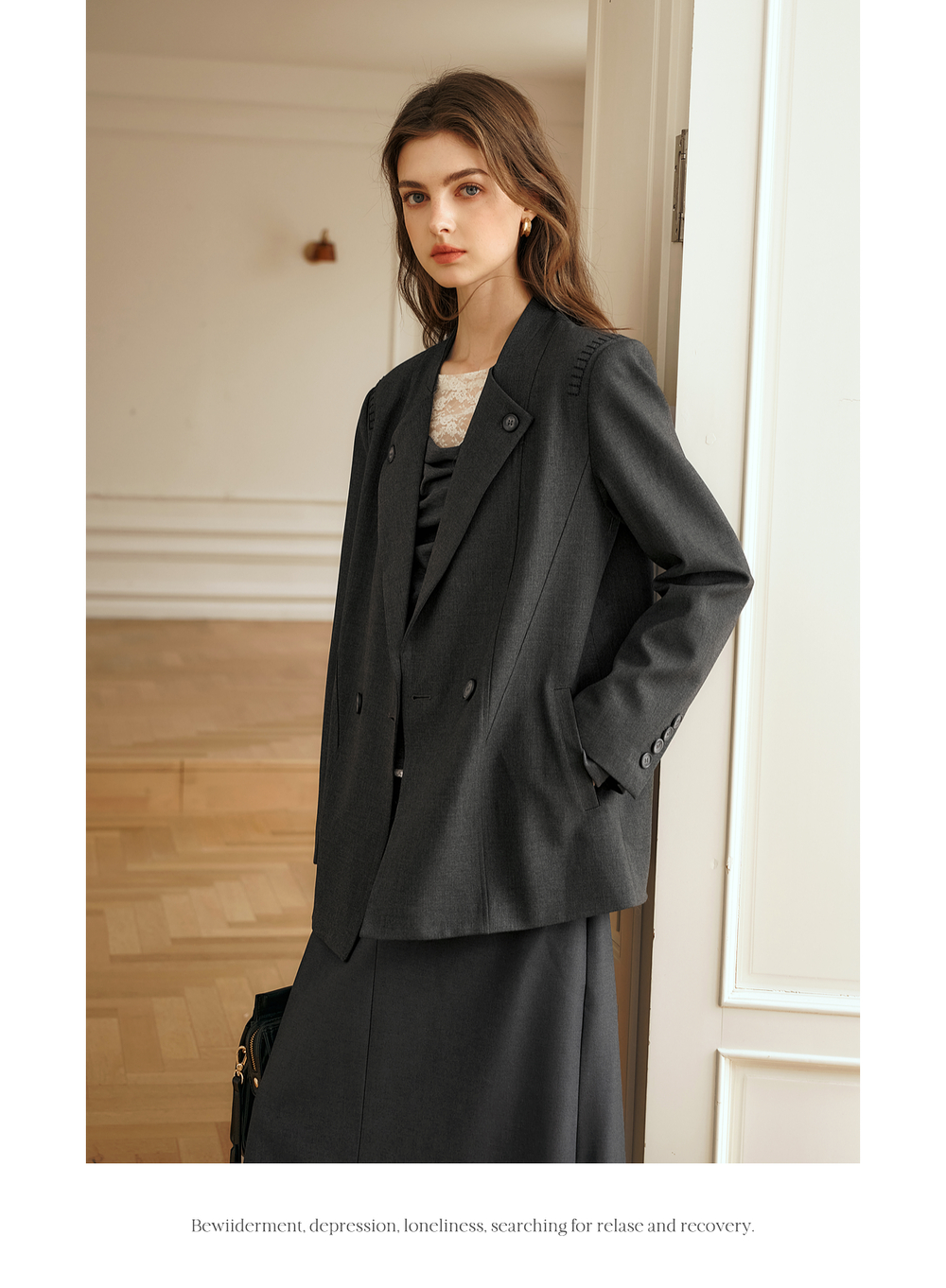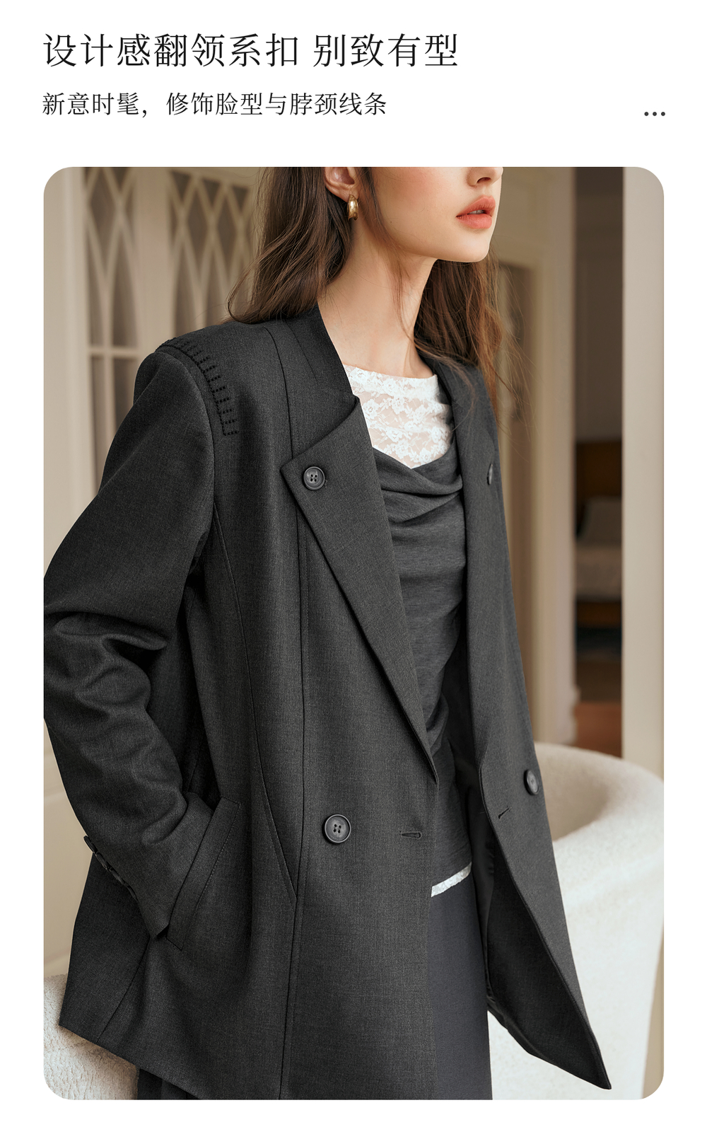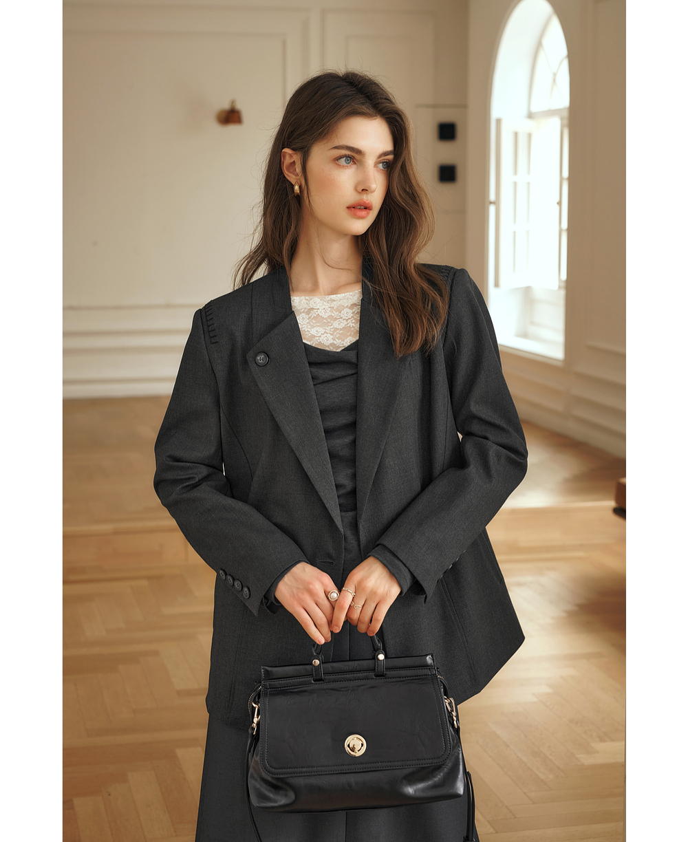 OLrain欧芮儿灰色短外套女冬季2024年新款简约设计感气质通勤西装