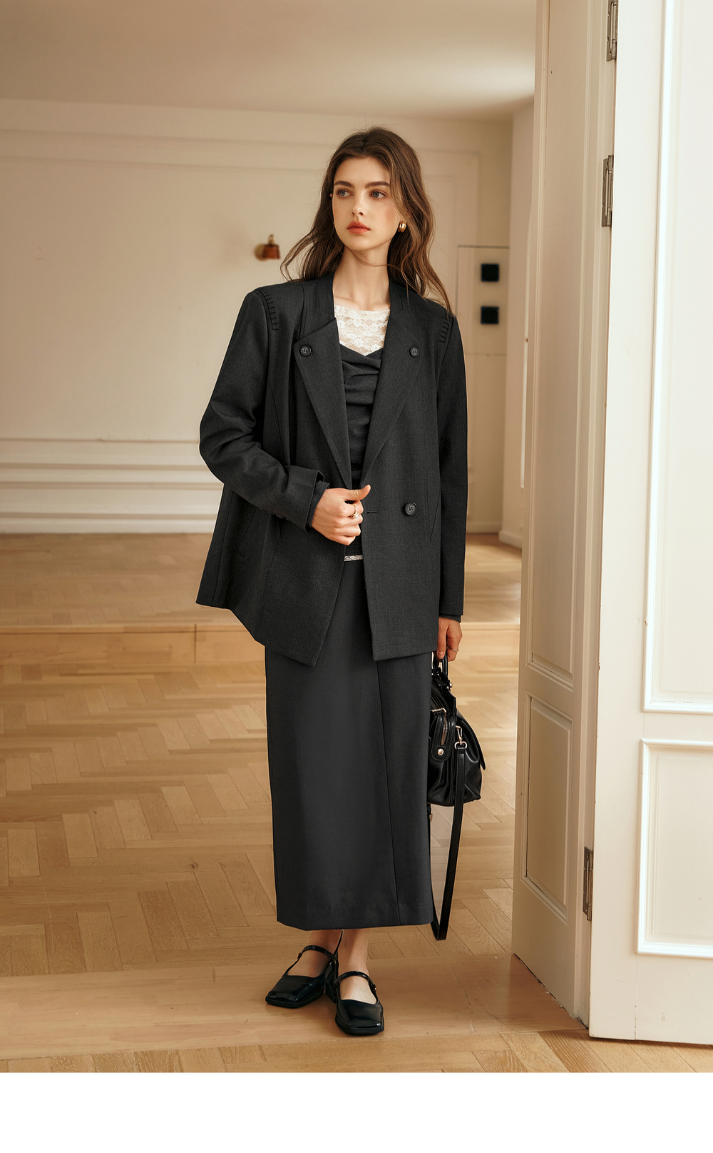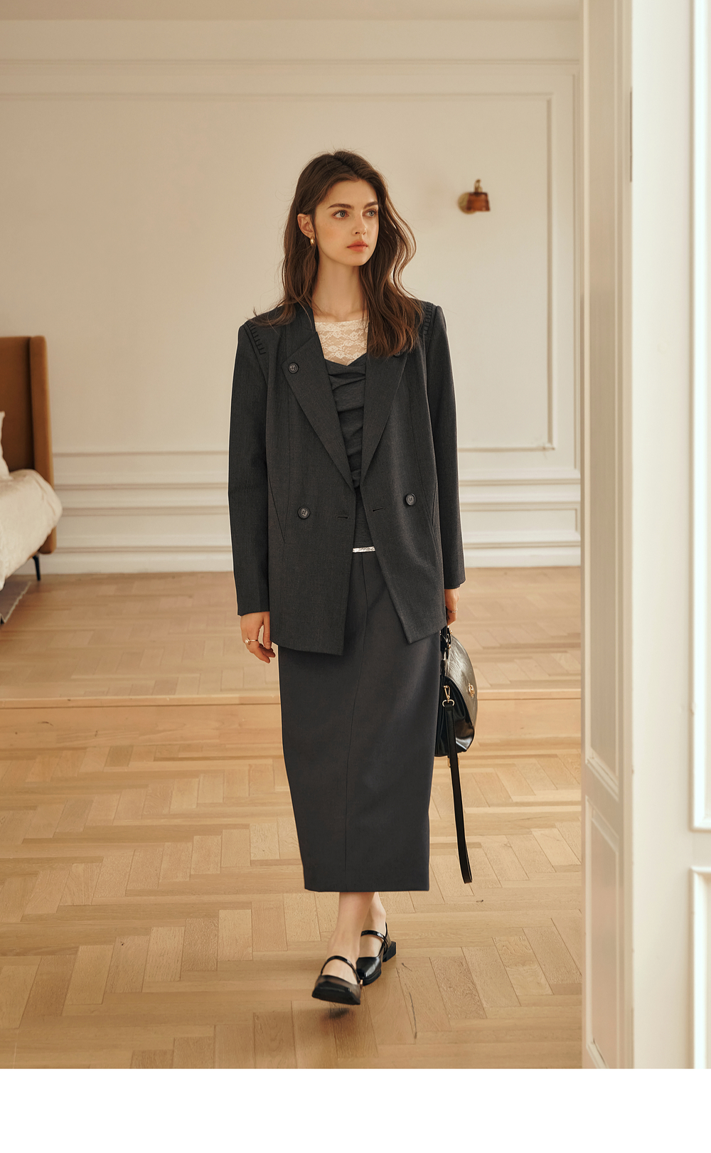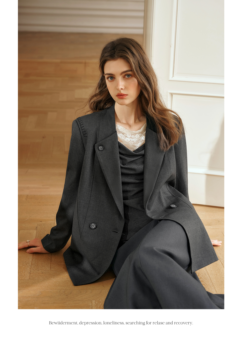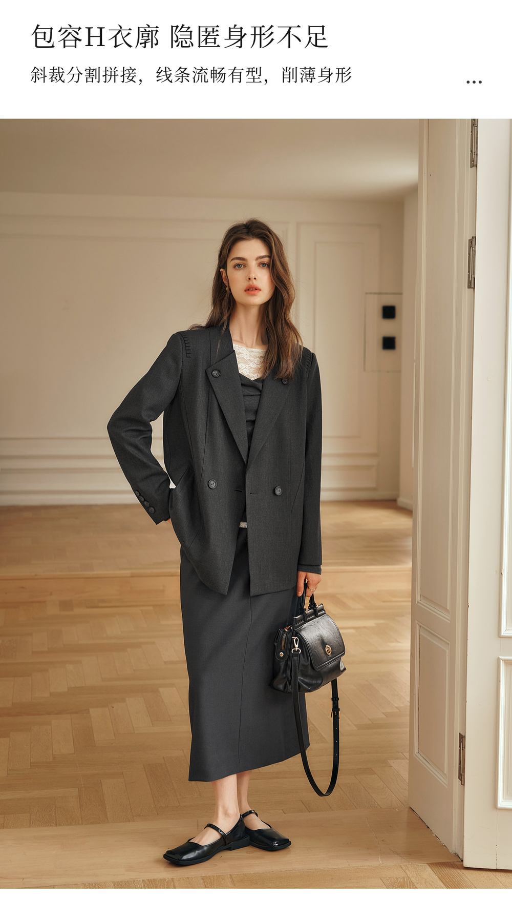 OLrain欧芮儿灰色短外套女冬季2024年新款简约设计感气质通勤西装