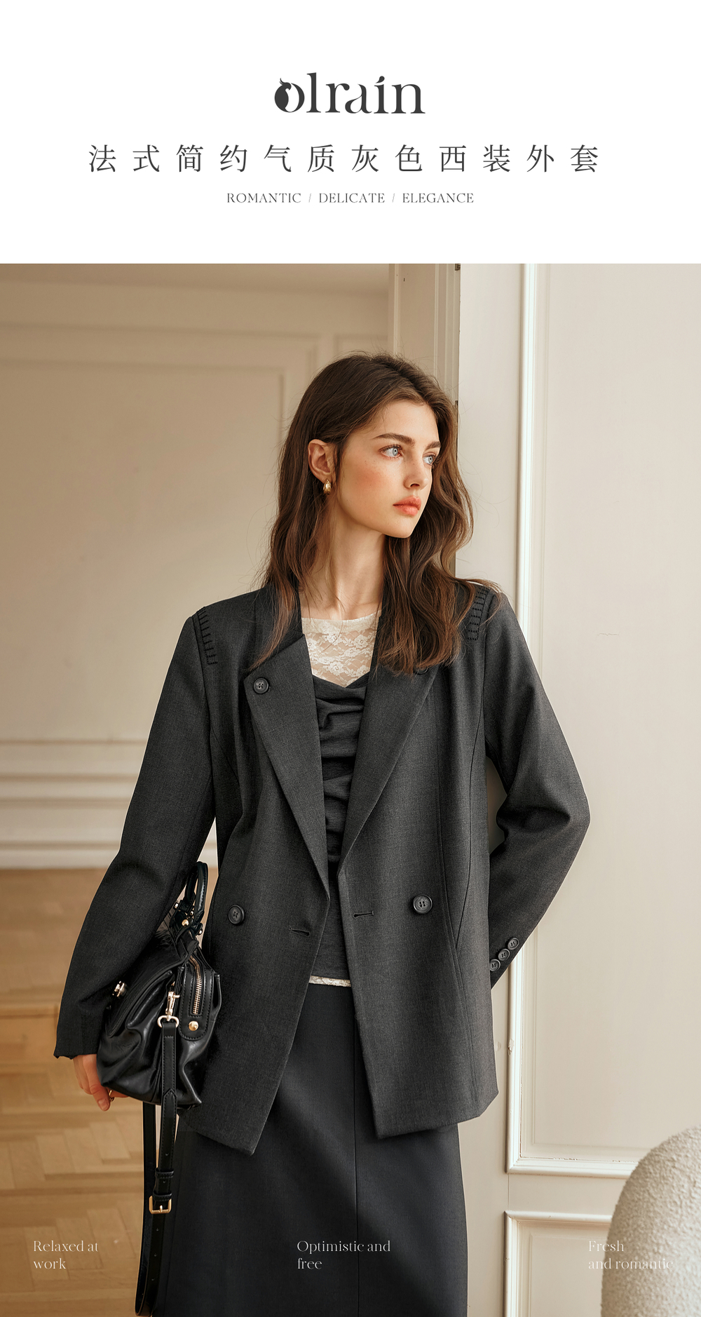 “精致”是欧芮儿olrain品牌文化的核心,欧芮儿认为,精致的女人,不但要外在动人,更要内在迷人,内外兼修,有魅力、有气质、有内涵,自信而不自傲,优雅而不矫揉,自有万种风情而不轻浮,更不故作矜持。