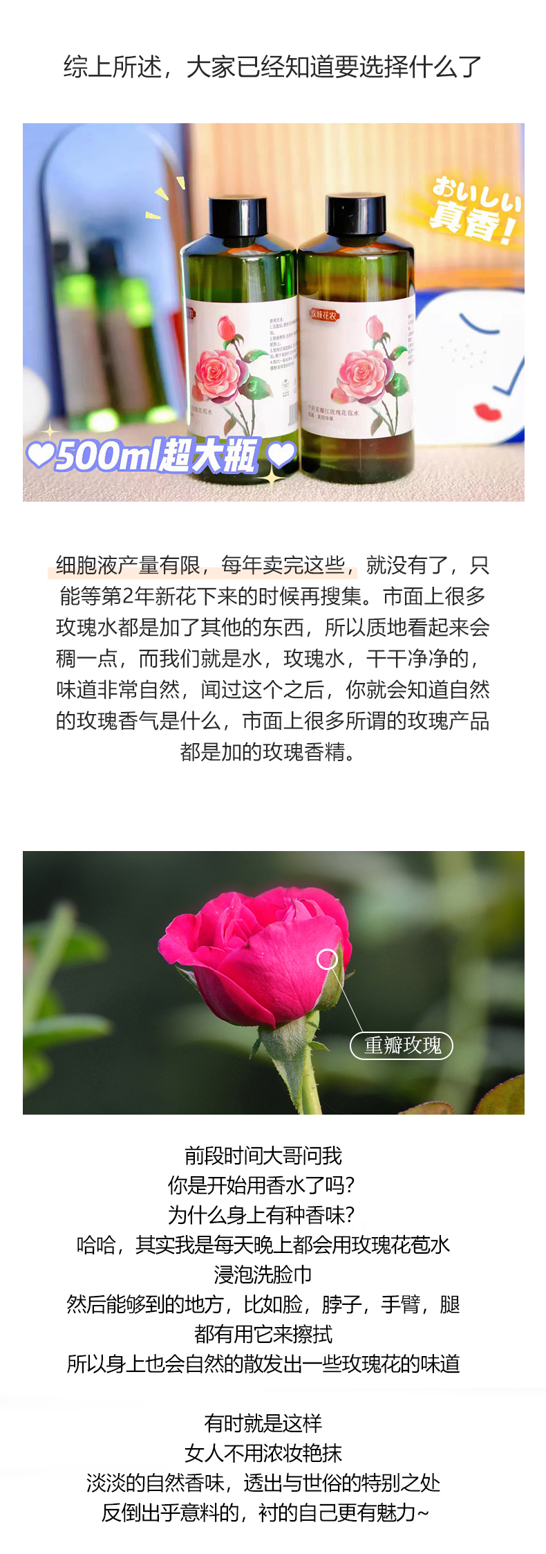 【玫瑰花苞水丨拍2瓶减10元】补水保湿控油抗衰滋润 天然植物精粹 抵御皮肤老化 蕴养气色!可作爽肤水,湿敷,擦拭身体,用处很多! 500ml/瓶!【包装已变更,实际品质及生产工厂没有变化】