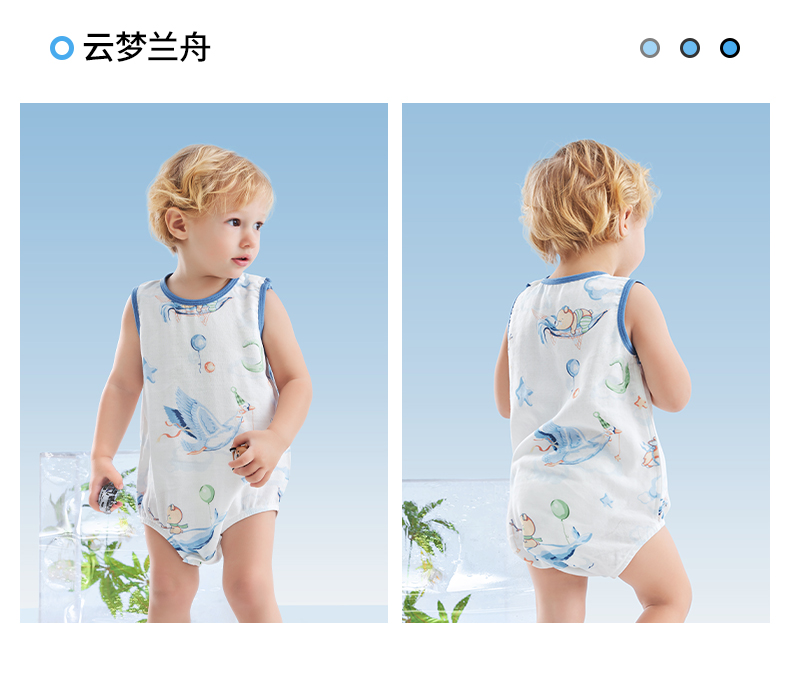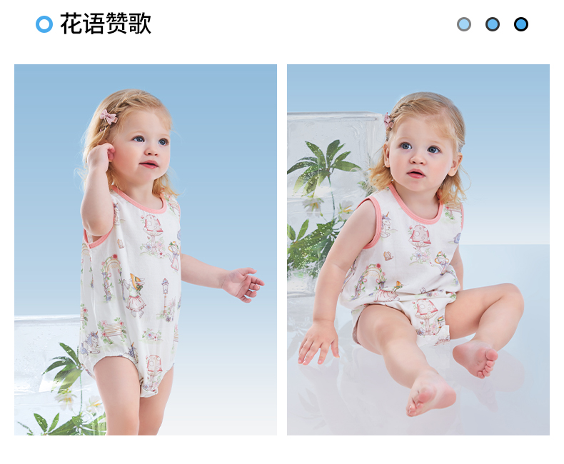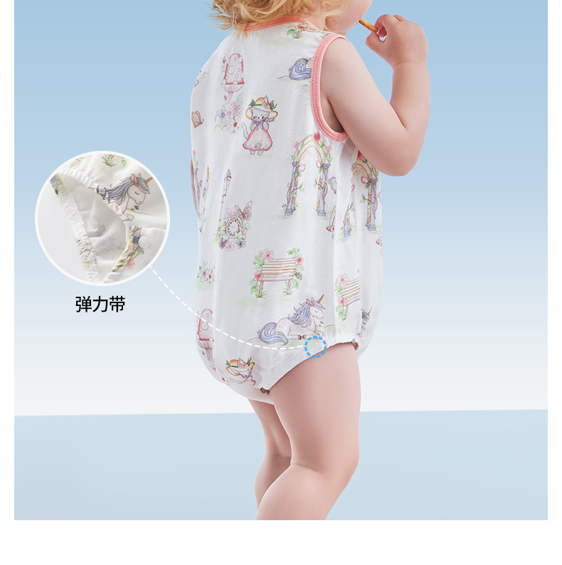 贝肽斯婴儿包屁衣女宝宝夏季无袖新生儿透气竹棉a类背心连体哈衣