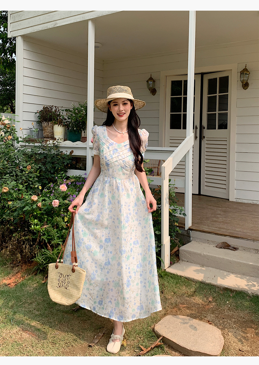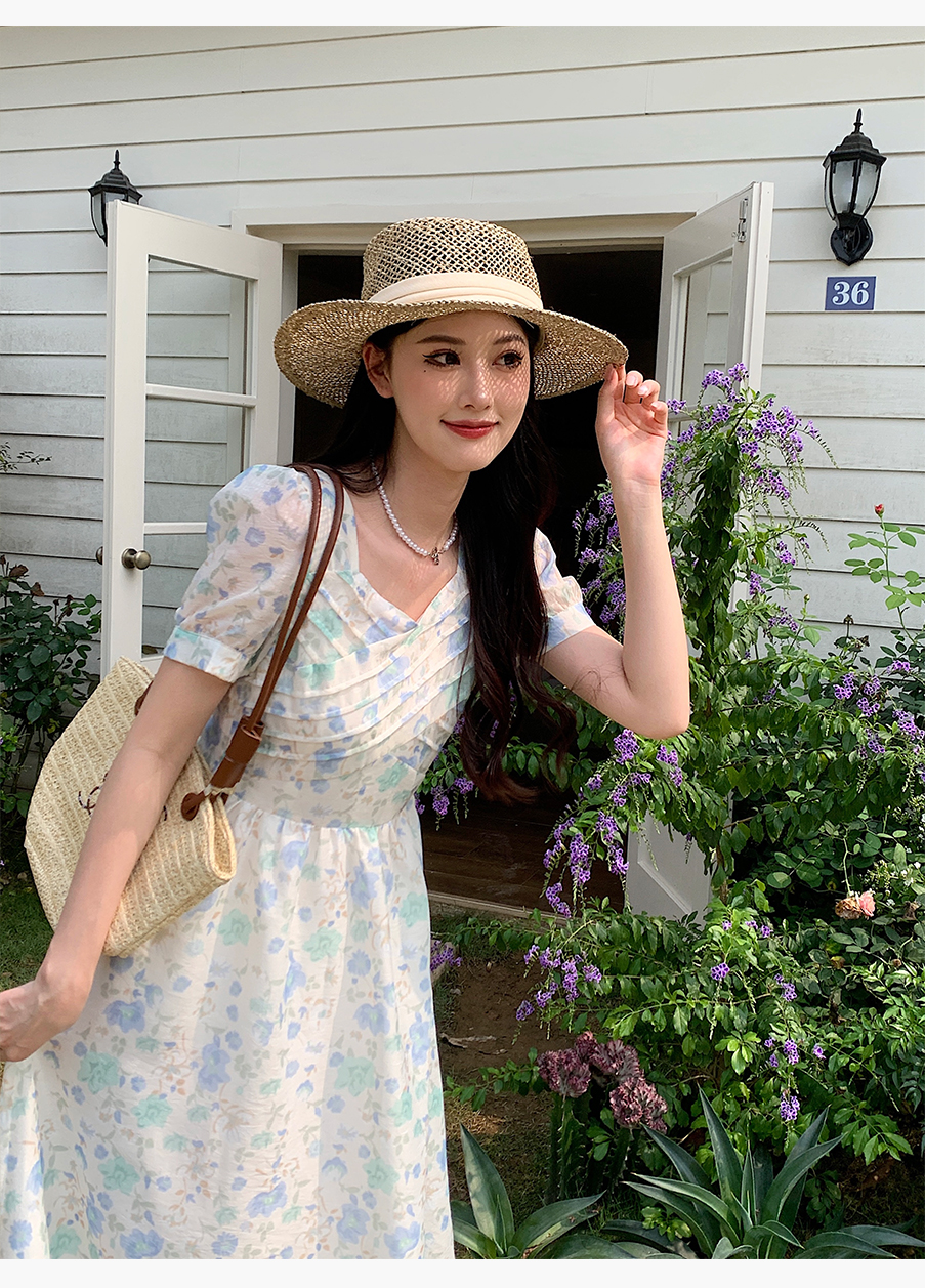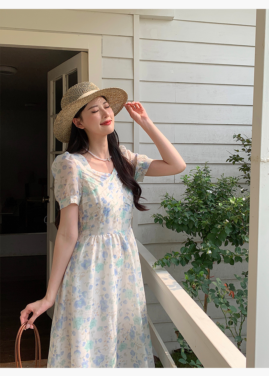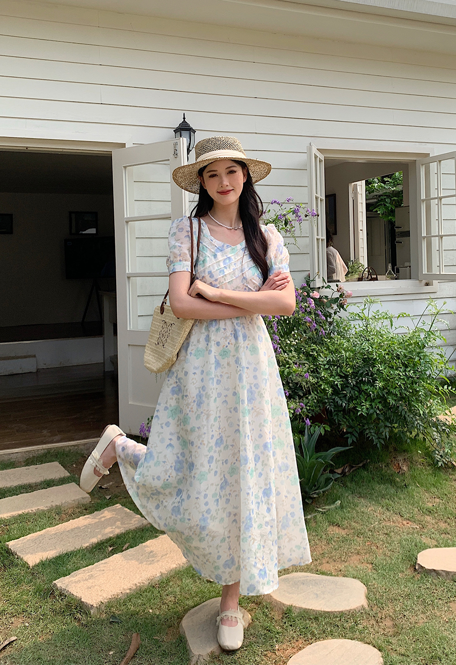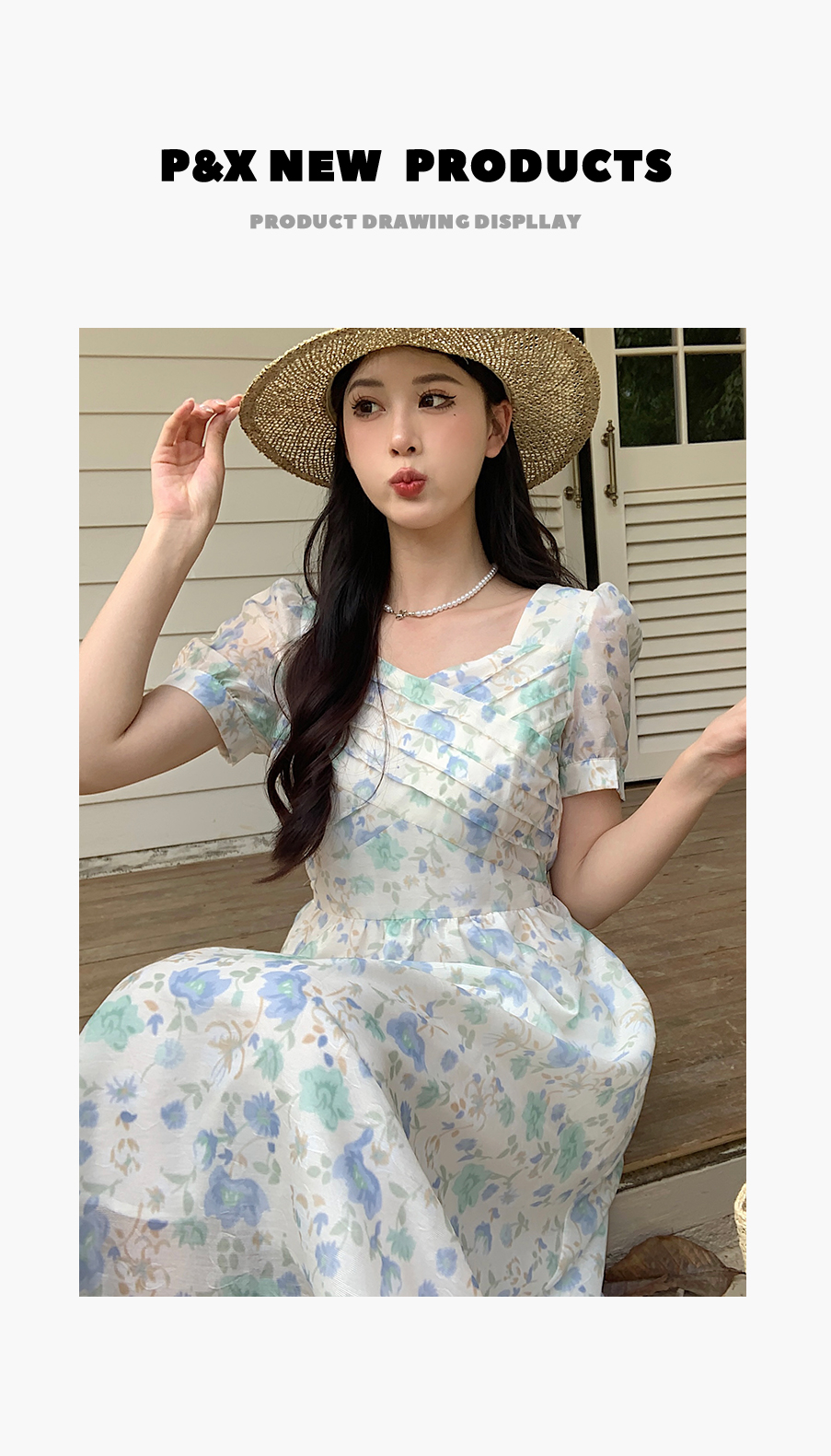 P&X设计师女装夏季 方领法式碎花显瘦连衣长裙 824208263 花色
