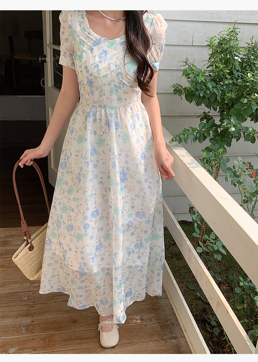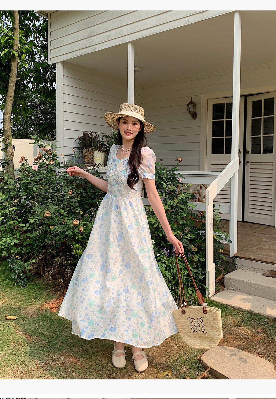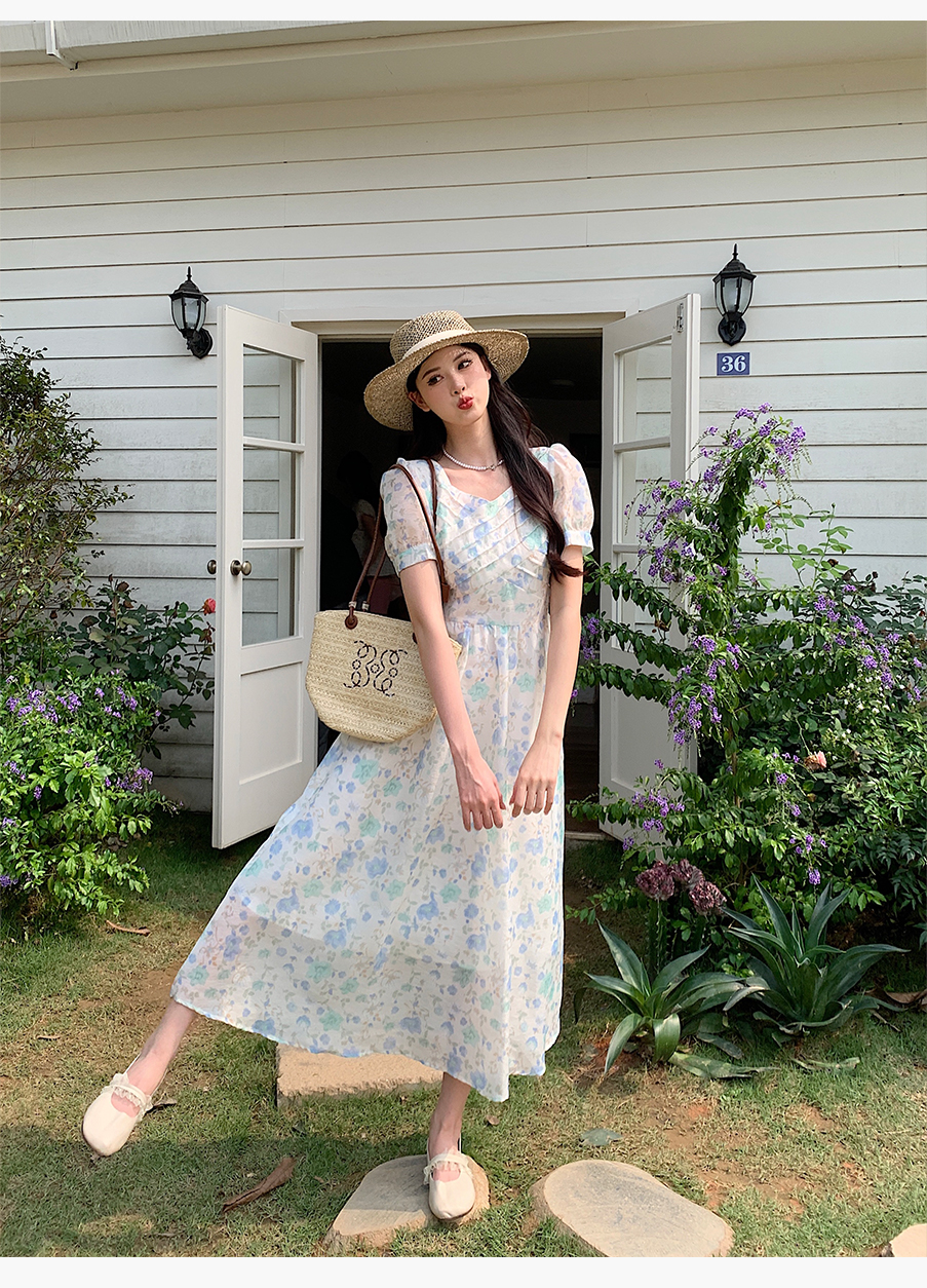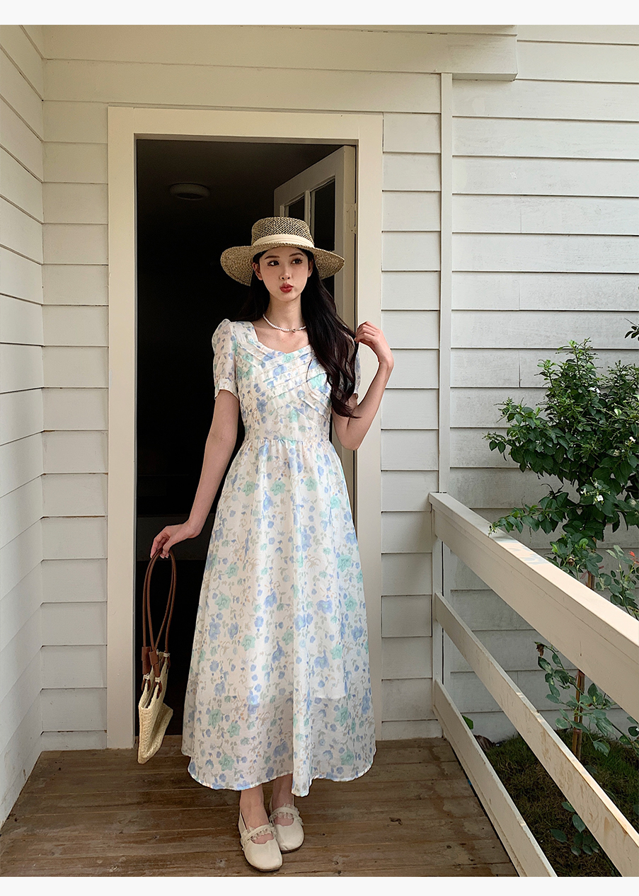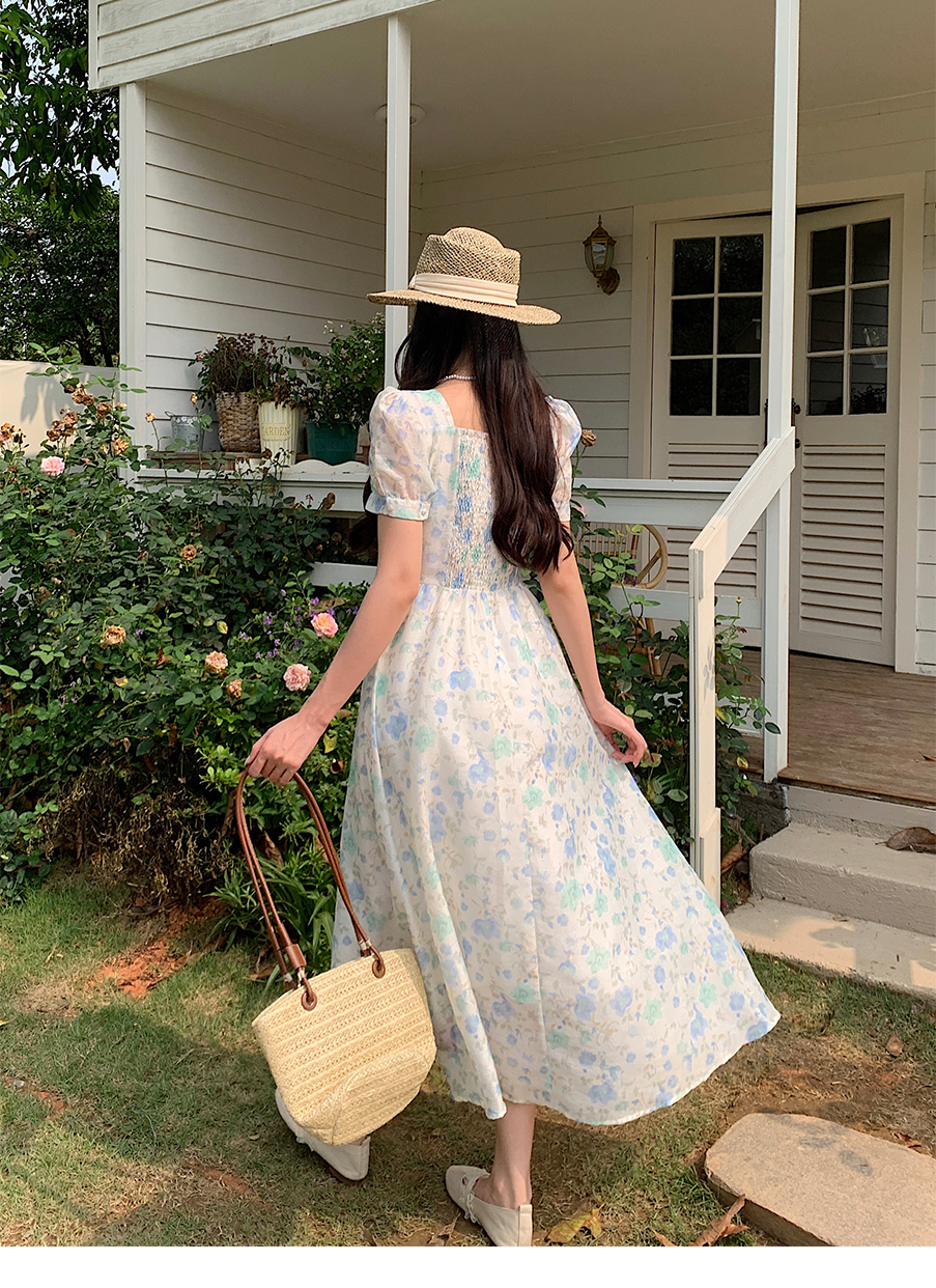 P&X设计师女装夏季 方领法式碎花显瘦连衣长裙 824208263 花色