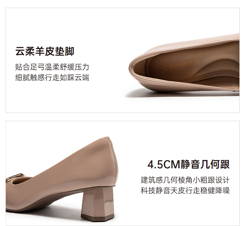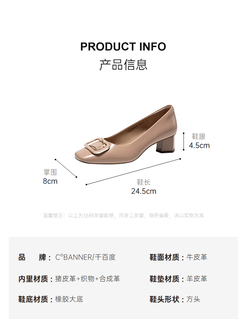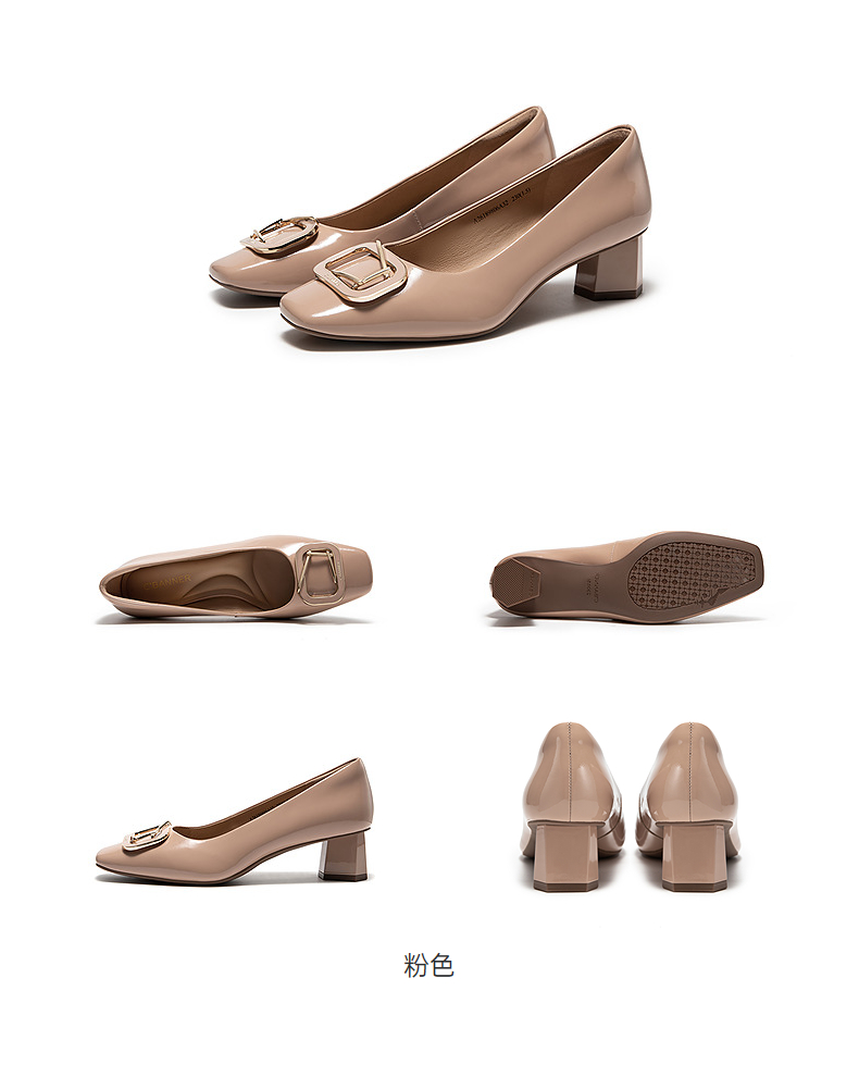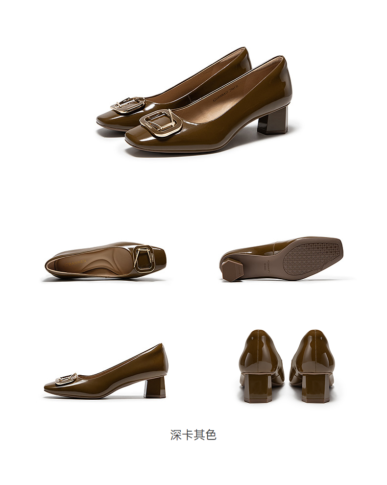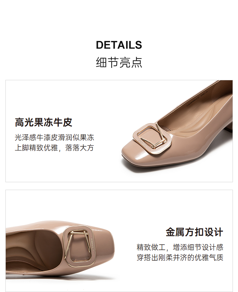 【静音系列】千百度扣饰粗高跟鞋女2026春季新款漆皮通勤浅口单鞋A26189806