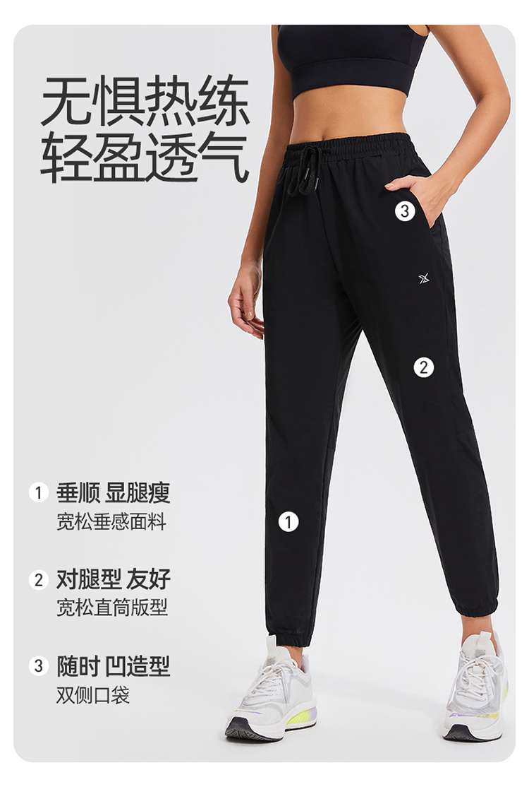 【拍一到手两件】双侧口袋束脚长裤跑步抽绳速干运动裤薄款休闲裤