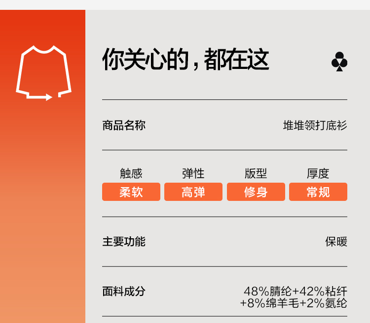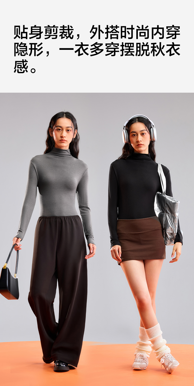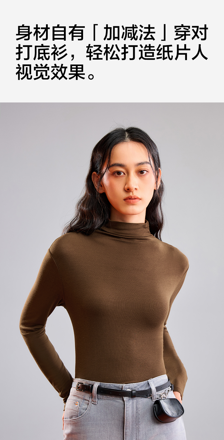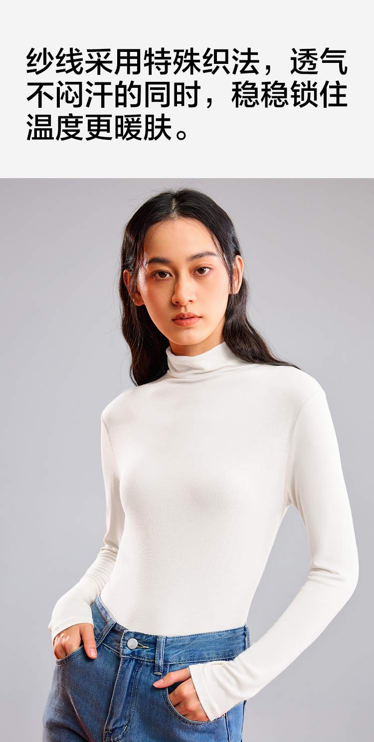 【绵羊毛打底衫】【M-2XL】【有棵树】女士保暖打底衫堆堆领长袖T恤