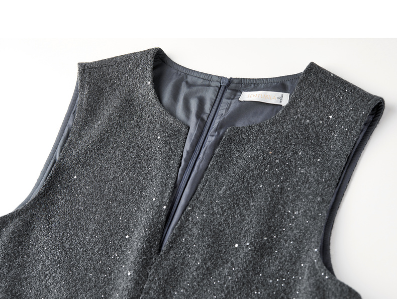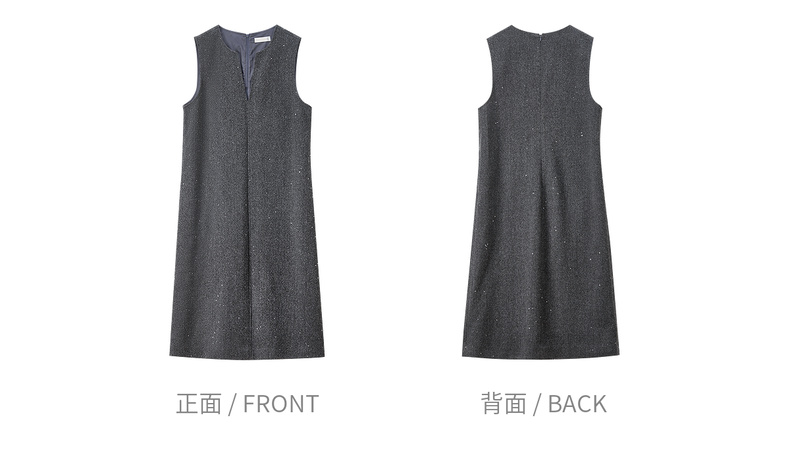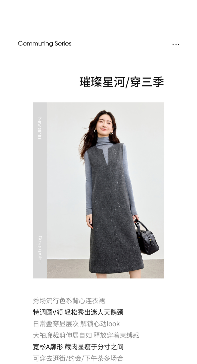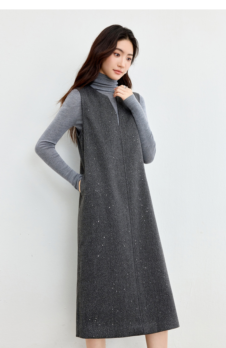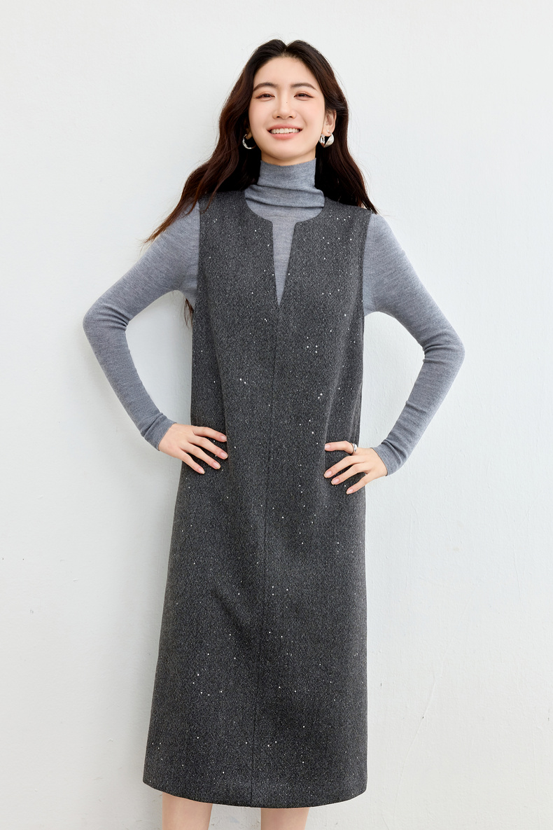 【内购】【穿三季】优雅聚会圆V领 宽松显瘦亮片呢子外穿内搭背心连衣裙-153LI3505