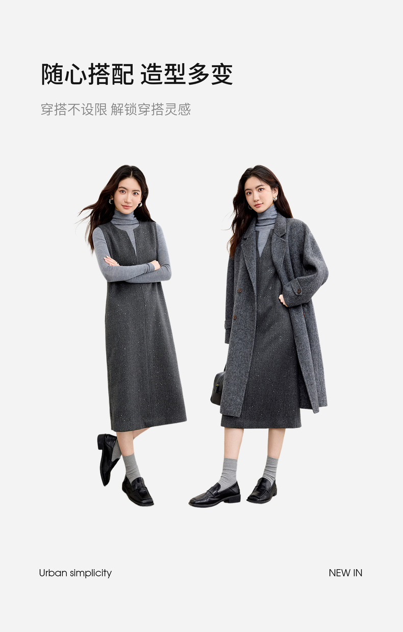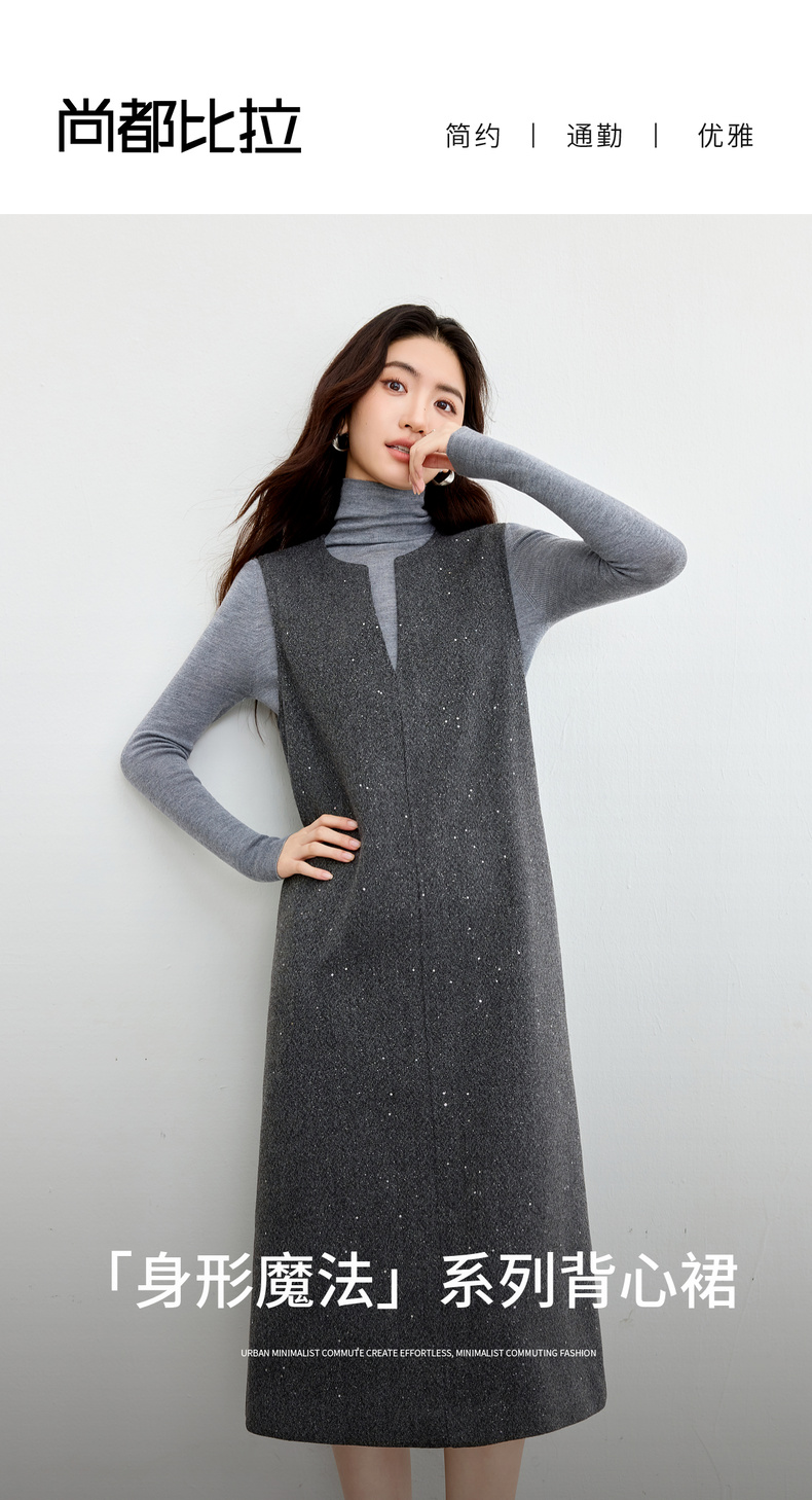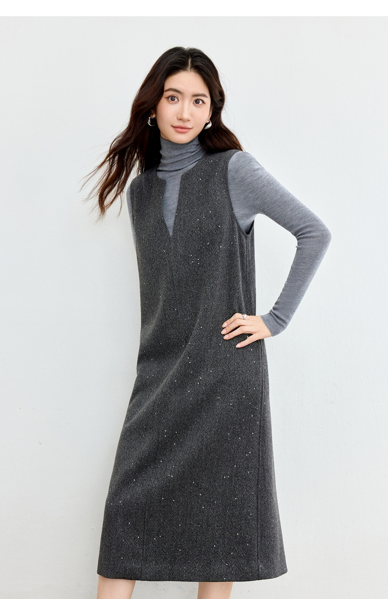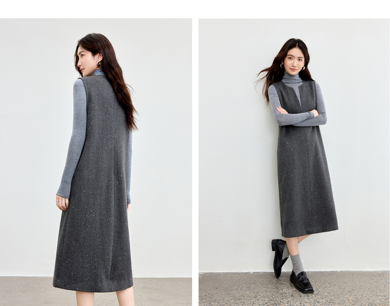 【内购】【穿三季】优雅聚会圆V领 宽松显瘦亮片呢子外穿内搭背心连衣裙-153LI3505