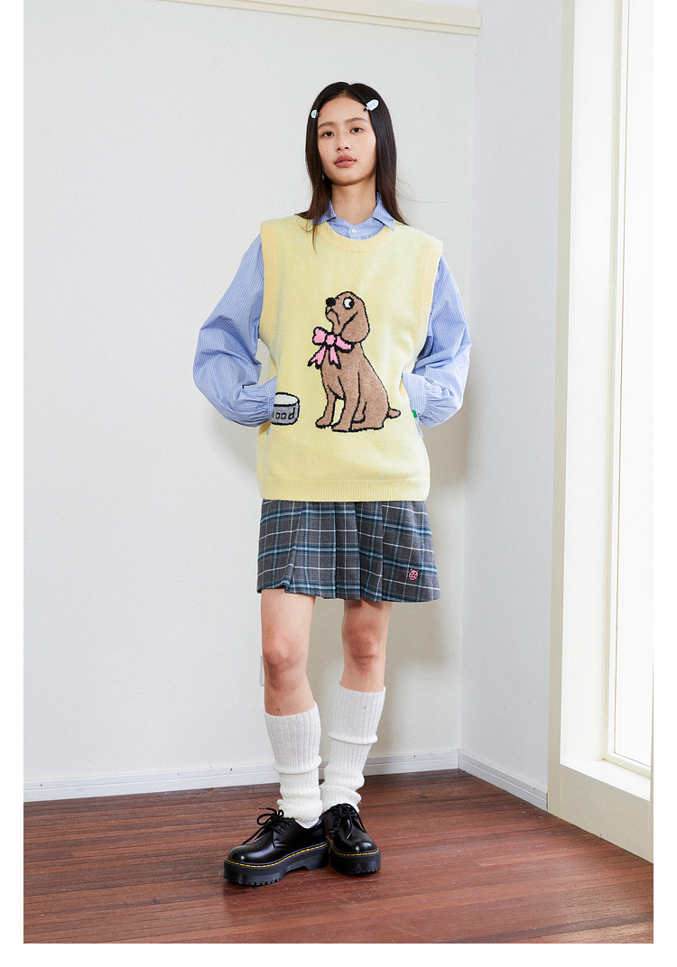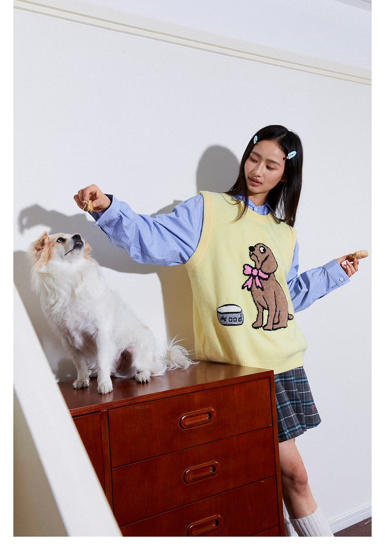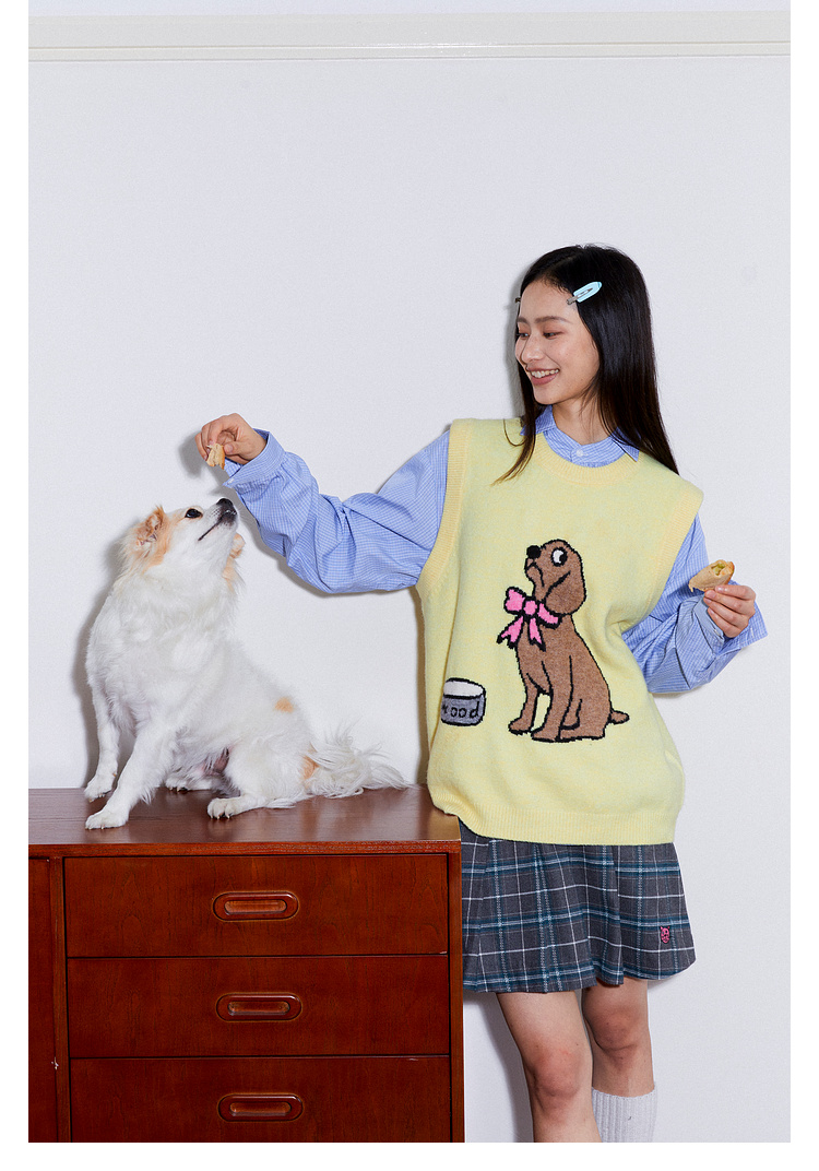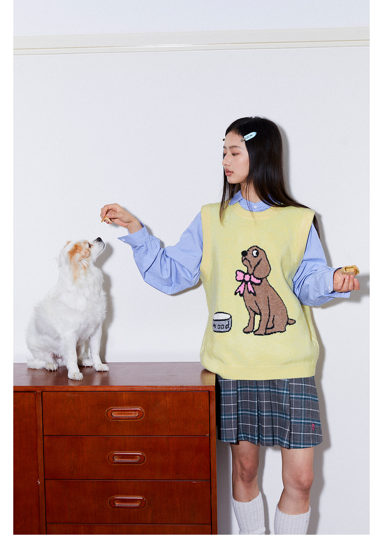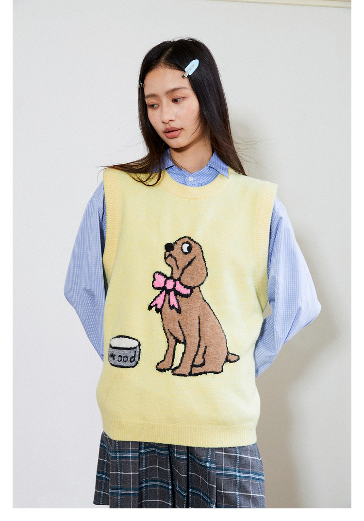 Mood Like Me/MMJ2403/提花小狗涂鸦针织马甲背心