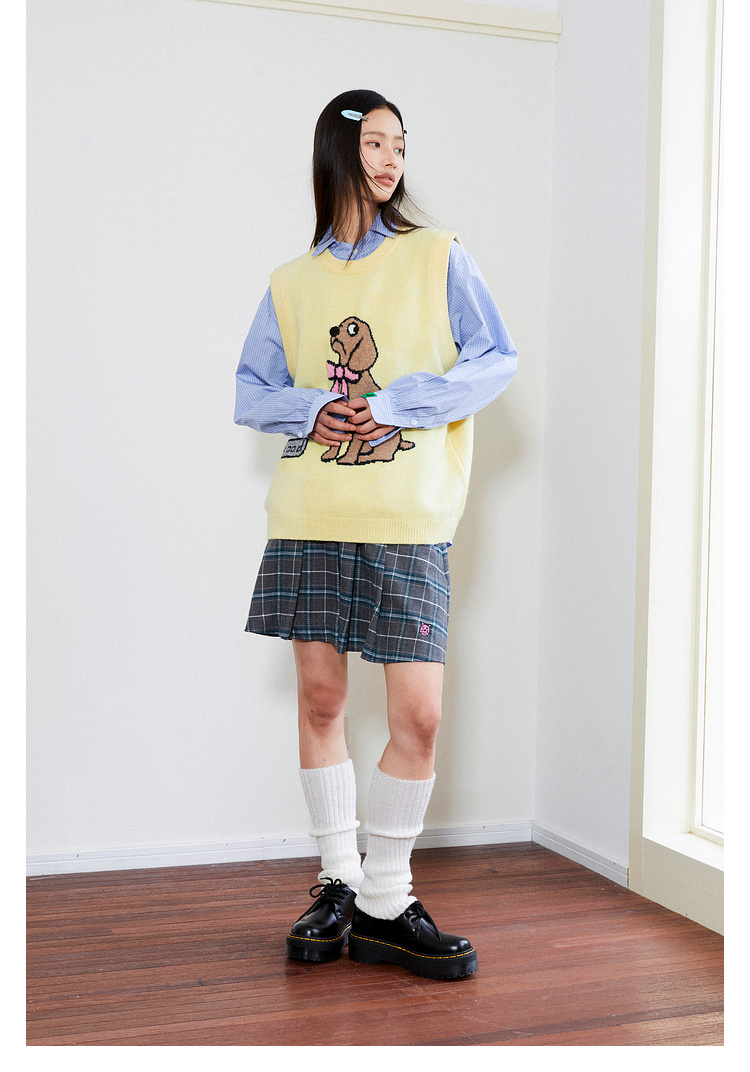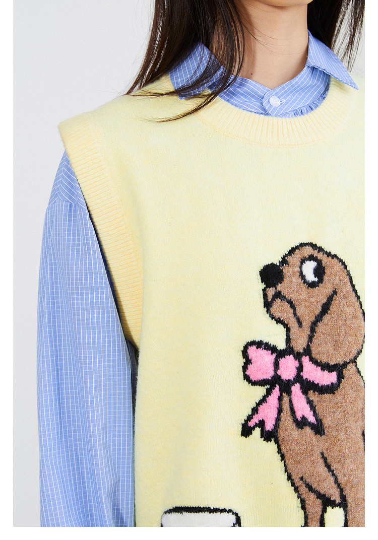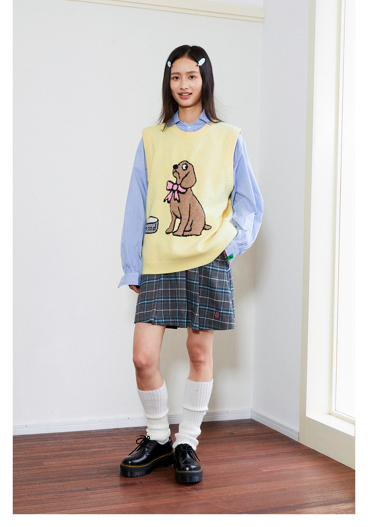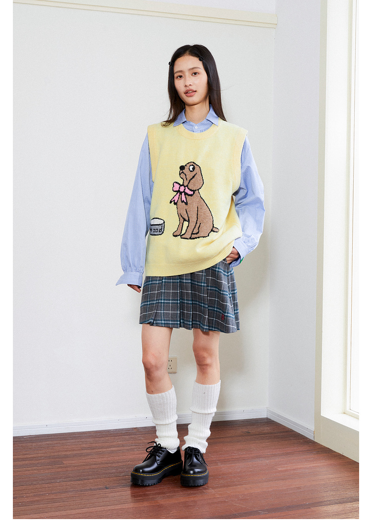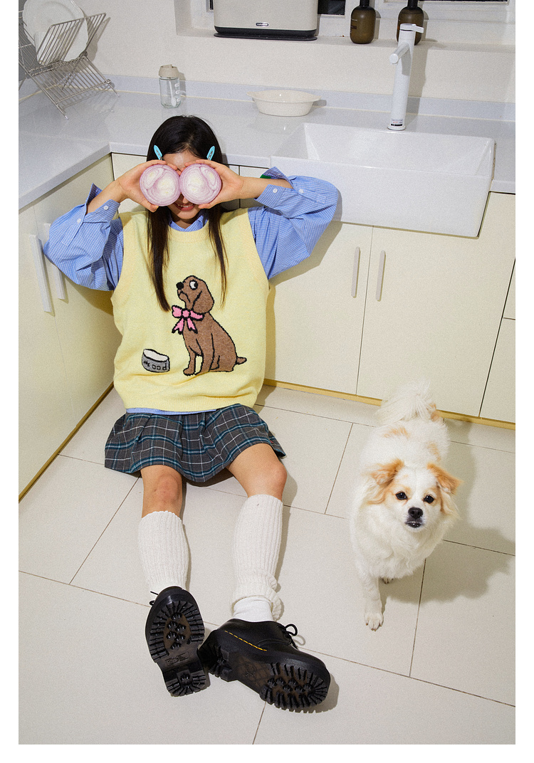 Mood Like Me/MMJ2403/提花小狗涂鸦针织马甲背心