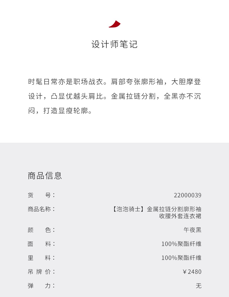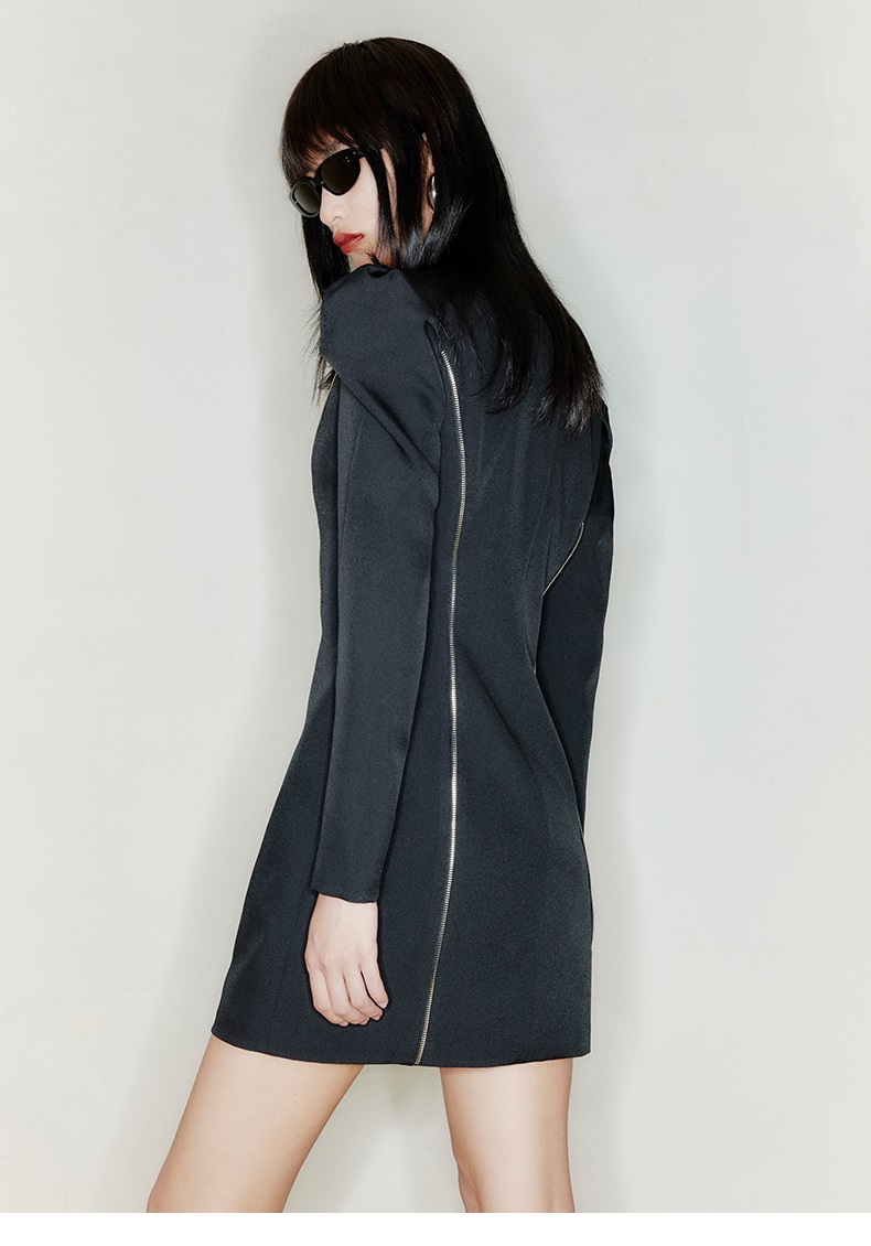 【泡泡骑士】金属拉链分割廓形袖收腰外套连衣裙/22000039
