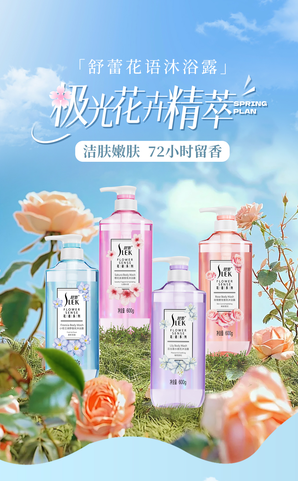 【可以洗澡的香水~】舒蕾花语香氛沐浴露 樱花百合香水款玫瑰小苍兰 持久留香净肤沐浴乳 600g/瓶