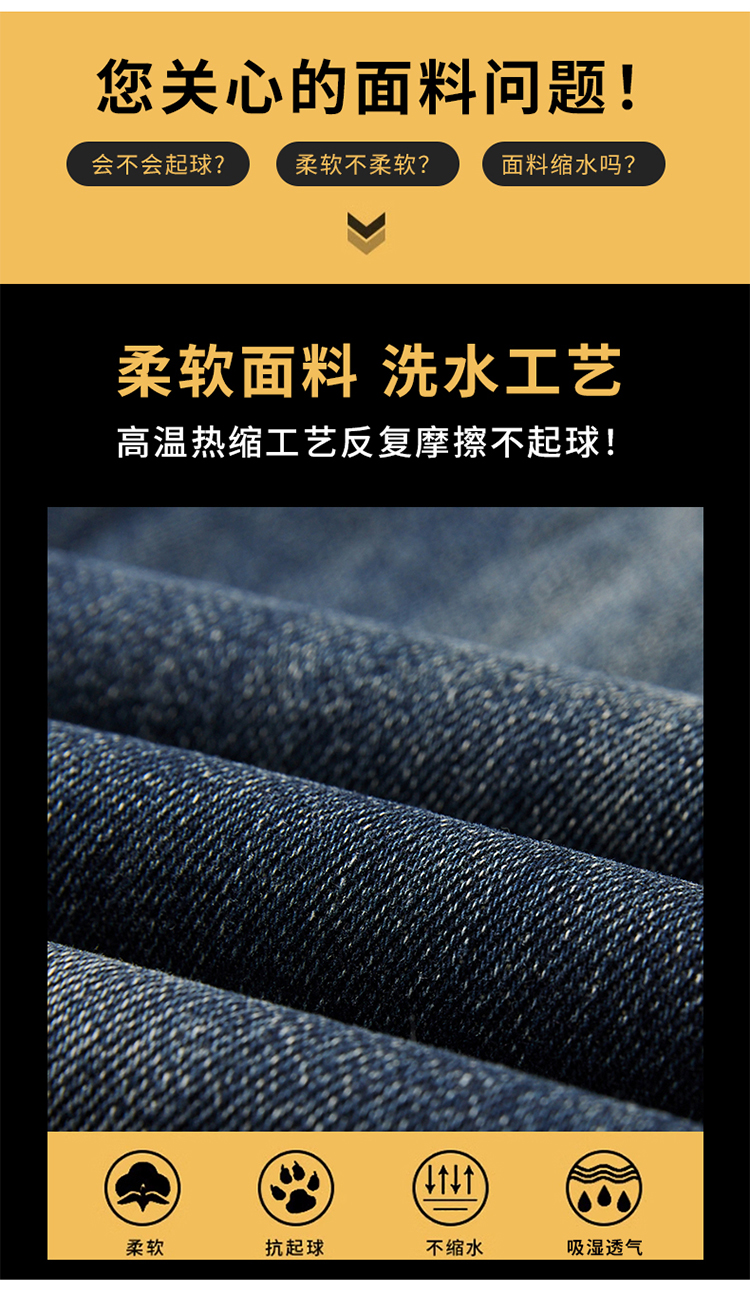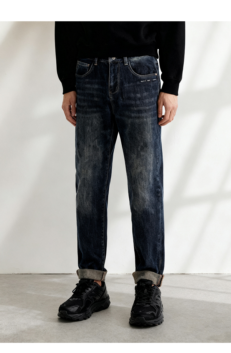 【实付满399送保温杯】【水洗棉休闲弹力牛仔裤】男士商务休闲直筒裤百搭宽松长裤子KT528