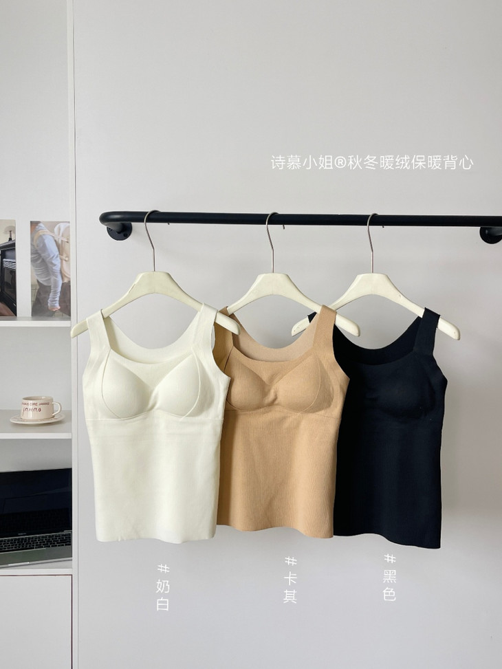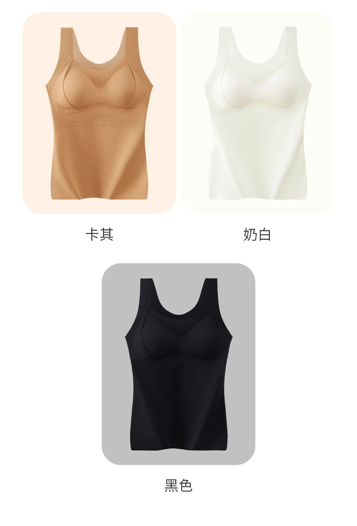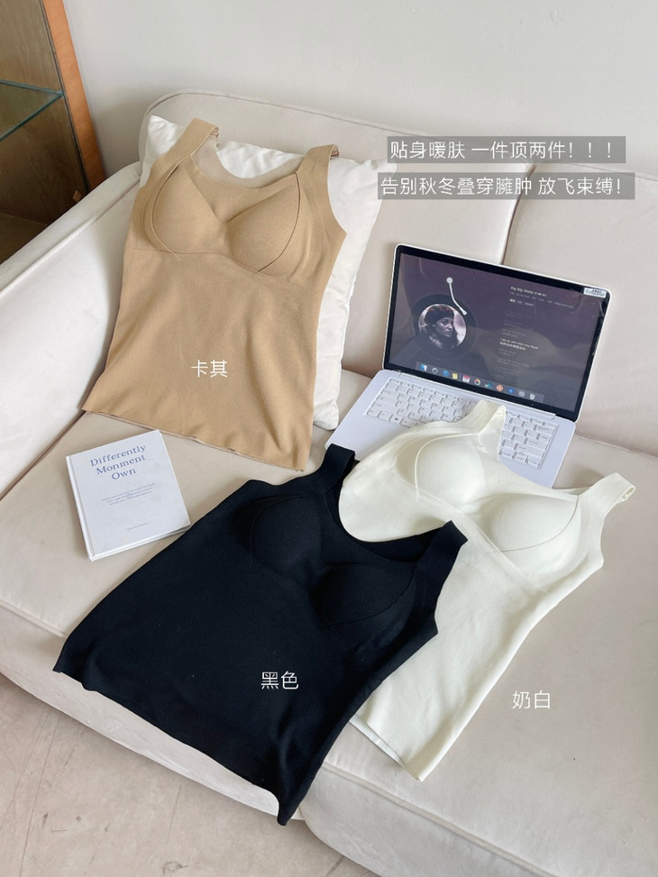 专属🍂的第一件背心❗️ 内里磨毛材质 超软糯,贴身穿像被云朵包裹 弹力超级大 贴身但是毫无紧绷感 自带胸垫设计!不用单独再穿👙内衣 直接穿上出门毫无压力 宽肩带修饰肩颈线条,有效遮副乳 单穿 秋冬叠穿再各种西装 卫衣 毛衣里 好看又保暖 完全不担心臃肿