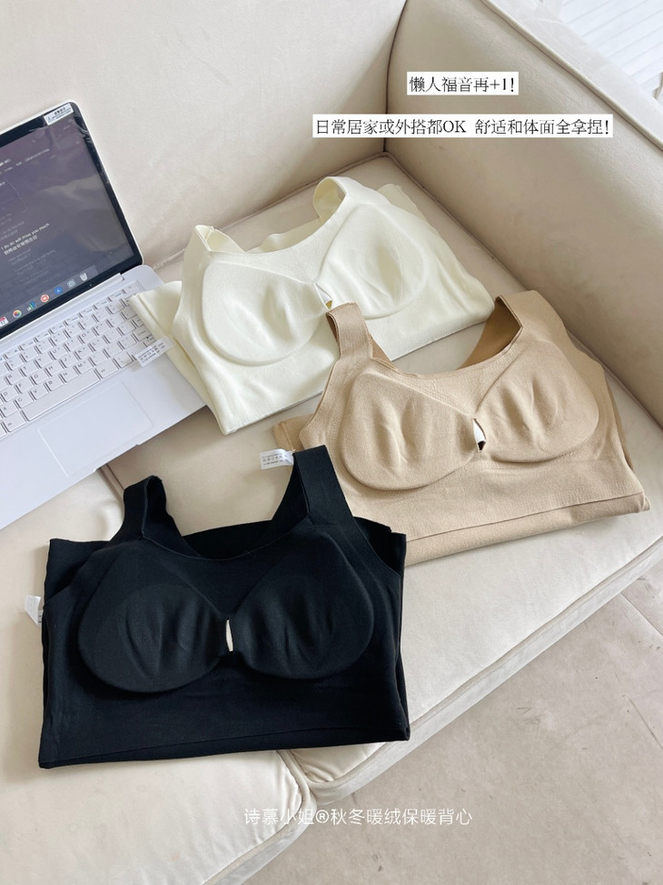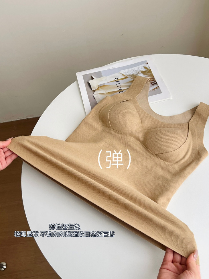 🔥【自带一体胸垫 免穿bra】诗慕小姐 秋冬暖绒保暖背心3771款👏 🌱自带胸垫设计!❣️内里磨毛材质 🌱宽肩带修饰肩颈线条,有效遮副乳
