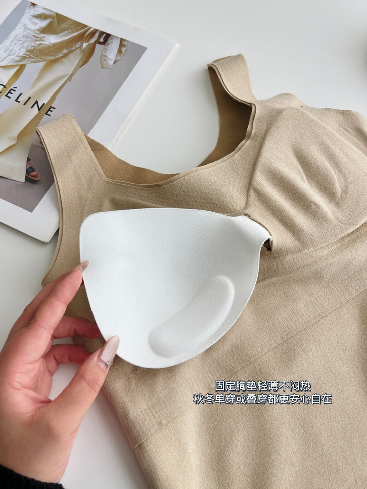 姐妹们 这次真的被惊艳到了! 这款秋冬背心真的巨好穿 自带一体胸垫免穿bra 磨毛面料一摸就软糯得不像话 完全不冰肤 哪怕气温骤降也不怕“冻肤”的清晨!