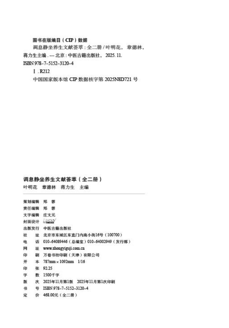 书名:调息静坐养生文献荟萃(全二册)