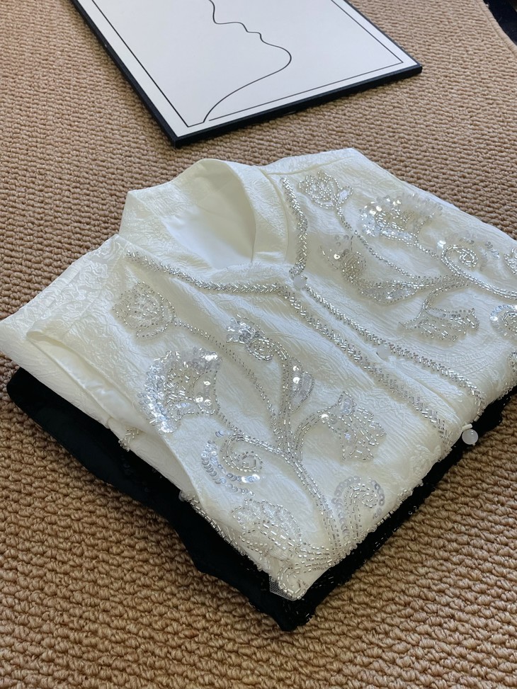 谁懂啊!拿到实物瞬间被美晕✨ 定制人棉面料,黑白双煞配色 经典又高级~ 内衬加持,舒适度拉满 挺括不紧绷 重工珠绣 + 钉珠叠 buff 穿上直接变身行走的艺术品 质感炸裂💥 H 型宽松廓形,藏肉又飒气 随手一搭就很 “显贵”! 利落剪裁自带东方气韵 温柔又大气,完全长在审美点上~