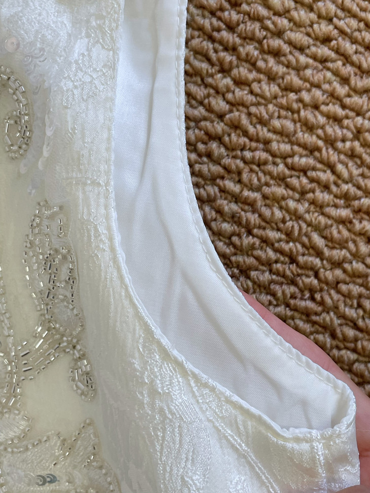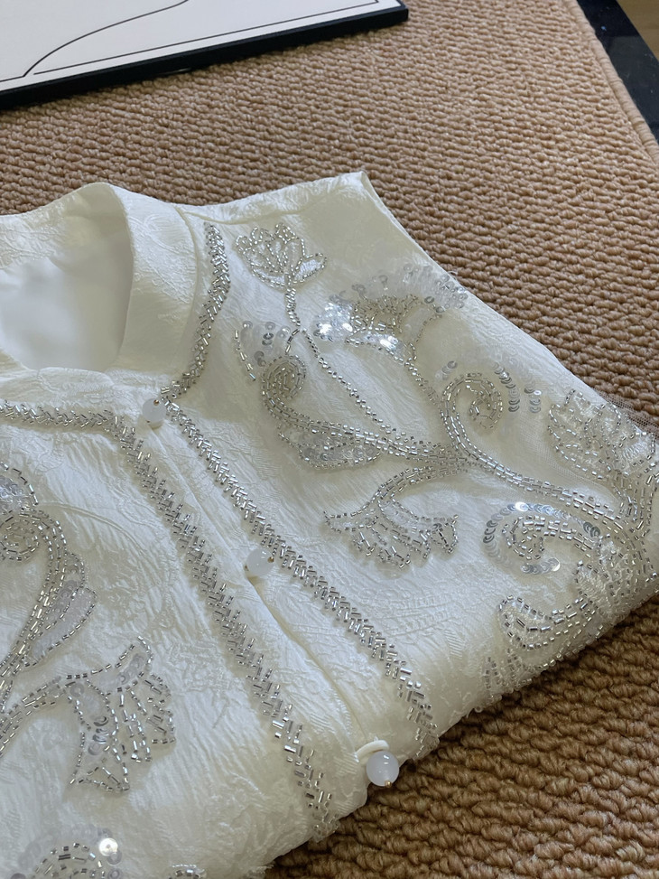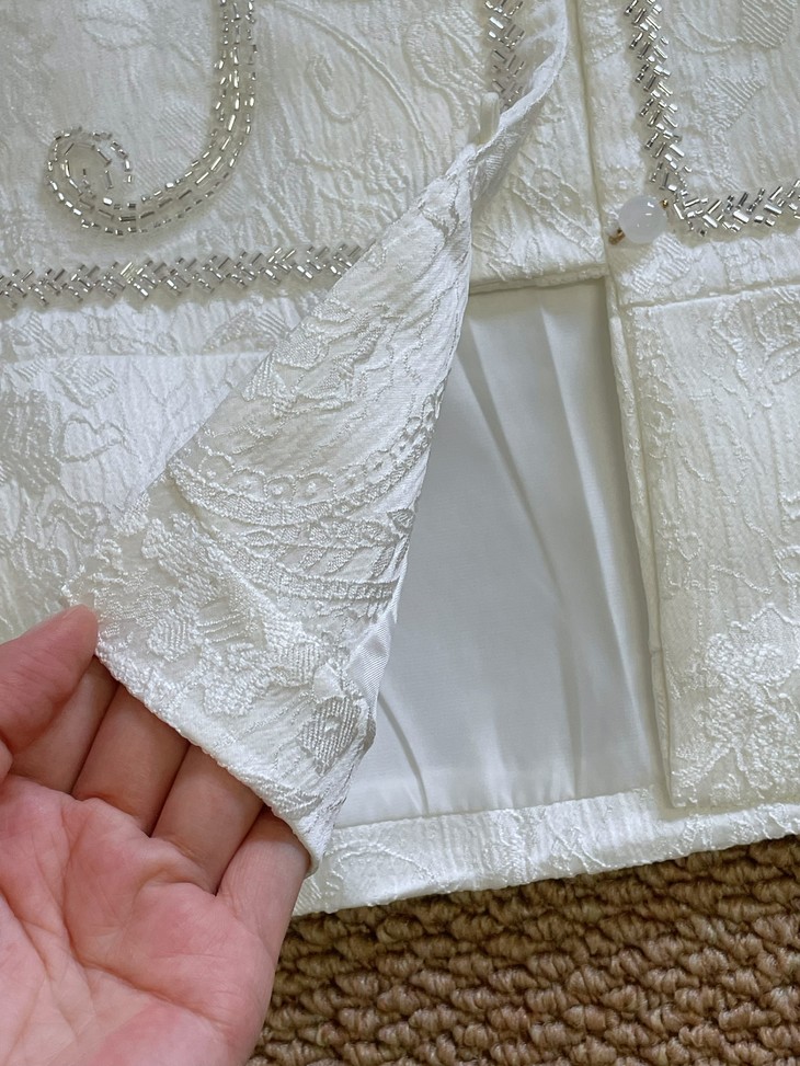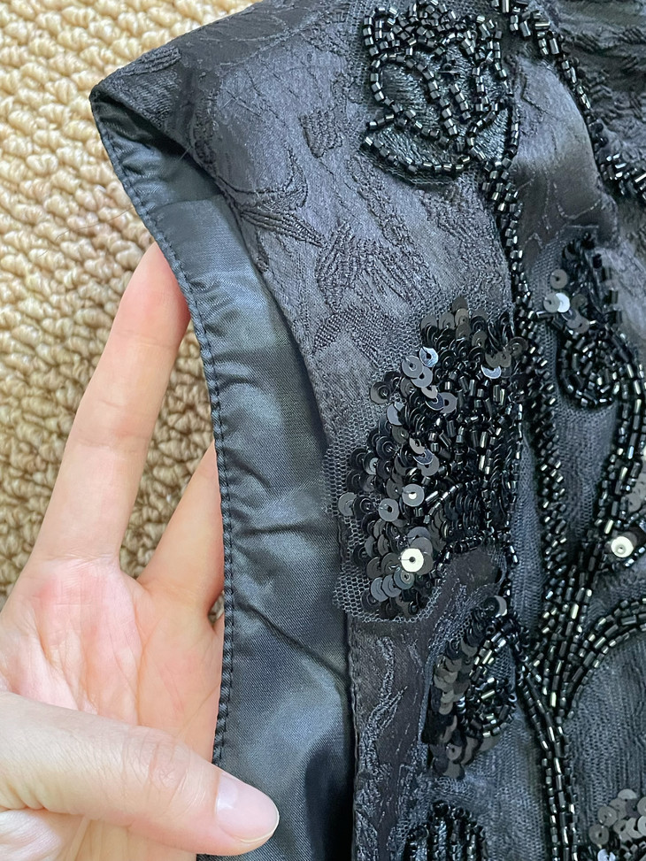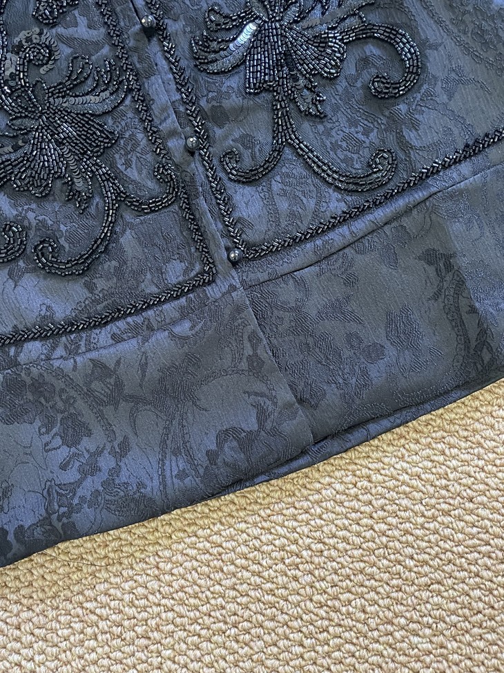 要特别的说全身的花型都是定位对称 再进行纯手工明线缝制 珠子的通透质感和光泽会随着走动时刻变化 像碎钻也像璀璨星河~很高级 品质你拿到手绝对惊艳 全部无滤镜实拍细节 苹果相机高清怼着拍 你看到照片什么样拿到实物就是什么样 以下均为本团实拍❗️