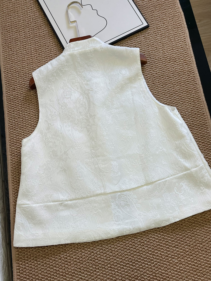 小立领+简洁版型 经典的新中式马甲剪裁 上身就能get不拖泥带水的利索挺括感 如果是刚入坑新中式的姐妹建议从马甲入手 可以和T恤衬衫打底衫之类的混搭 裤子裙子也是任意搭配就足够日常好驾驭了