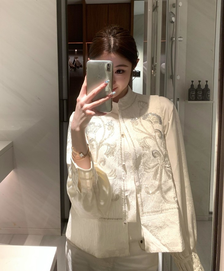 中式美的神韵就在于刺绣和细节上 再与大胆的现代极简设计结合 也成就了这件美丽和品质缺一不可的衣服 面料本身自带提花肌理加以更细腻的视觉效果 中式复古韵调,深刻诠释东方美学精髓 品味细腻典雅,不张扬不取悦,散发獨特光彩 也将诗意、宁静与典雅表现的淋漓尽致 直身式廓形感剪裁,利落顺直周身有余量 无论是日常出街还是参加聚会 都能让你成为人群中的焦点~