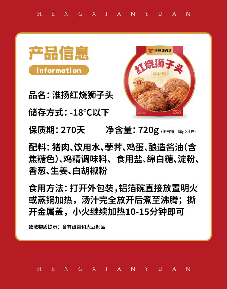 【精品装】淮扬红烧狮子头720g/盒