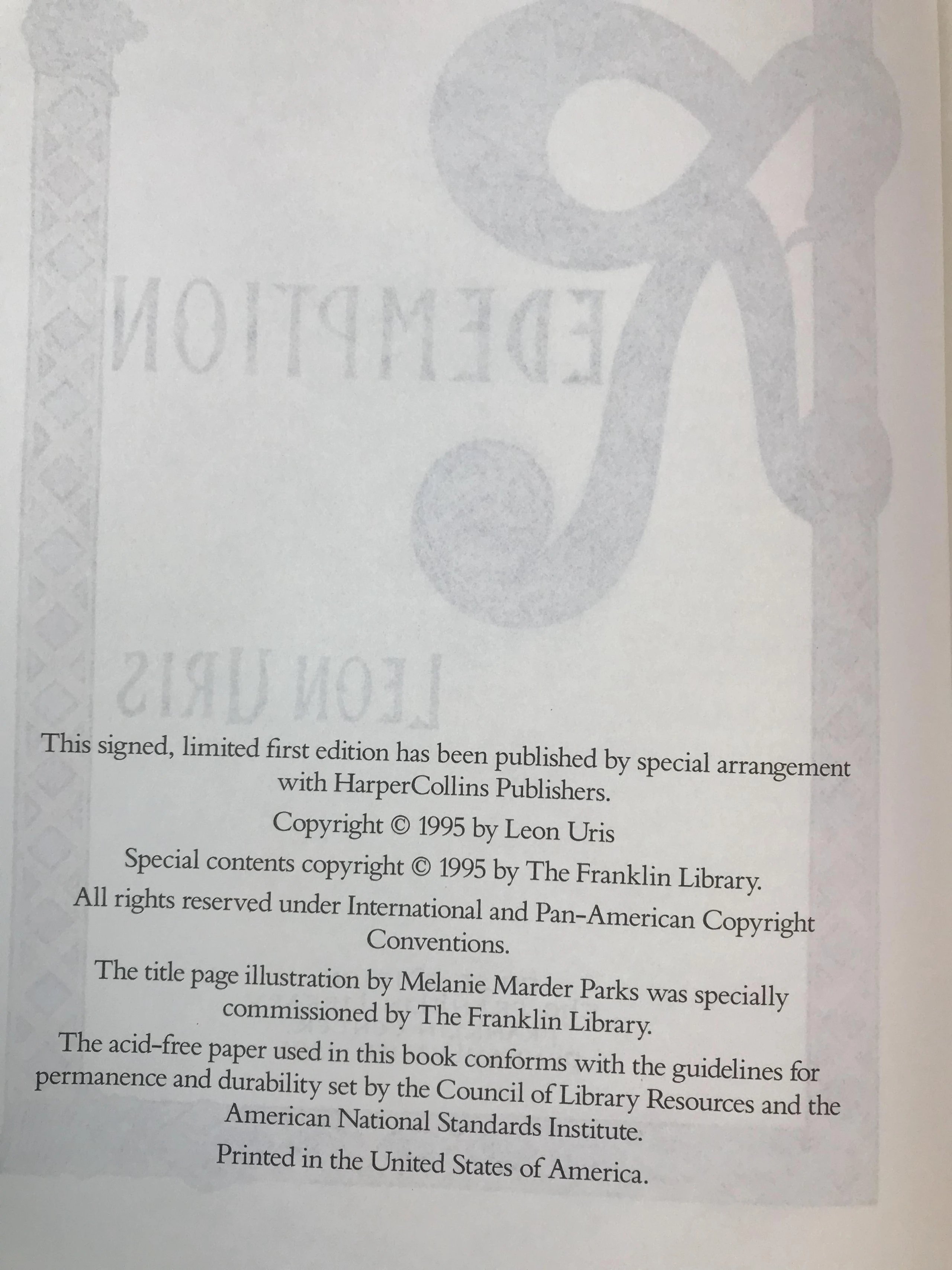 签名首版!利昂・尤里斯《救赎》 富兰克林图书馆豪华皮装本