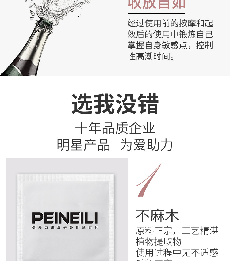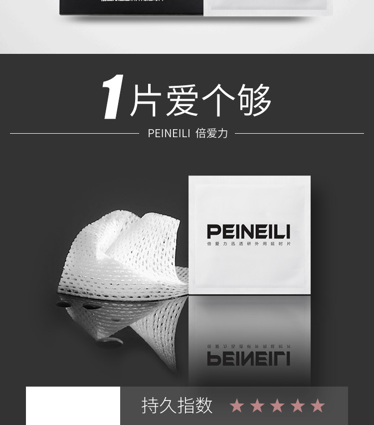 倍爱力倍耐力延时湿巾 1片 男性持久不射延时湿巾持久男用早泄 男用延时湿巾 单片装
