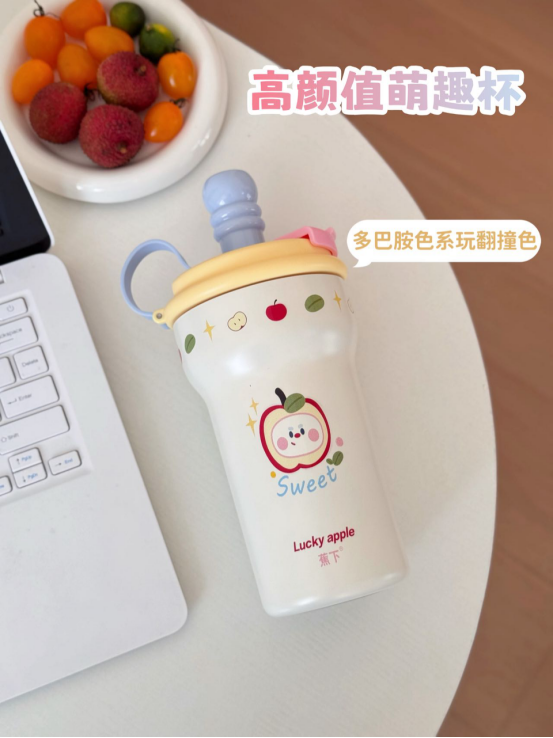 杯身颜值杀💥 3D卡通印花太绝啦 🍎 立体苹果图案+简约杯身 高级磨砂质感超加分✨ 拿在手里像捧着一颗“甜苹果”,可爱到犯规! 喝水都变得甜甜的🥰 这颜值谁扛得住~