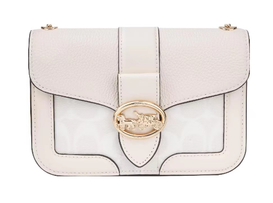 COACH 蔻驰 Georgie 19 马车扣拼色链条肩带 涂层帆布拼皮革 小方包单肩斜挎包 小号米白色