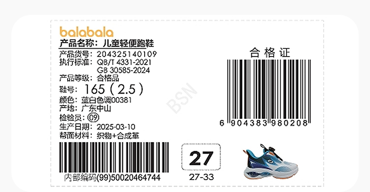 巴拉巴拉童鞋男童运动鞋透气2025春秋新款鞋子旋钮扣