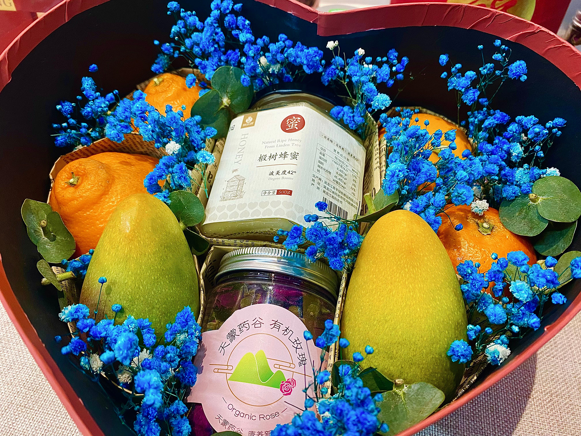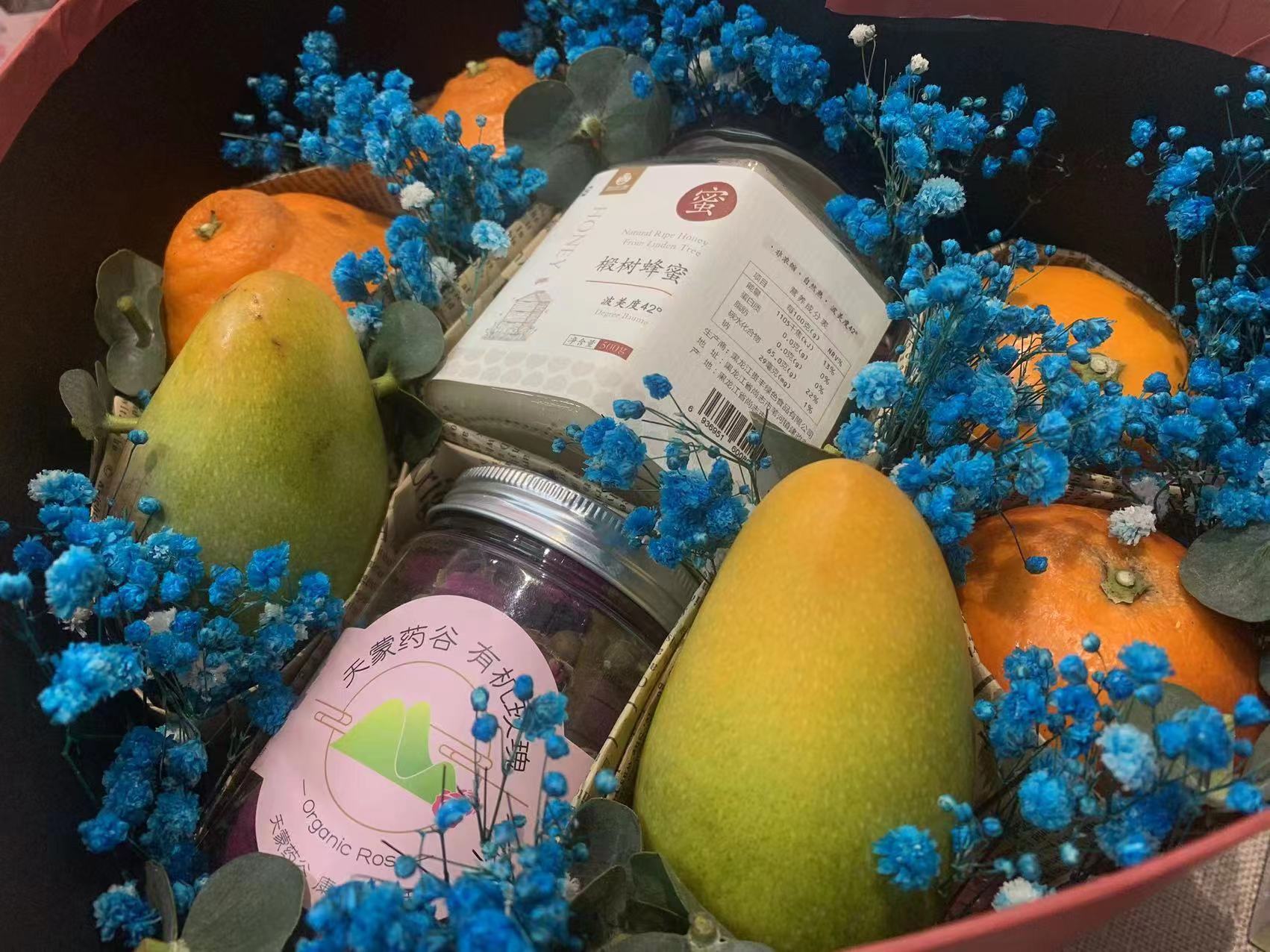 水果伴手礼:限量发售 “橙”心“橙”意水果礼盒,手工亲自设计搭配,精选优质水果+鲜花+蜂蜜。
