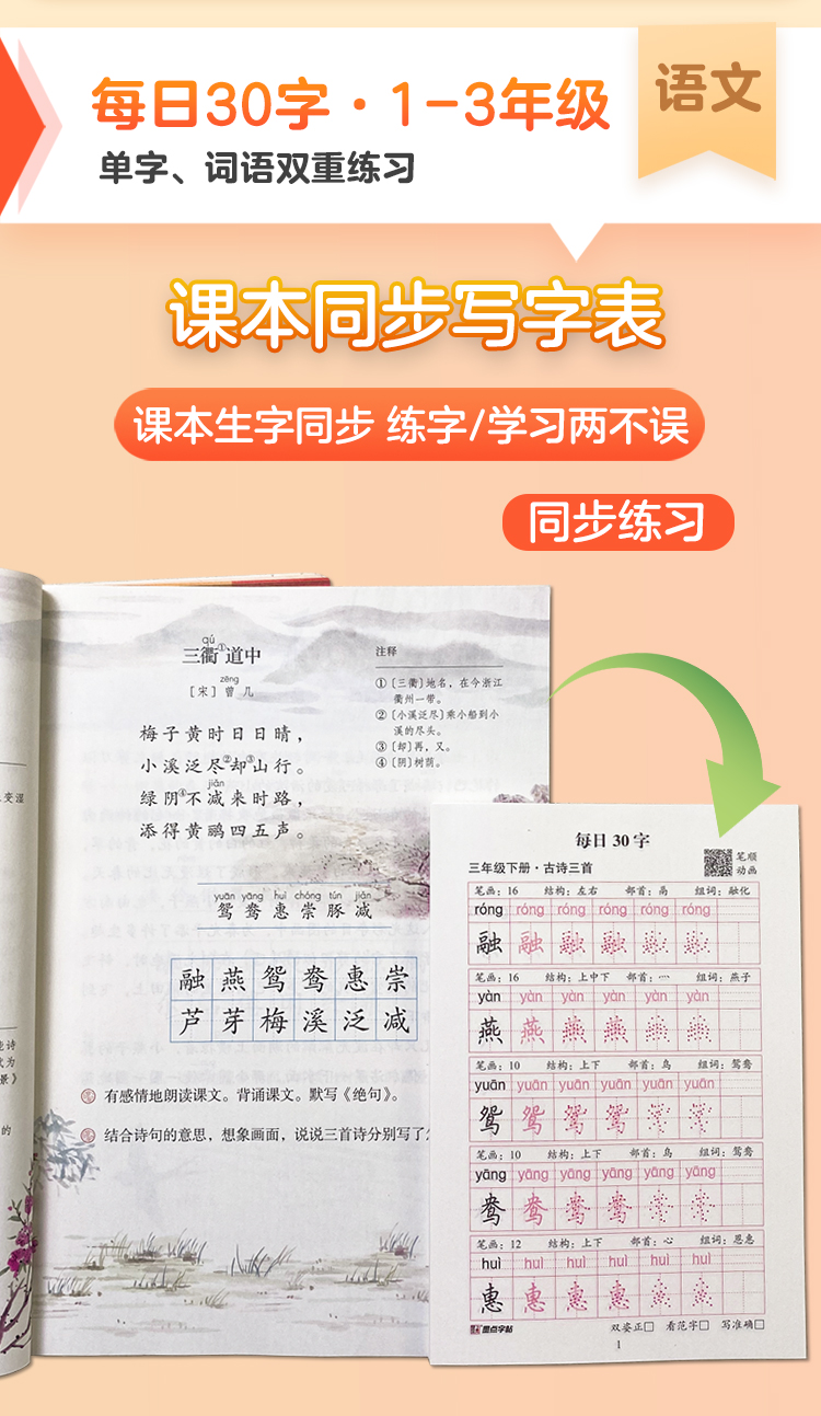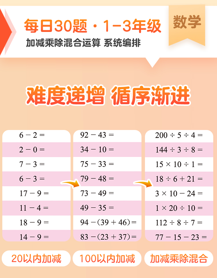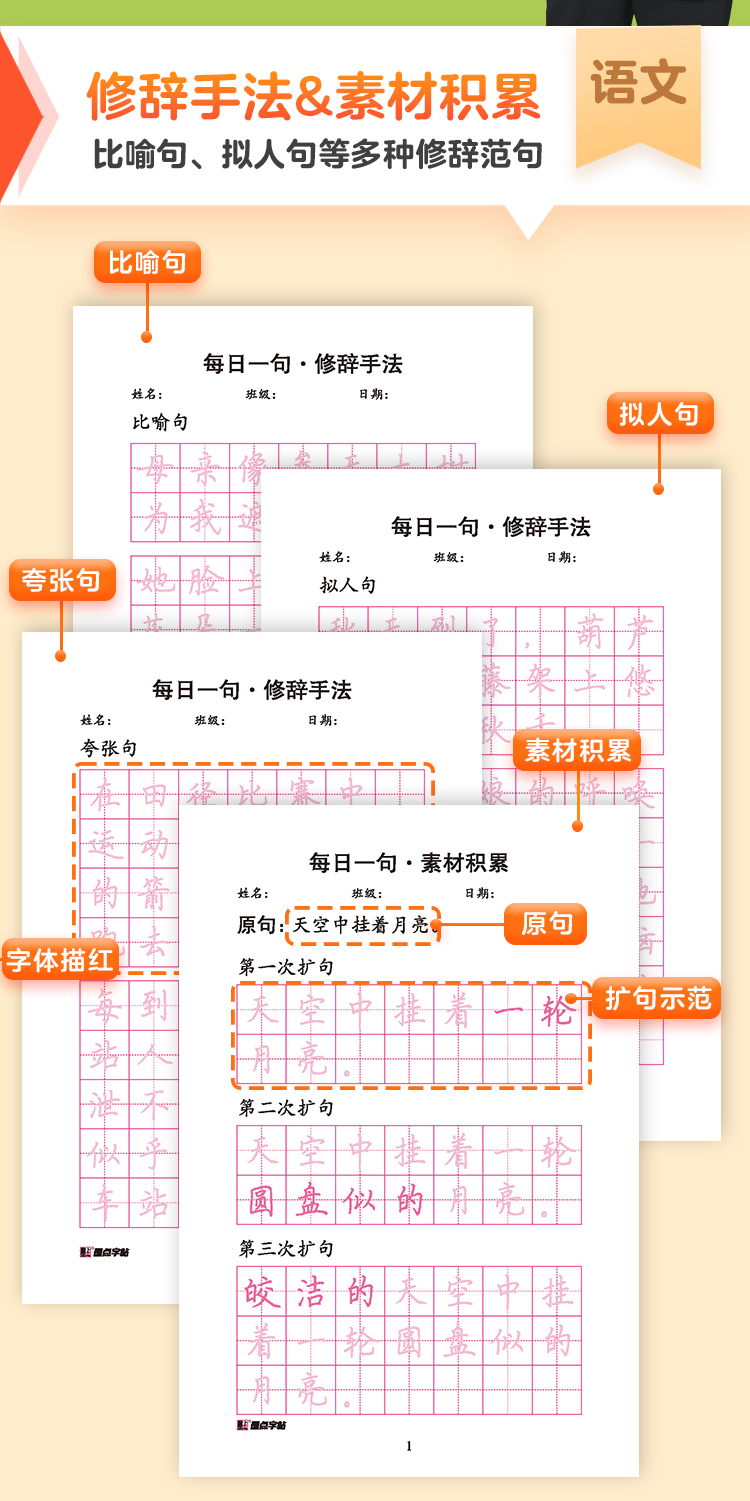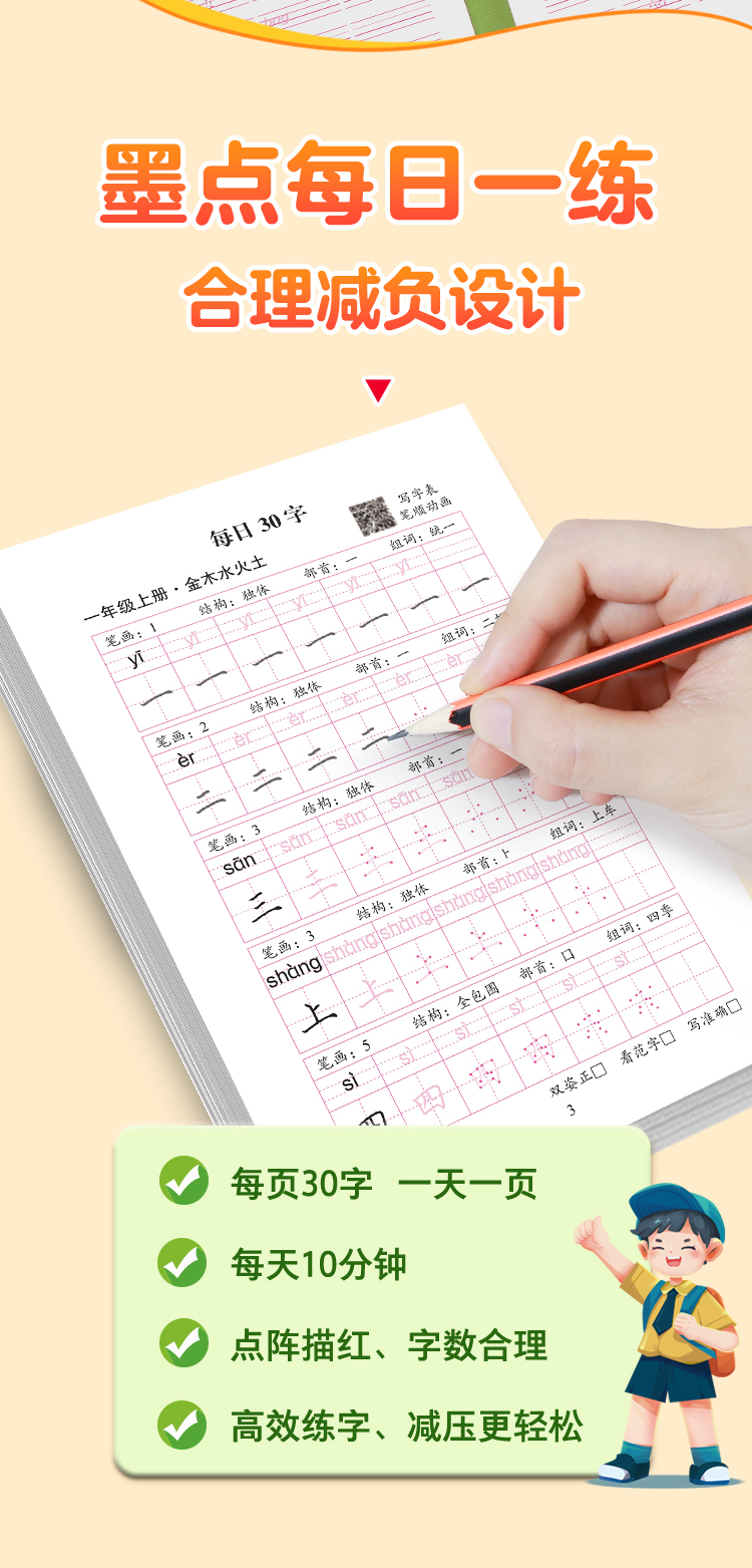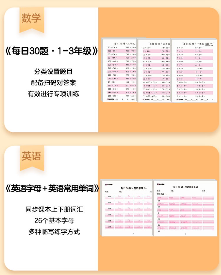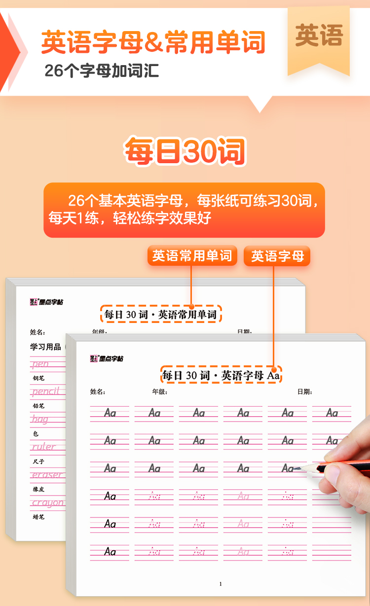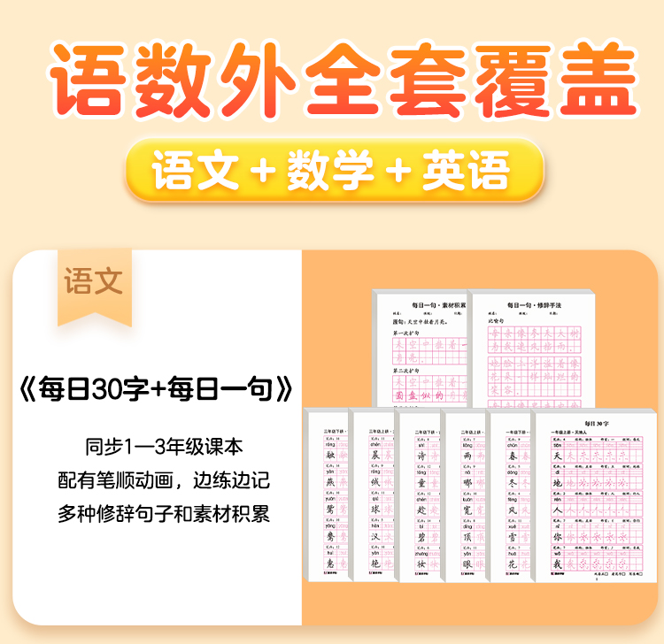 墨点字帖:每日一练数学口算练习纸数字描红练字帖一二三年级字帖练字减压小学生专用语文每日30字同步练字帖英语字母单词硬笔书法练字本