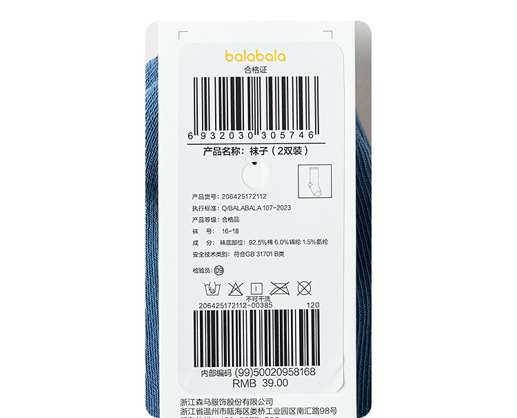 巴拉巴拉宝宝袜子冬季保暖袜婴幼儿短袜防着凉两双装