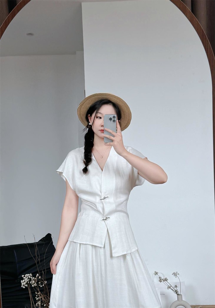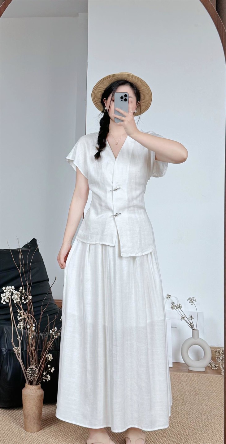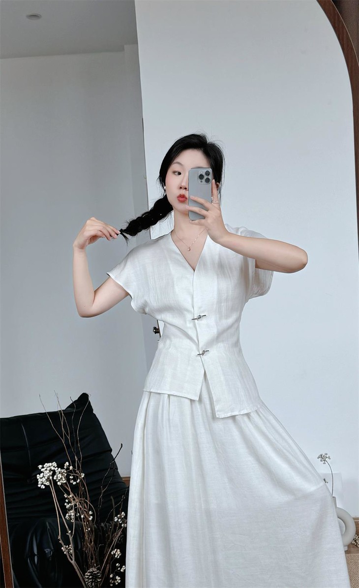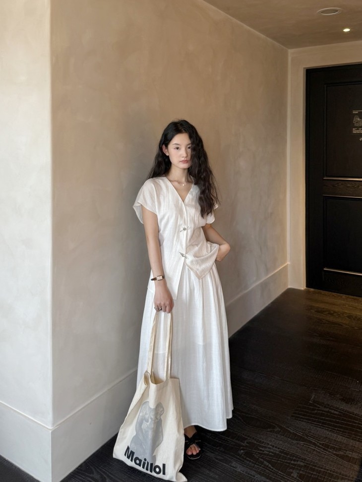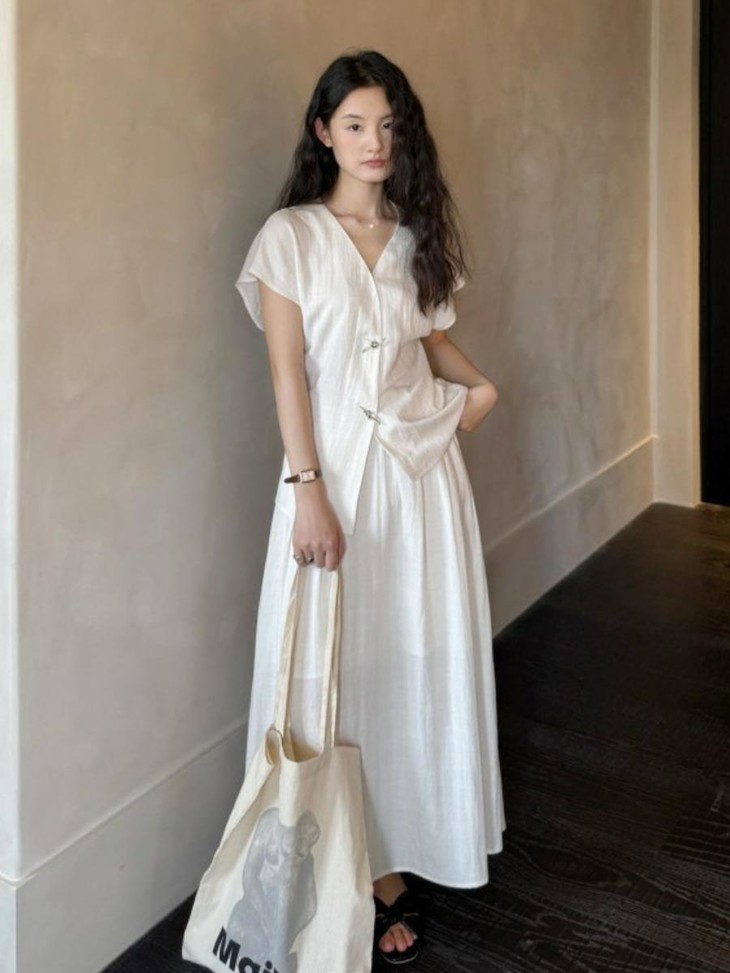 救命,谁发明的这套衣服啊‼️ 把「松弛感」和「高级感」焊在身上了!! 我愿称之为“误入人间的清冷白月光套装” 宝子们听我说,喜欢简约清冷风的‼️ 不冲真的会后悔!!! ✅面料是会呼吸的天丝 + 亚麻混纺 走路带风的清凉感谁懂啊!! 自带肌理感 上手一摸 柔顺得像被云朵轻轻蹭了一把 夏天穿完全不会闷汗 就像随身揣着个小空调🉑 ✅新中式金属盘扣绝绝子 把东方韵味和极简主义拧成一股绳 随便一穿就是「看似毫不费力,实则精心打扮」 的松弛感美人❗️