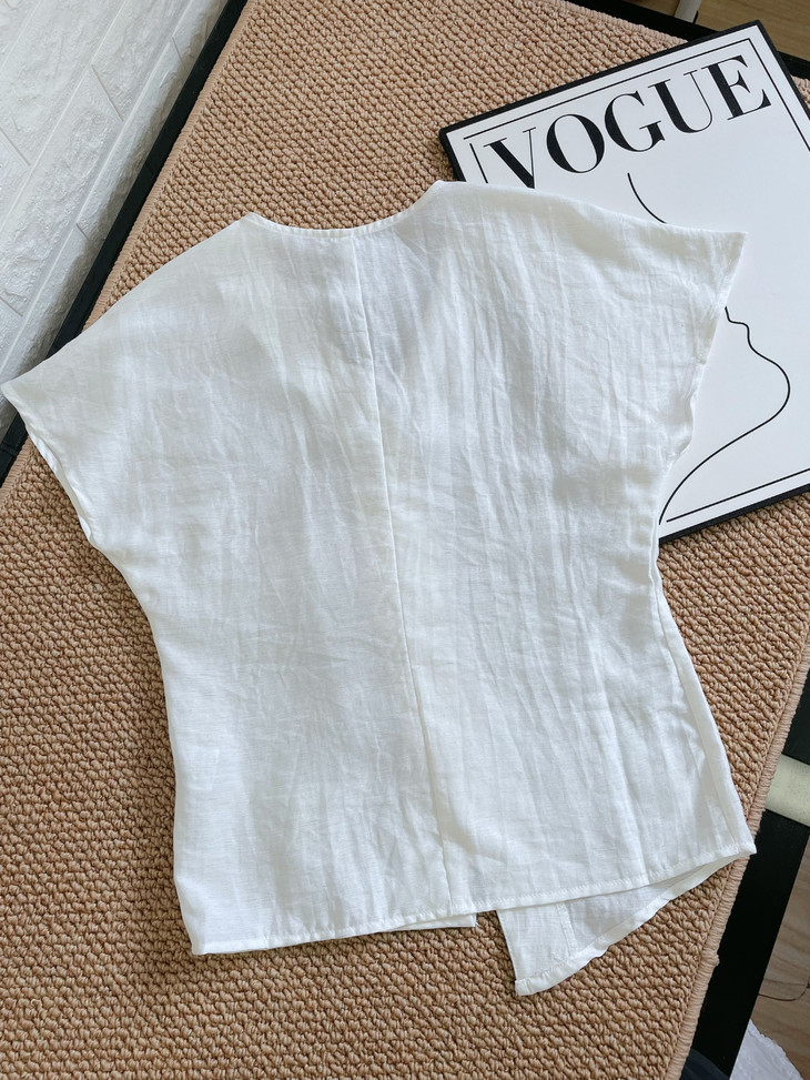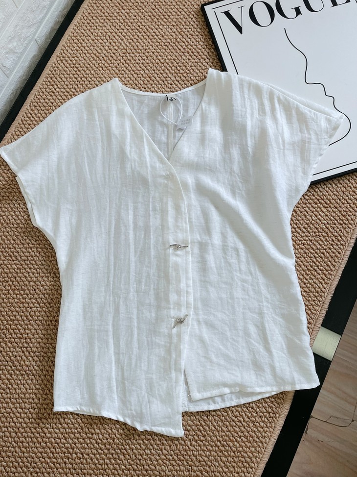 ✅设计:极简≠简单,细节控狂喜 上衣:V领+不对称门襟👉 一秒藏肉显气质! ✅短袖是宽松的蝙蝠袖型 对拜拜肉超友好❗️ V领微微开得恰到好处 内有暗扣即能露出锁骨又不会走光😸 搭配不对称门襟设计 打破常规的呆板感,随意又时髦~
