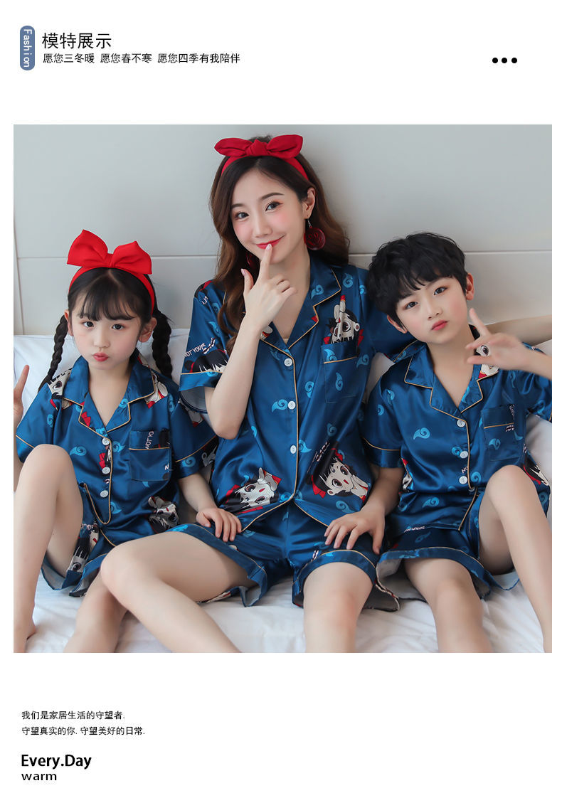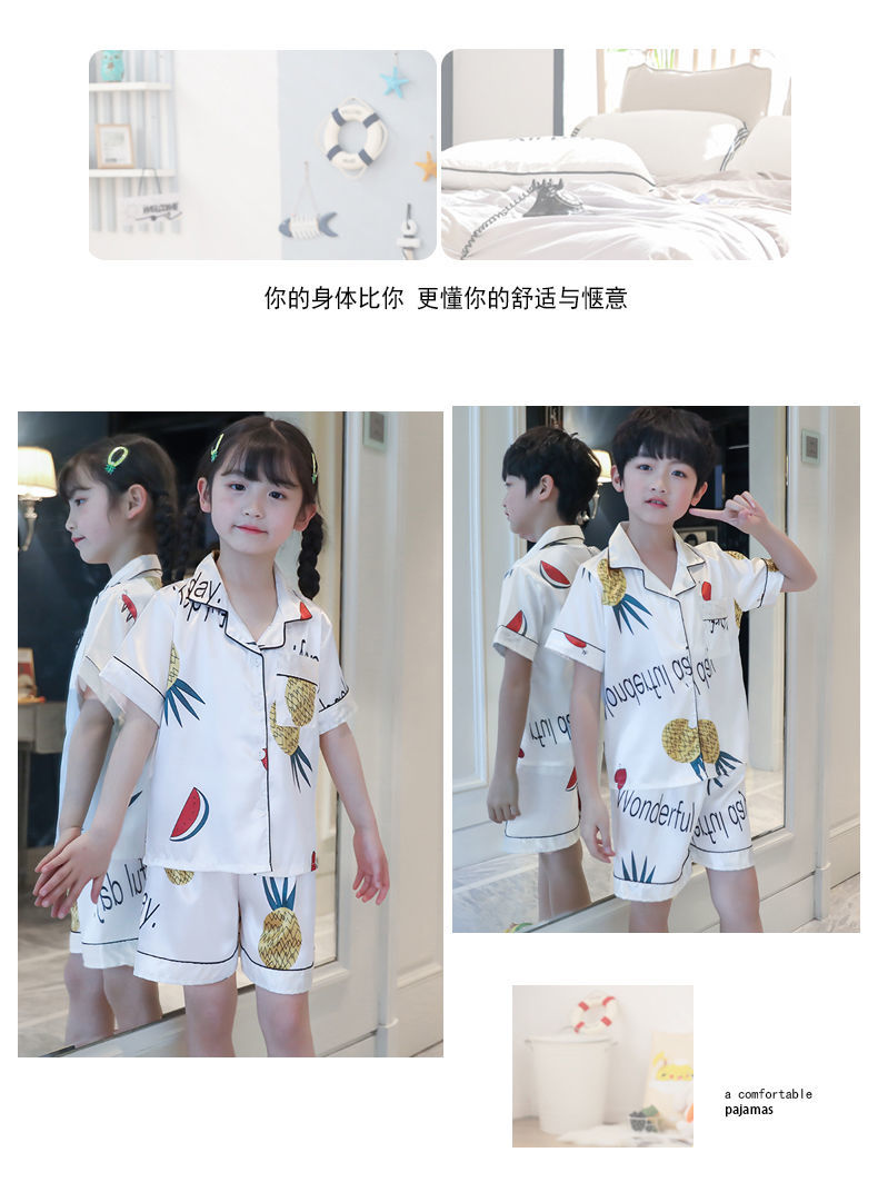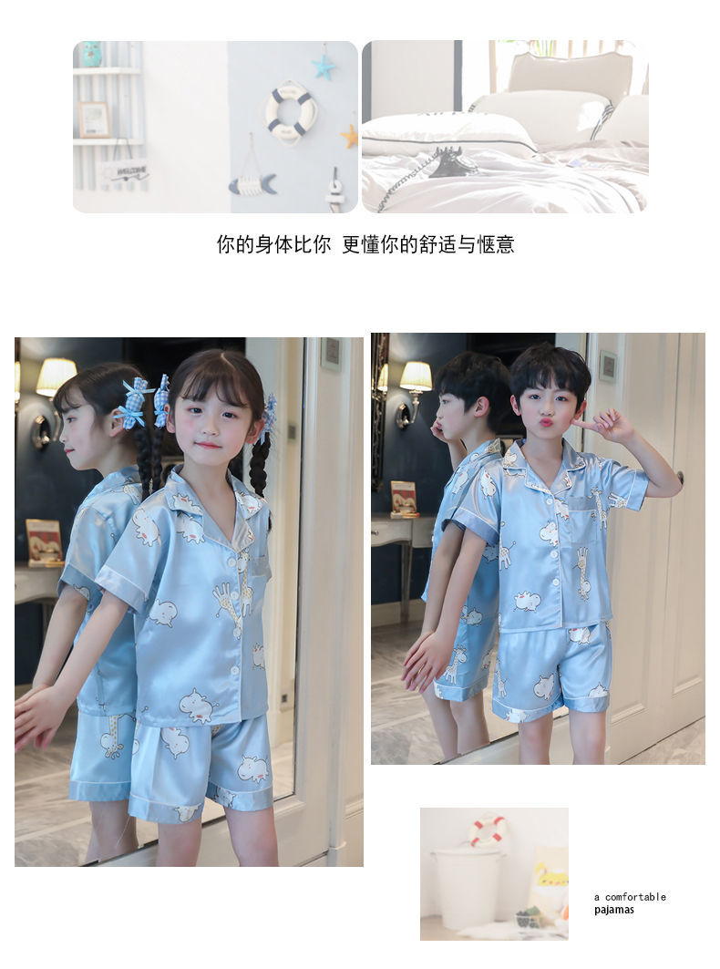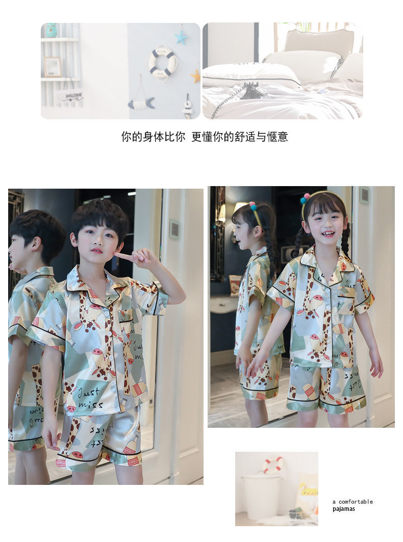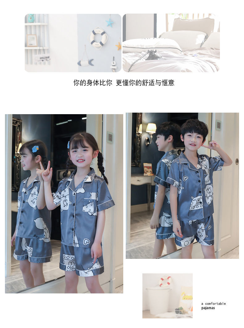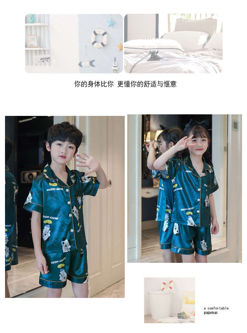 男童睡衣夏季短袖薄款套装儿童睡衣冰丝小男孩大童夏天卡通家居服
