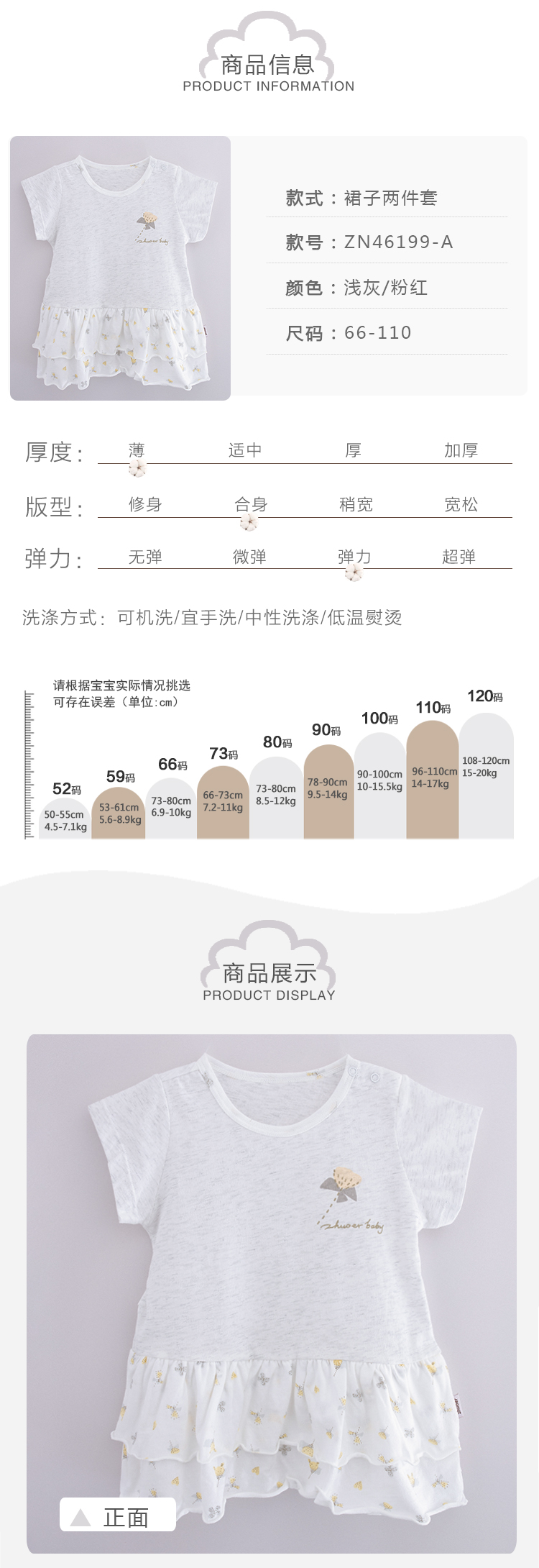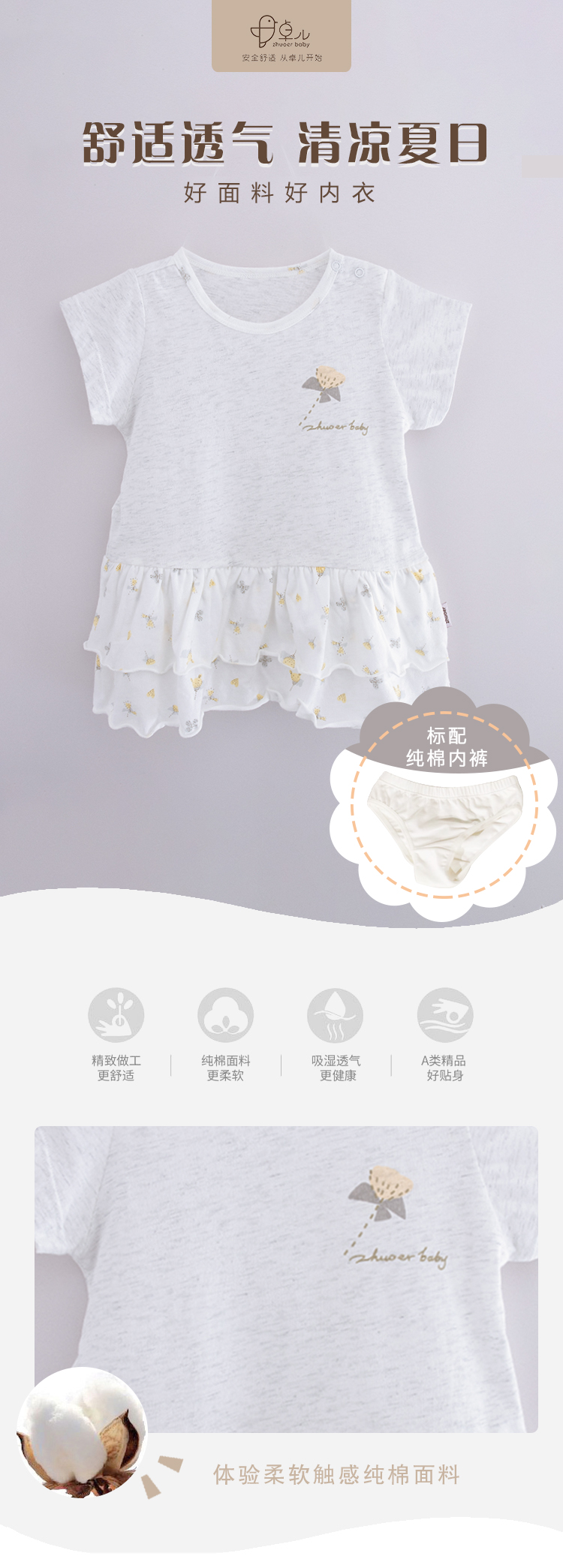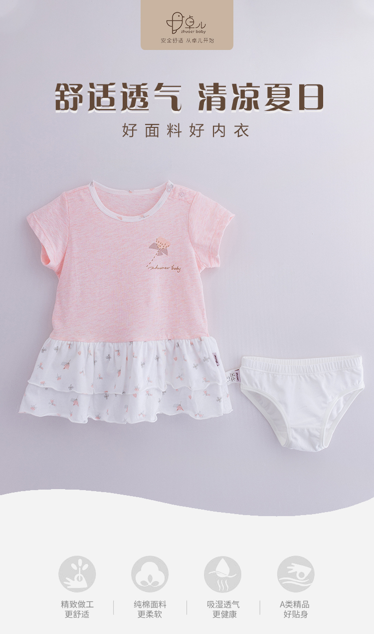 【裙子两件套】卓儿轻薄婴儿女童夏季连衣裙女宝宝短袖裙子