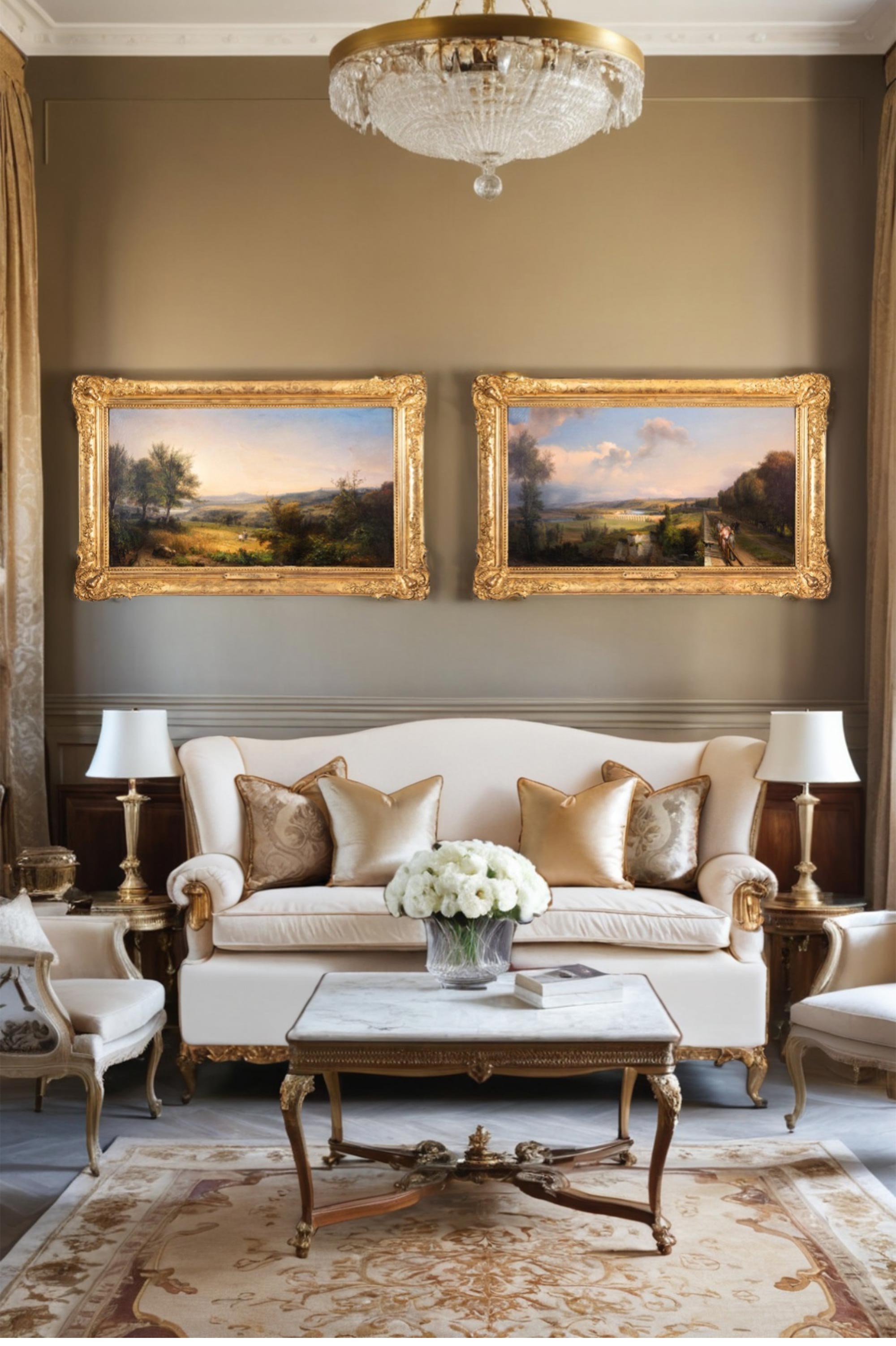 独角鹿西洋古董 法国画家François Edme Ricois签名创作风景主题布面油画客厅装饰画《马雷-马尔利》与《圣日耳曼昂莱台地》