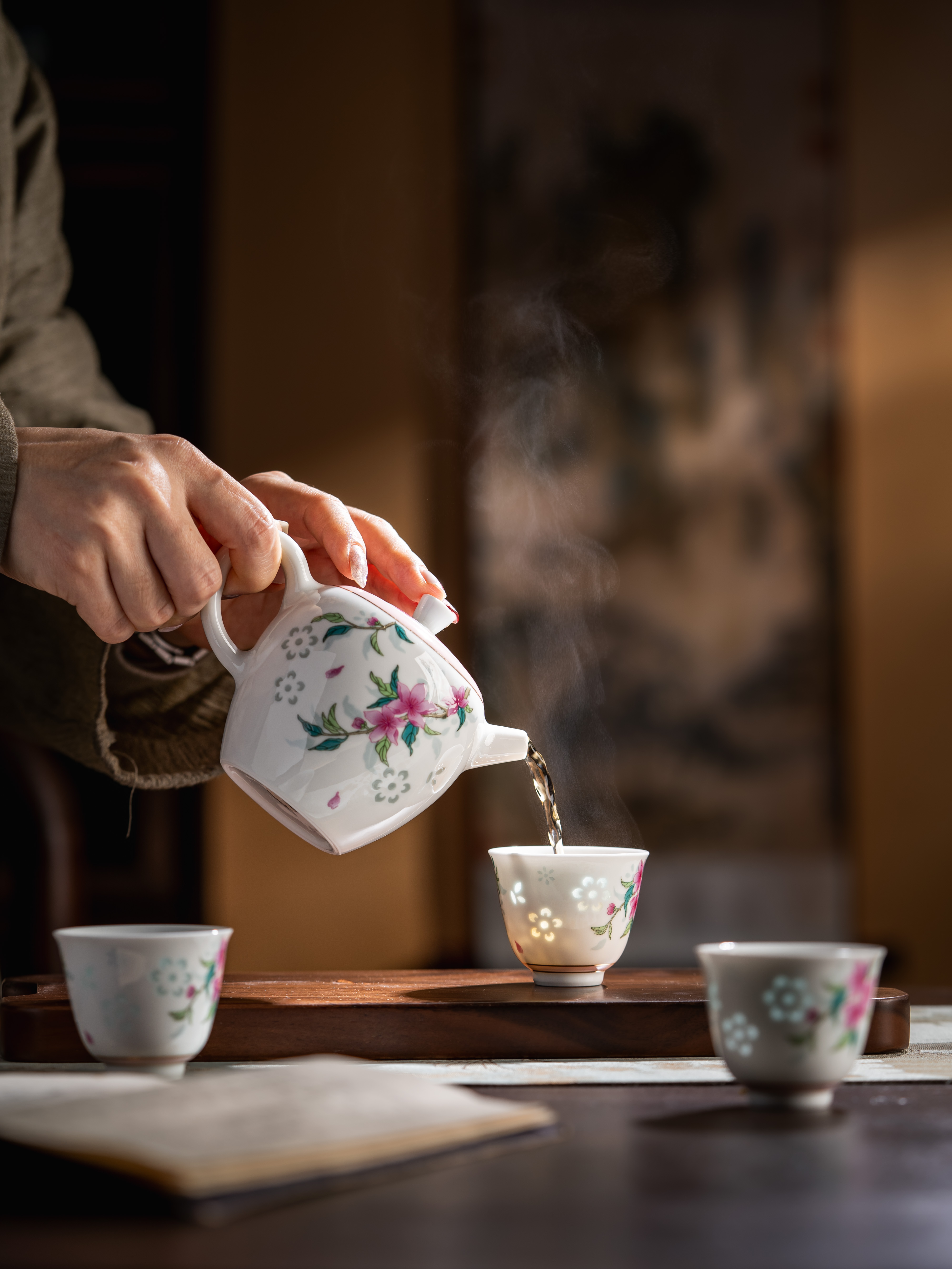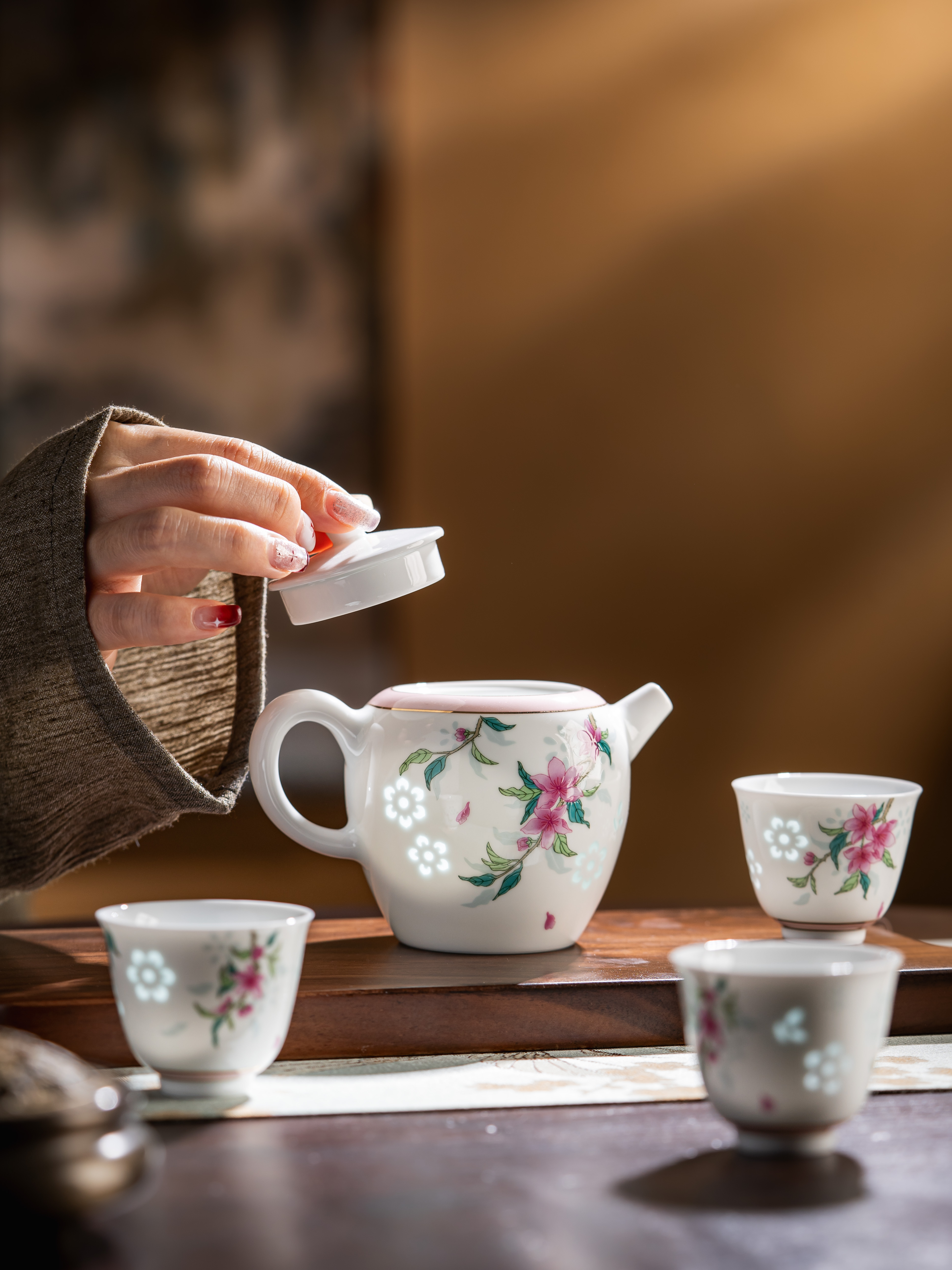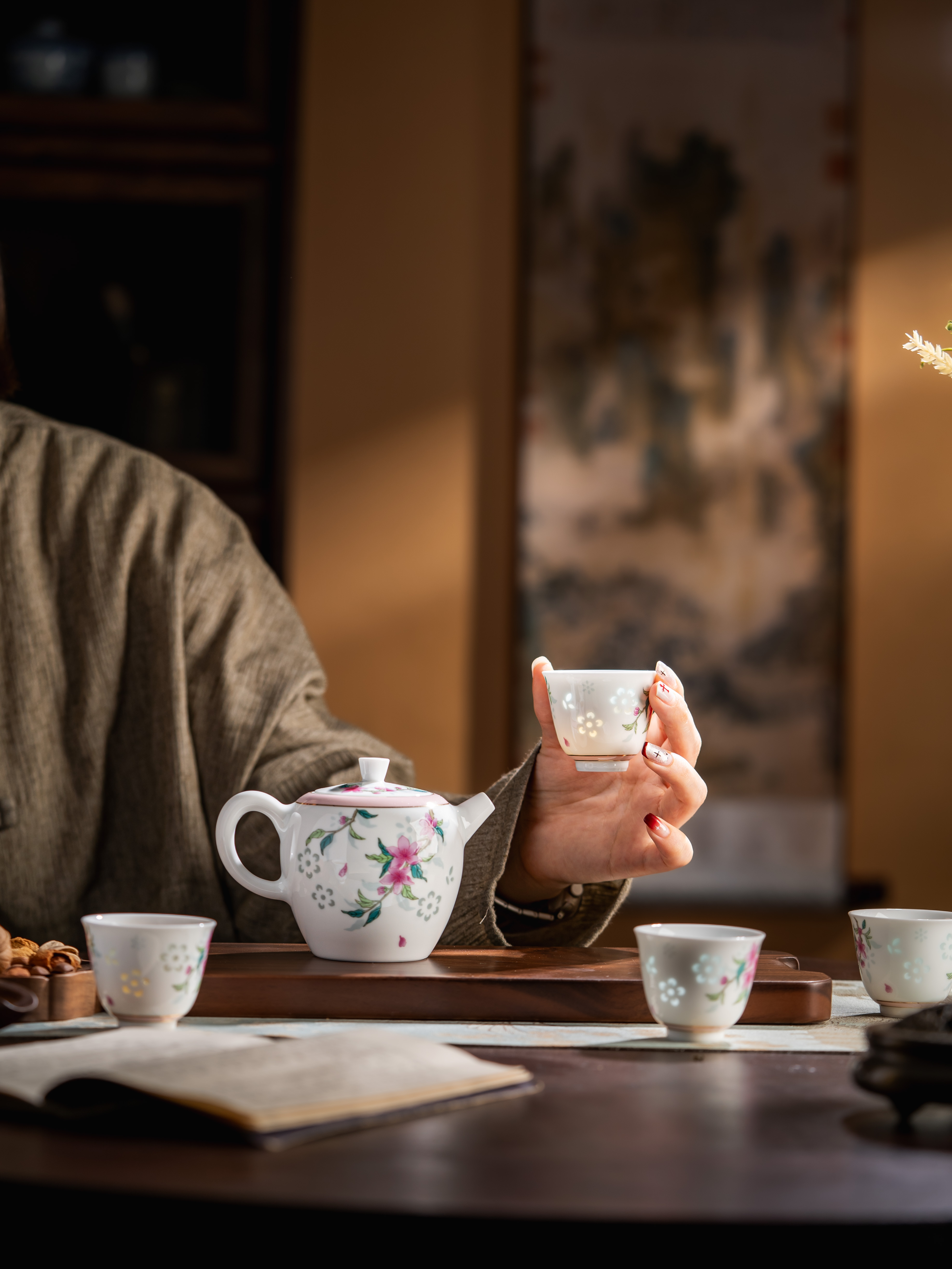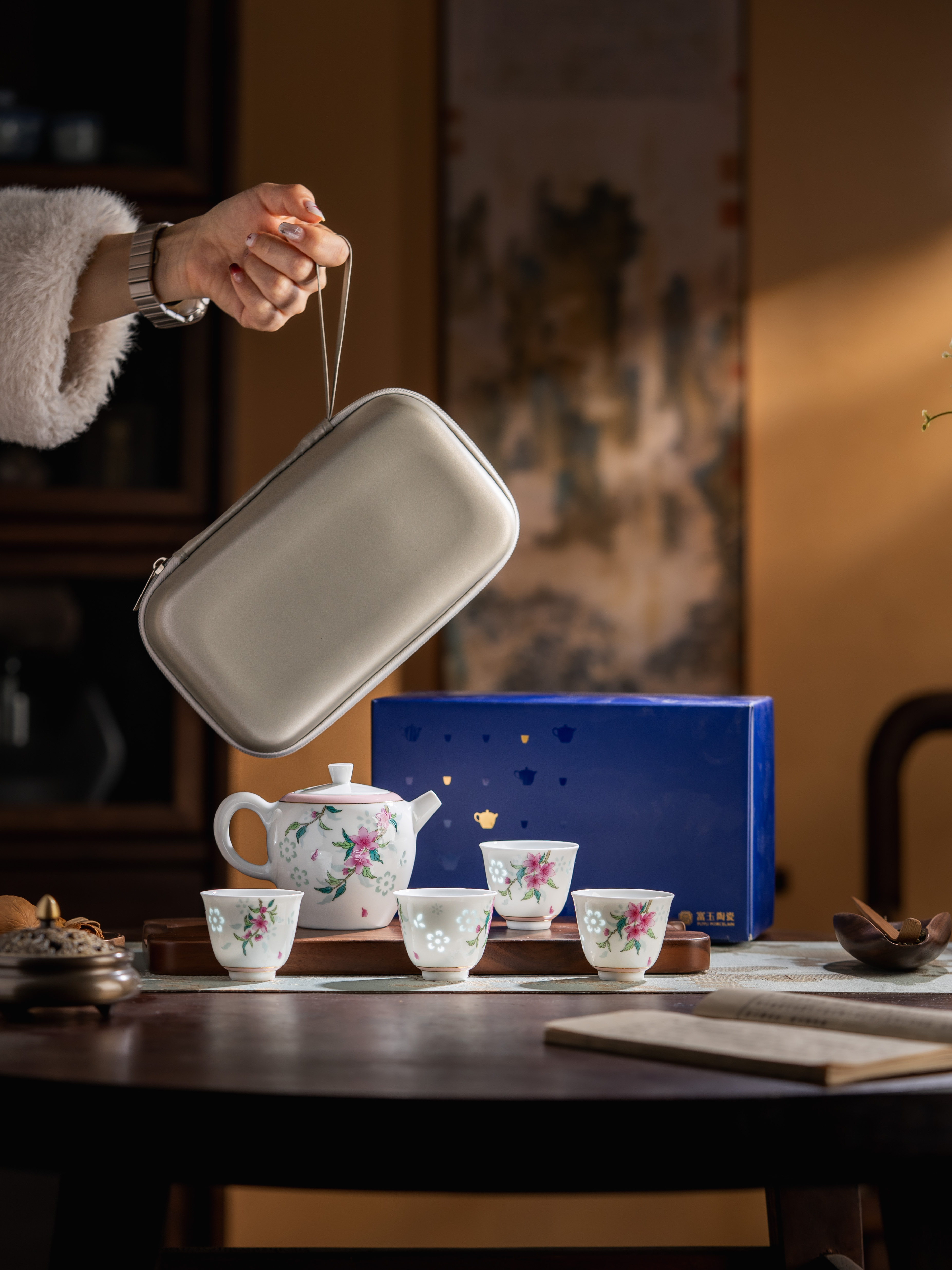 新品 | 富玉 景德镇玲珑陶瓷茶具旅行户外便携茶具满庭芳菲一壶四杯