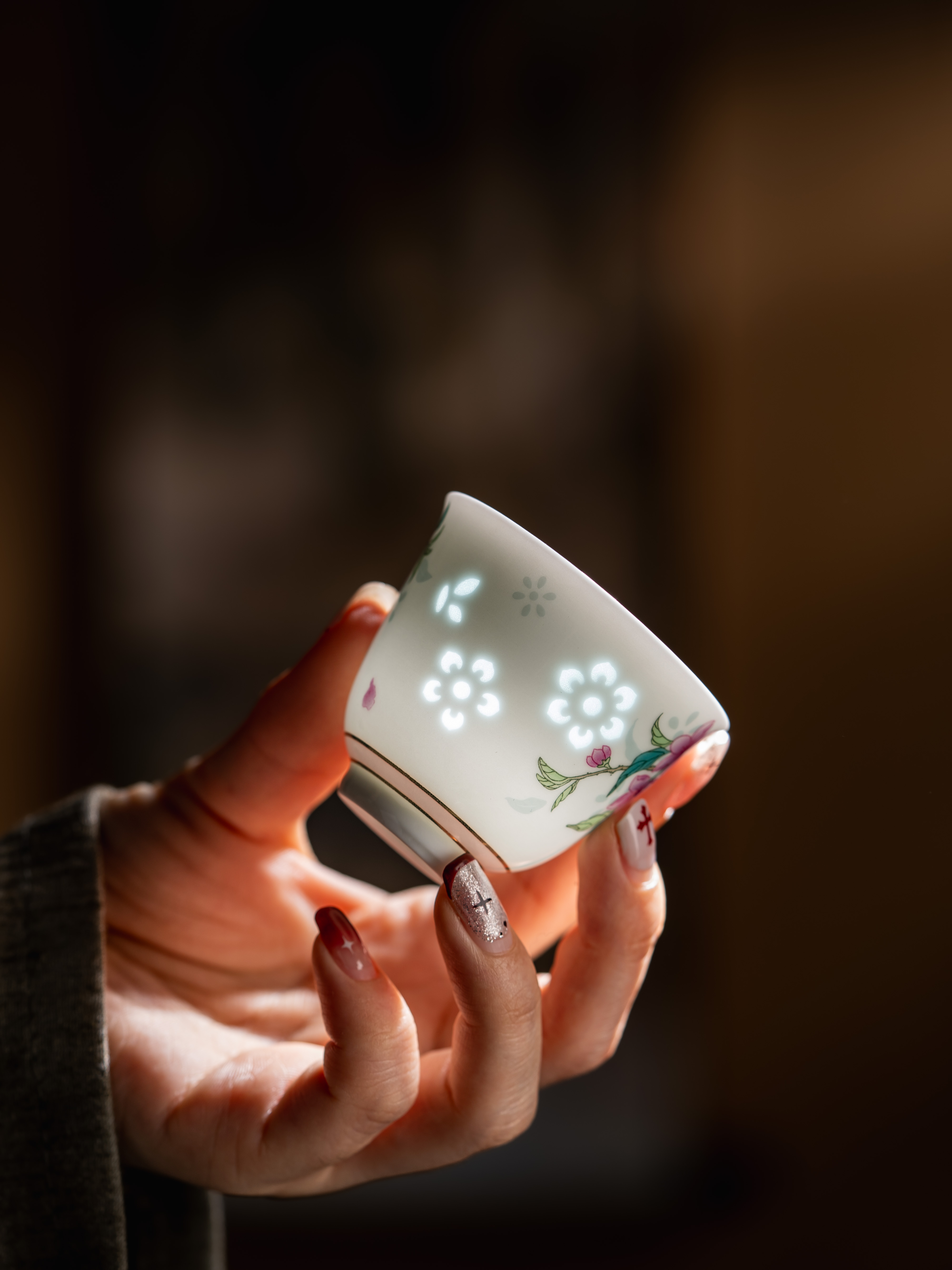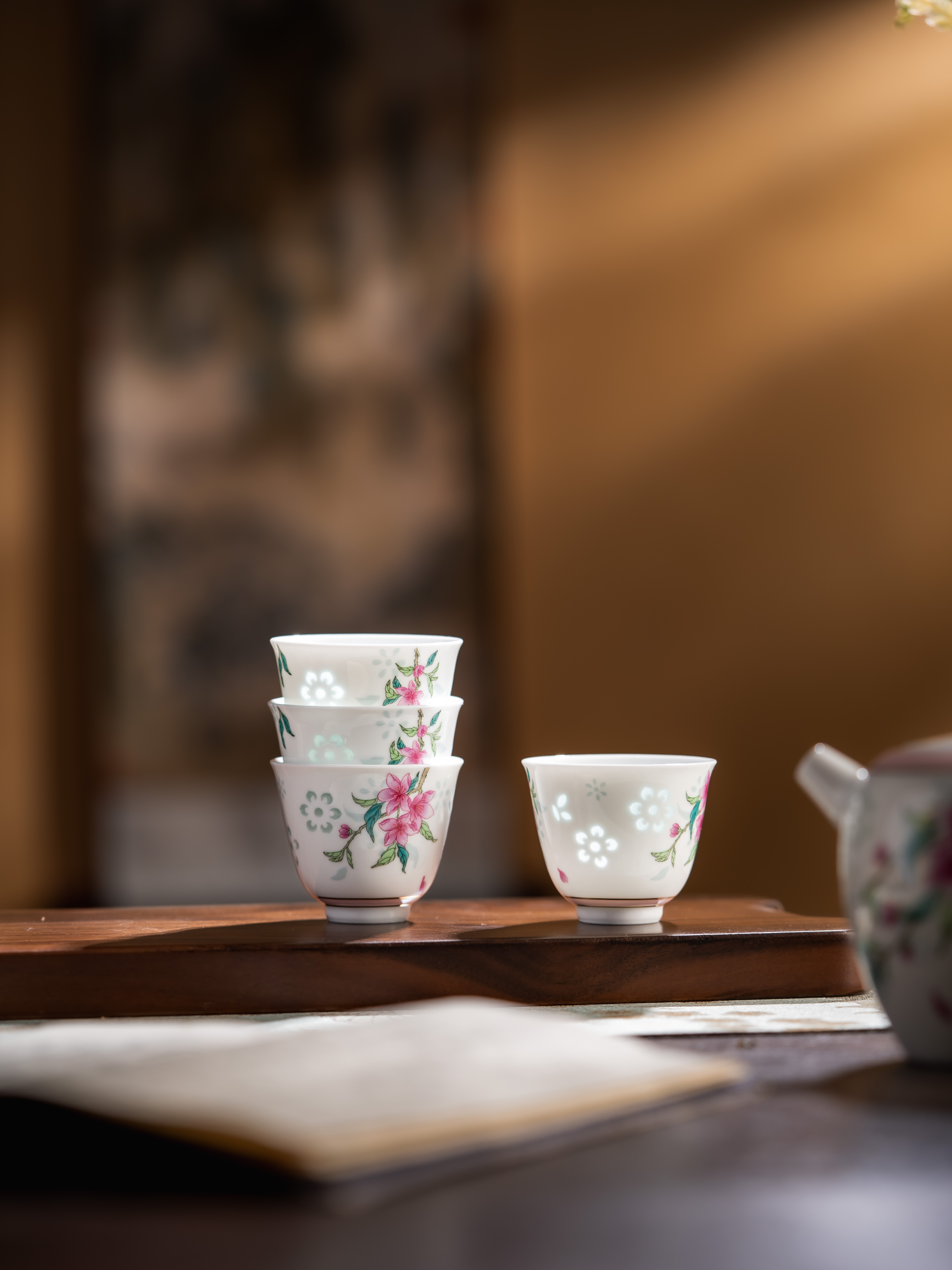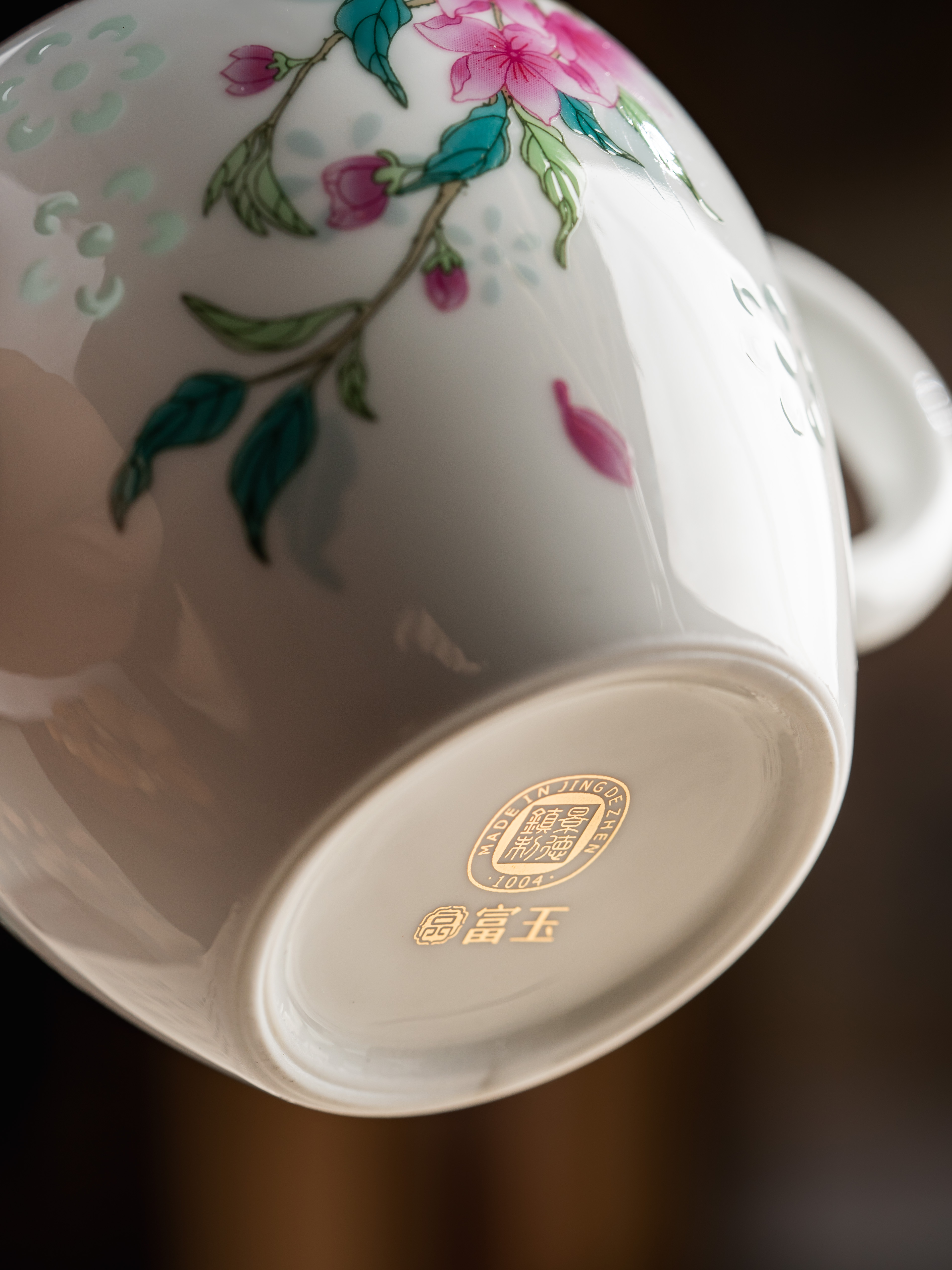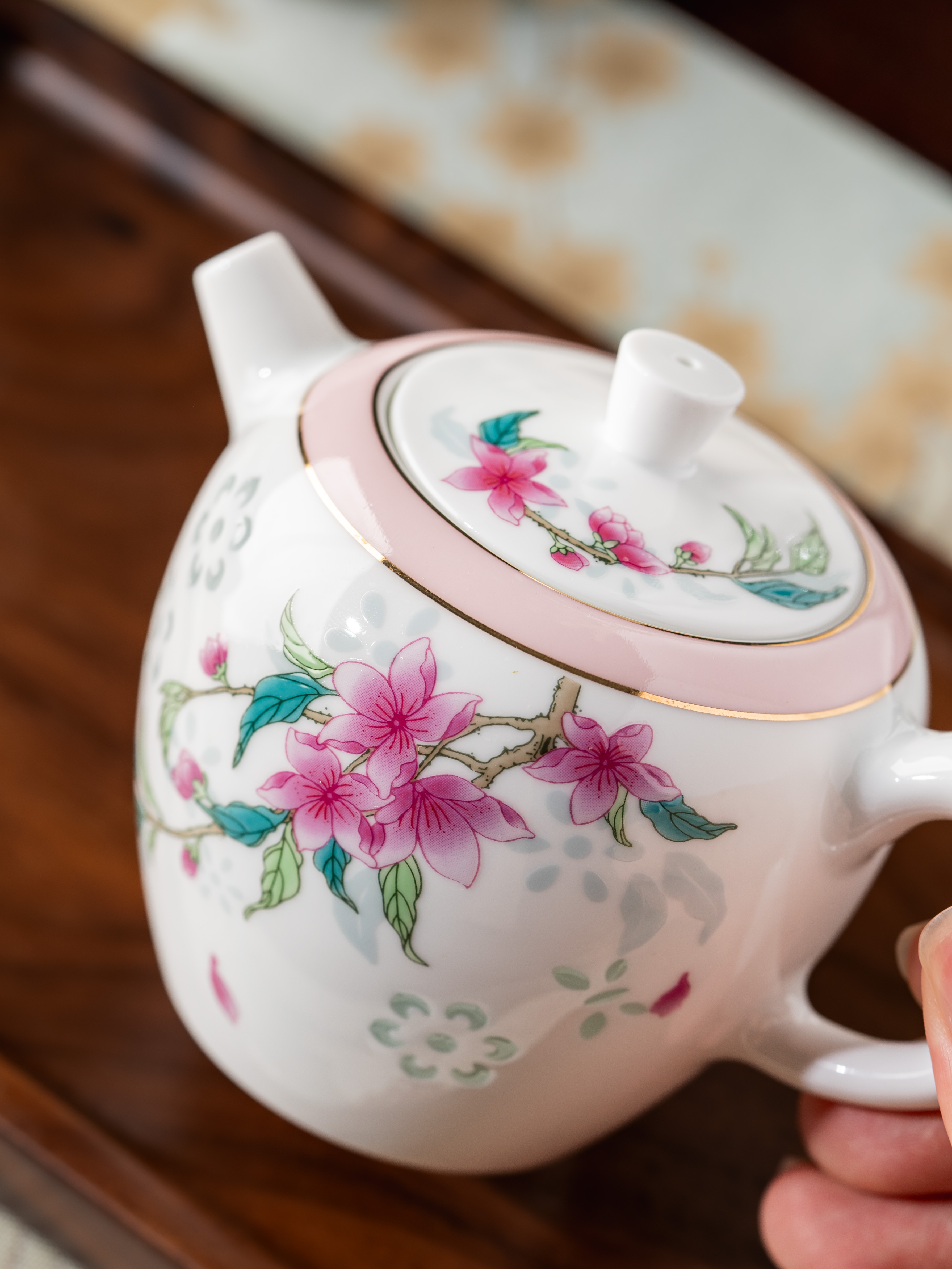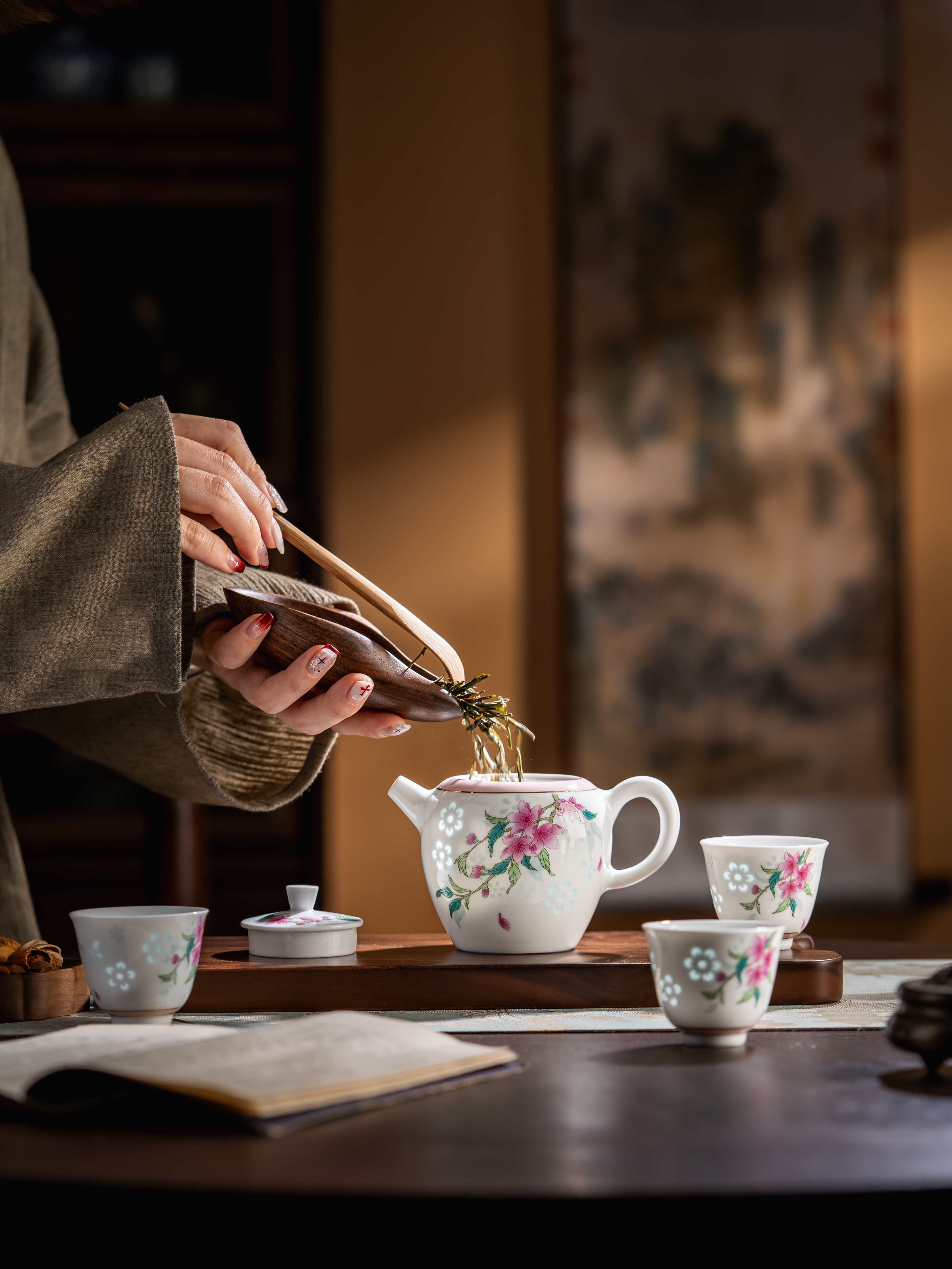 新品 | 富玉 景德镇玲珑陶瓷茶具旅行户外便携茶具满庭芳菲一壶四杯